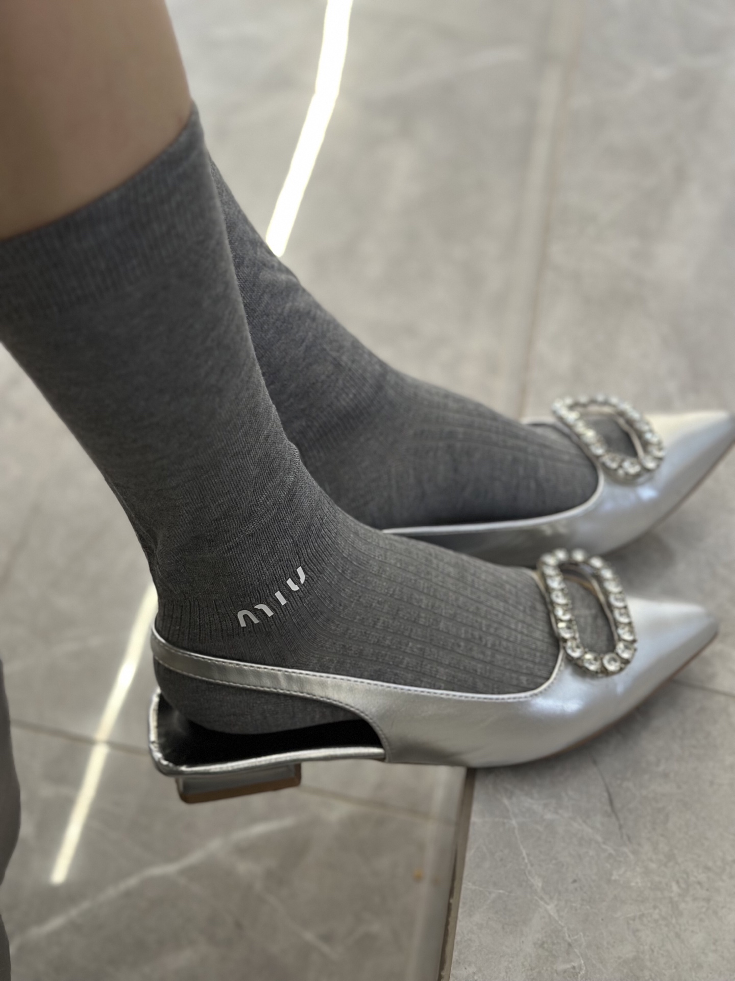 这款sock是AAAAA 1:1 质量 (非常棒). 使用了和原版一模一样的材料. 商标部分也保持了和缪缪/Miu Miu一样. 图片拍摄是实物sock拍摄, 您所收到的实物保证和我们图片一模一样.