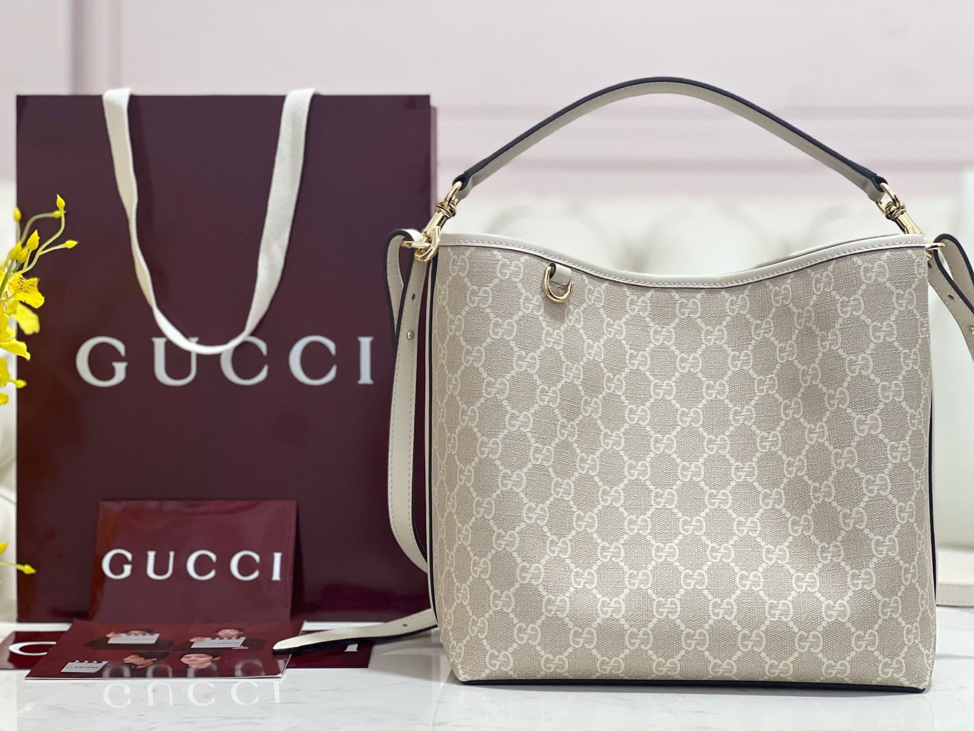 这款包包是AAAAA 1:1 质量 (非常棒). 使用了和原版一模一样的材料. 商标部分也保持了和古奇/Gucci一样. 图片拍摄是实物包包拍摄, 您所收到的实物保证和我们图片一模一样.
