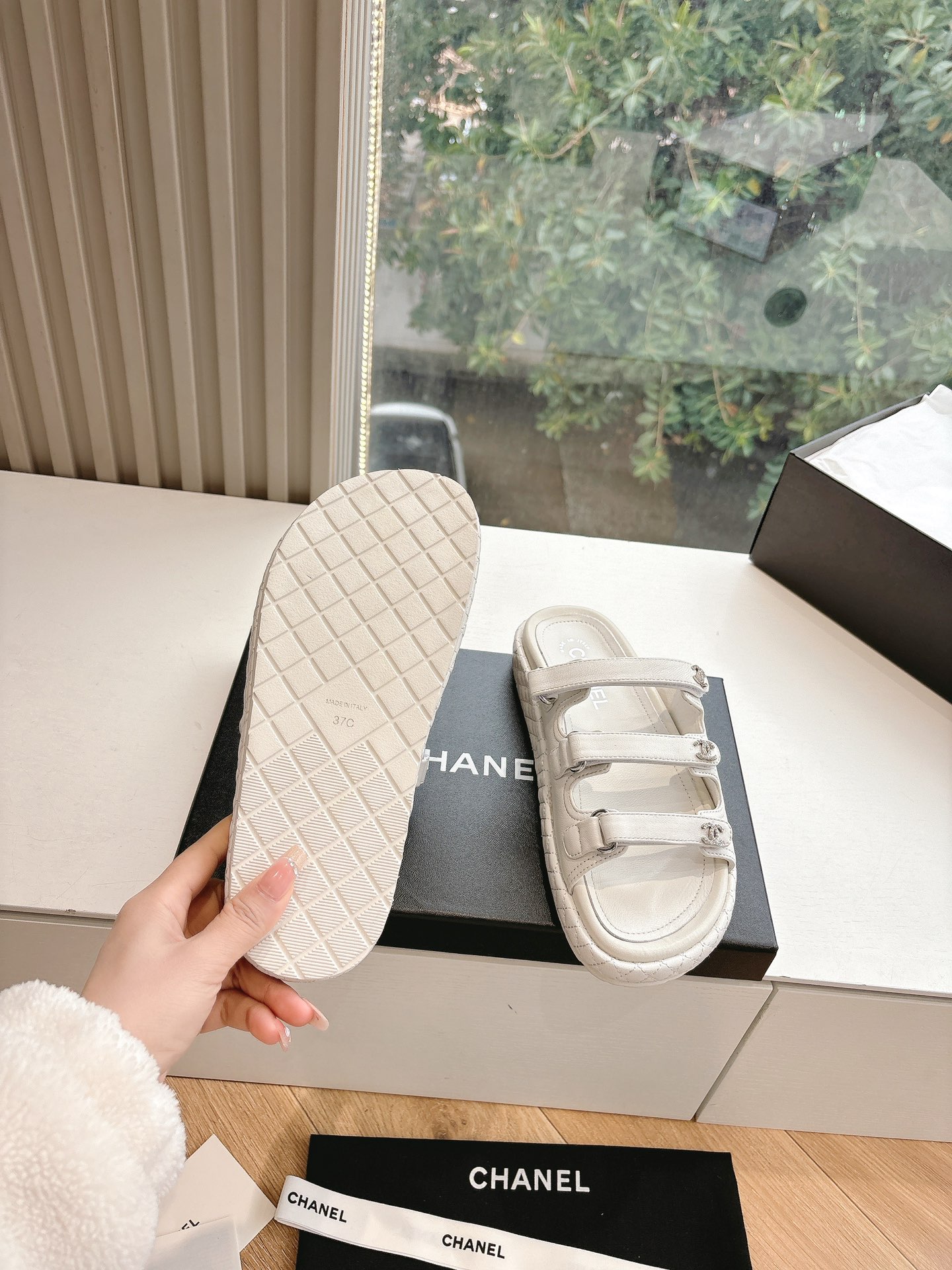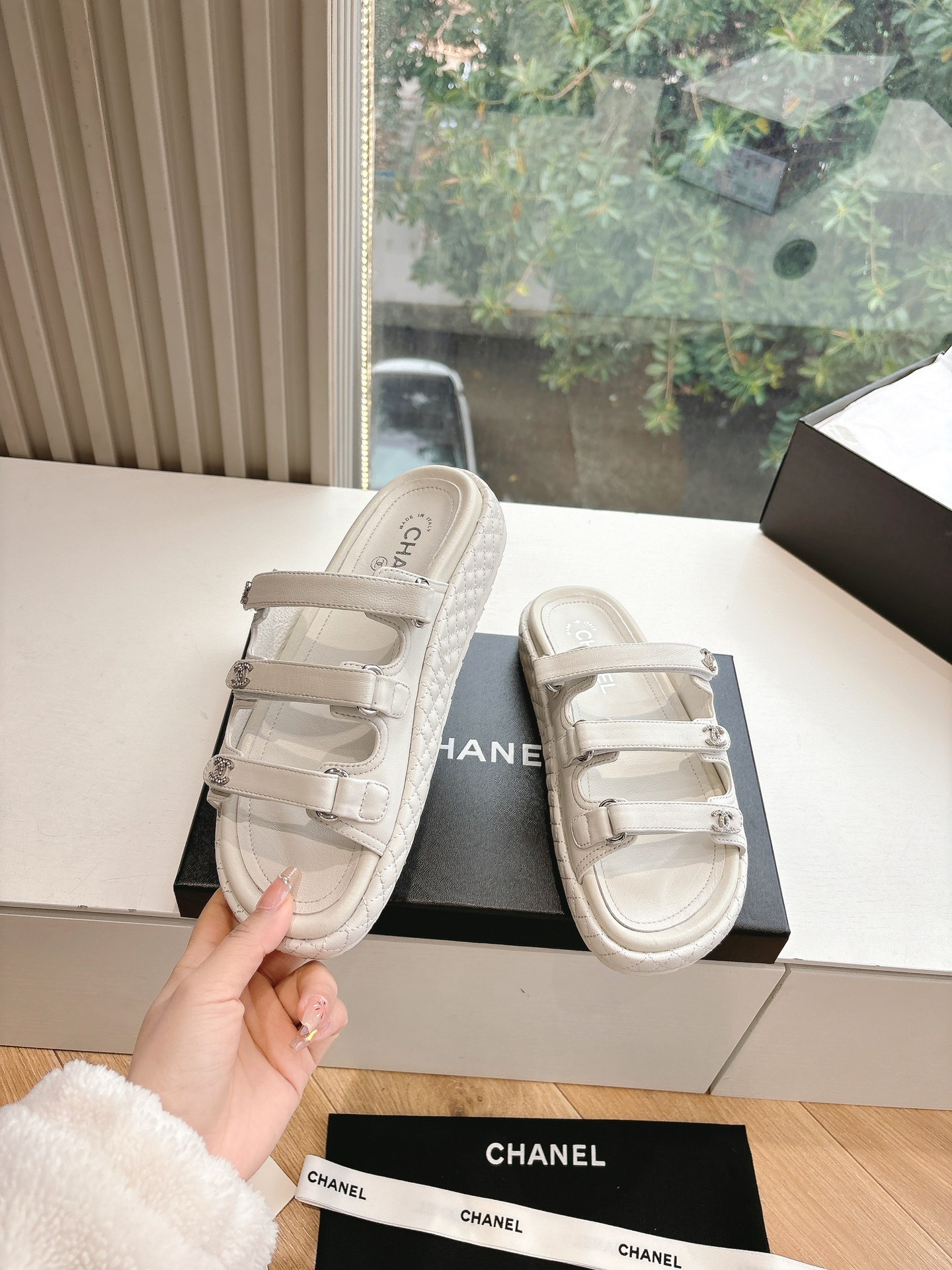 这款鞋子是AAAAA 1:1 质量 (非常棒). 使用了和原版一模一样的材料. 商标部分也保持了和香奈儿/Chanel一样. 图片拍摄是实物鞋子拍摄, 您所收到的实物保证和我们图片一模一样.