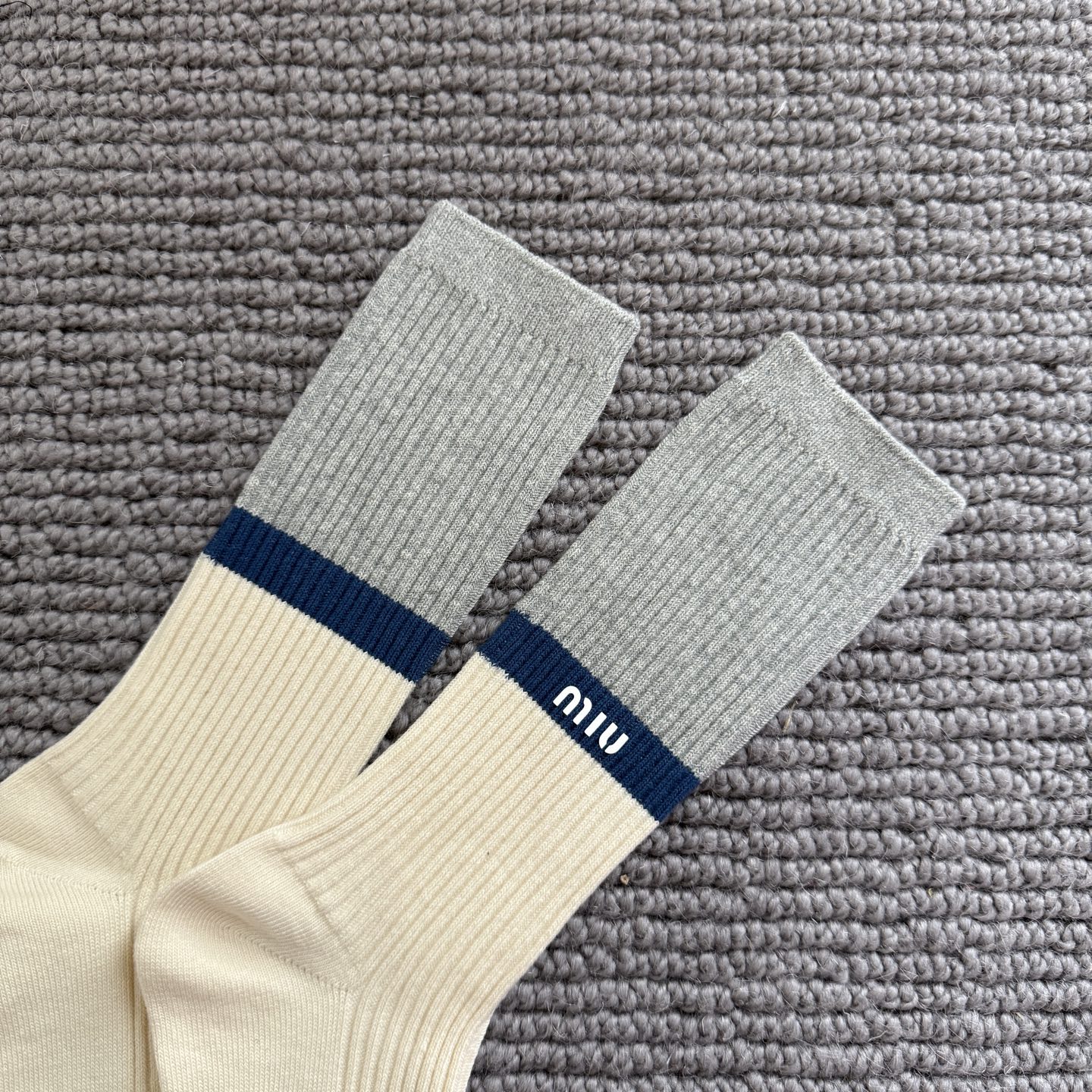这款sock是AAAAA 1:1 质量 (非常棒). 使用了和原版一模一样的材料. 商标部分也保持了和缪缪/Miu Miu一样. 图片拍摄是实物sock拍摄, 您所收到的实物保证和我们图片一模一样.