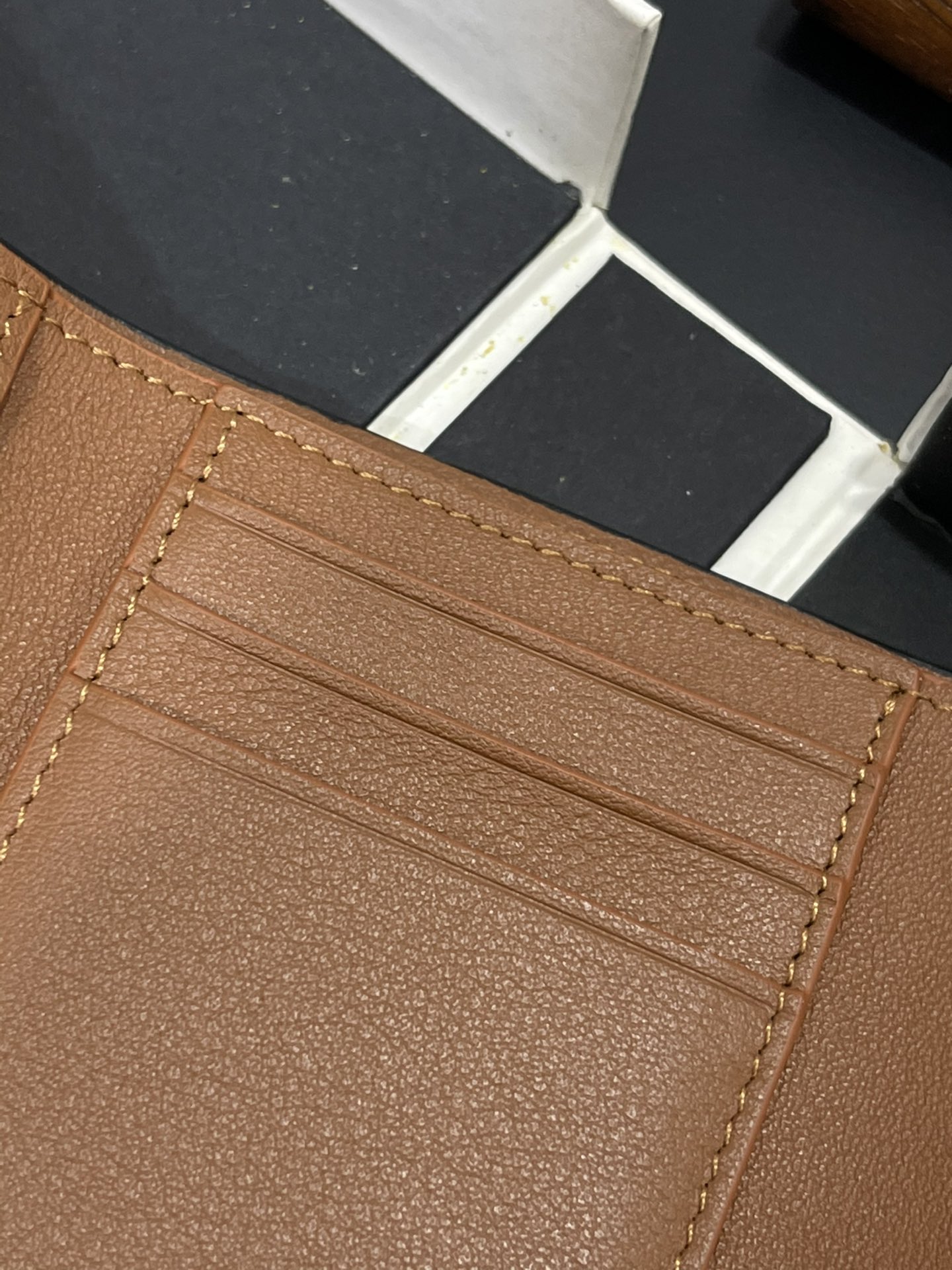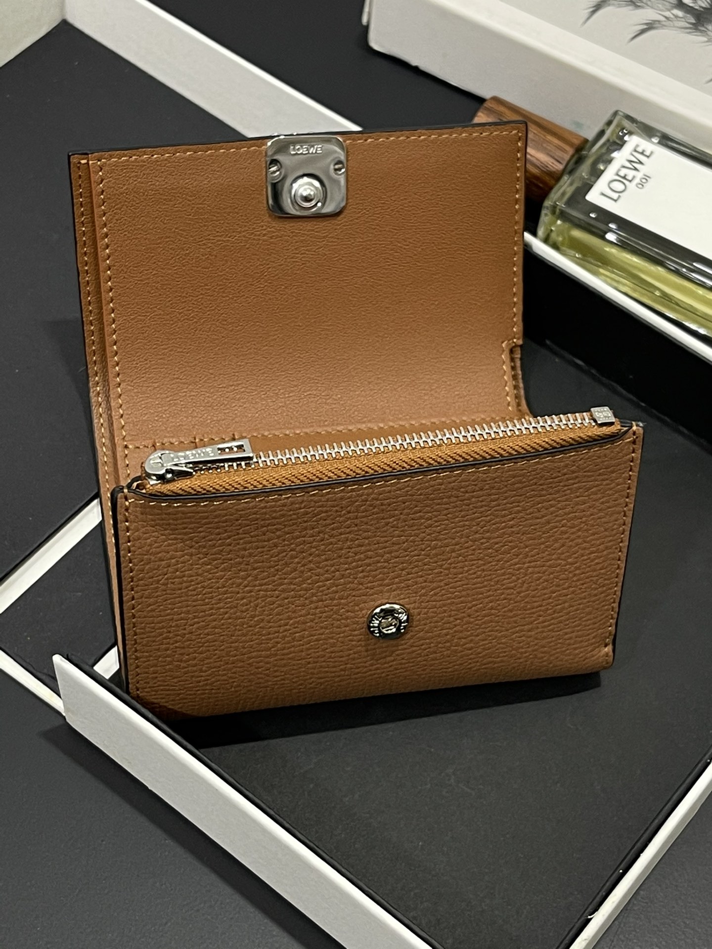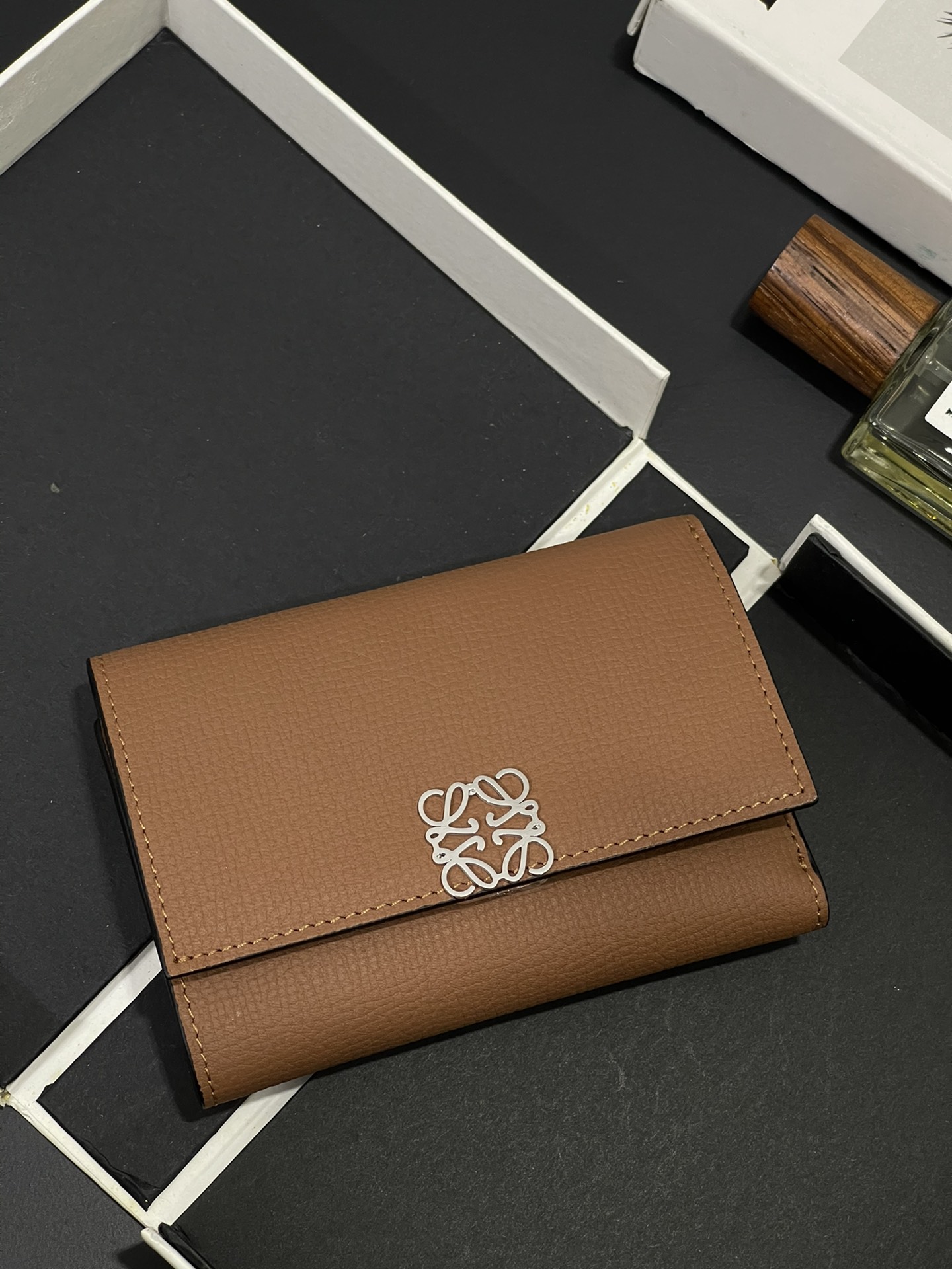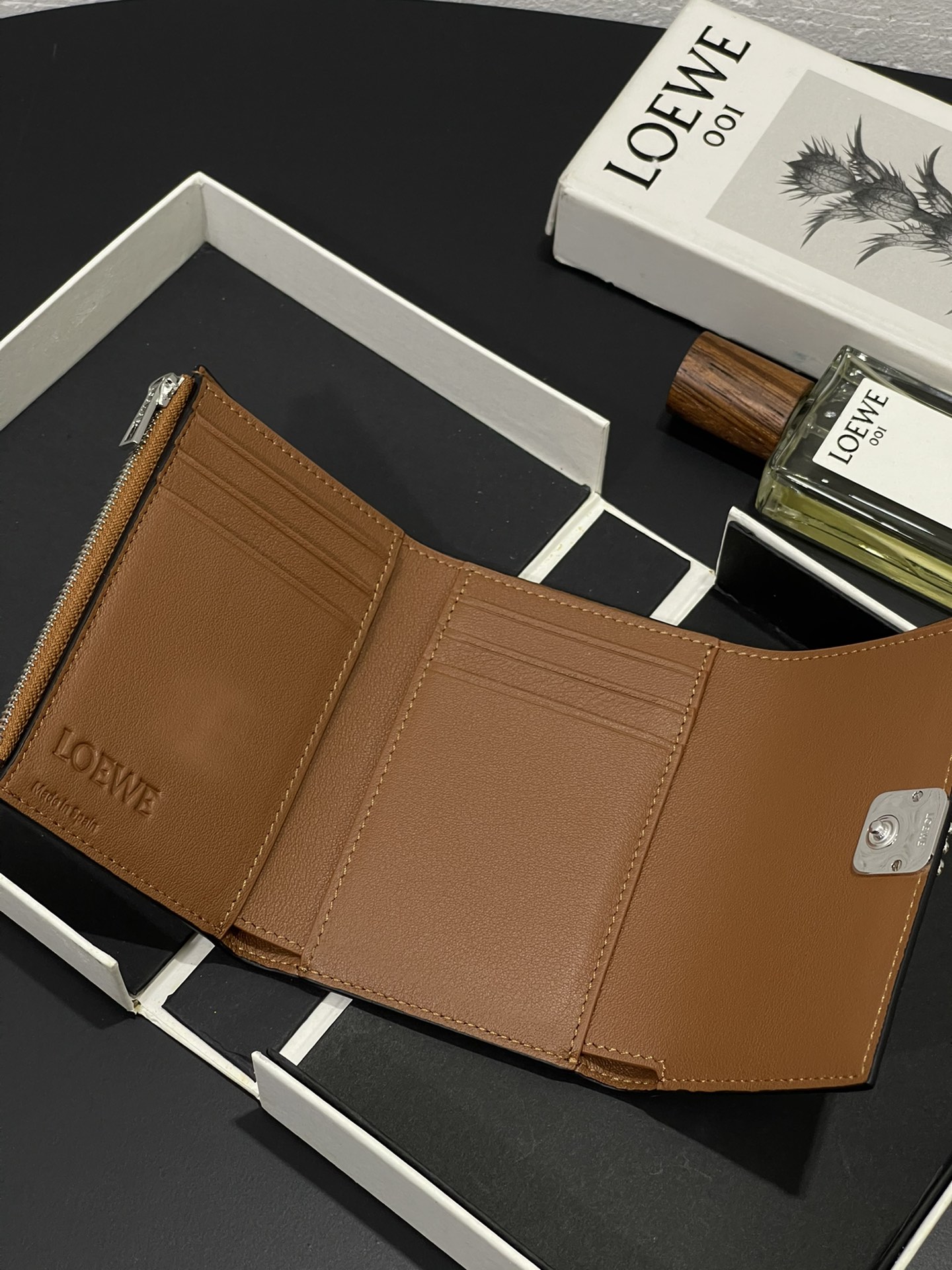 这款钱包是AAAAA 1:1 质量 (非常棒). 使用了和原版一模一样的材料. 商标部分也保持了和罗意威/Loewe一样. 图片拍摄是实物钱包拍摄, 您所收到的实物保证和我们图片一模一样.