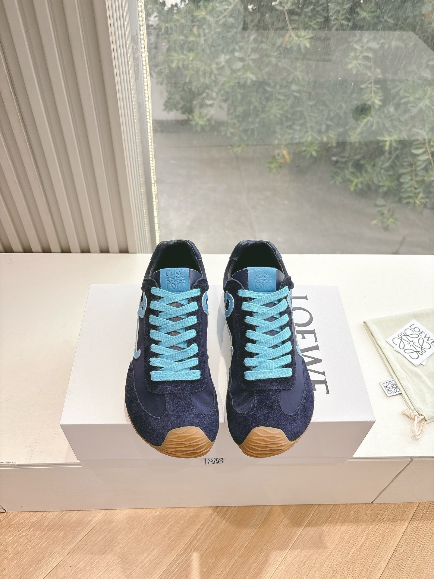 这款鞋子是AAAAA 1:1 质量 (非常棒). 使用了和原版一模一样的材料. 商标部分也保持了和罗意威/Loewe一样. 图片拍摄是实物鞋子拍摄, 您所收到的实物保证和我们图片一模一样.