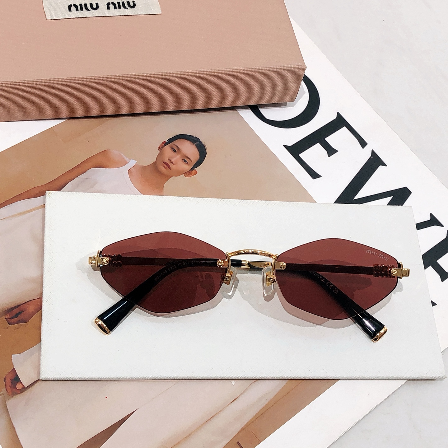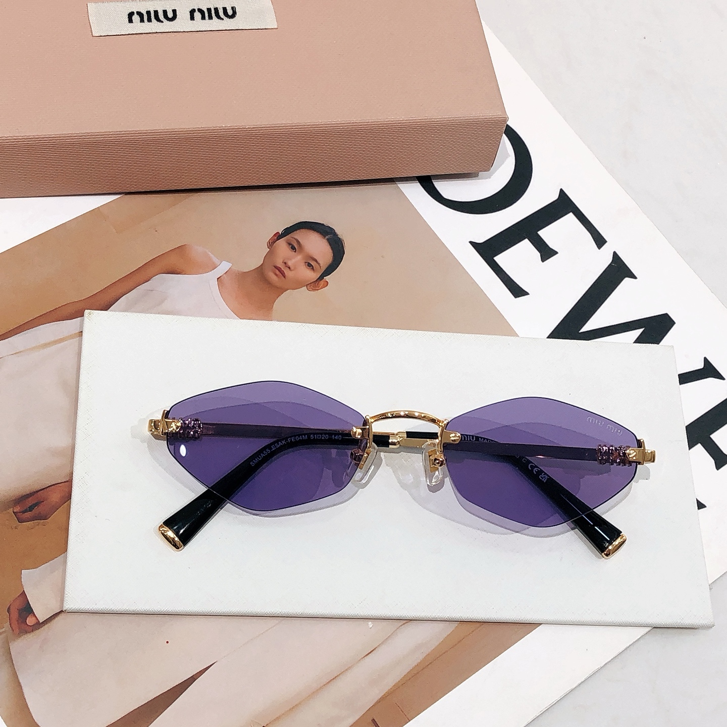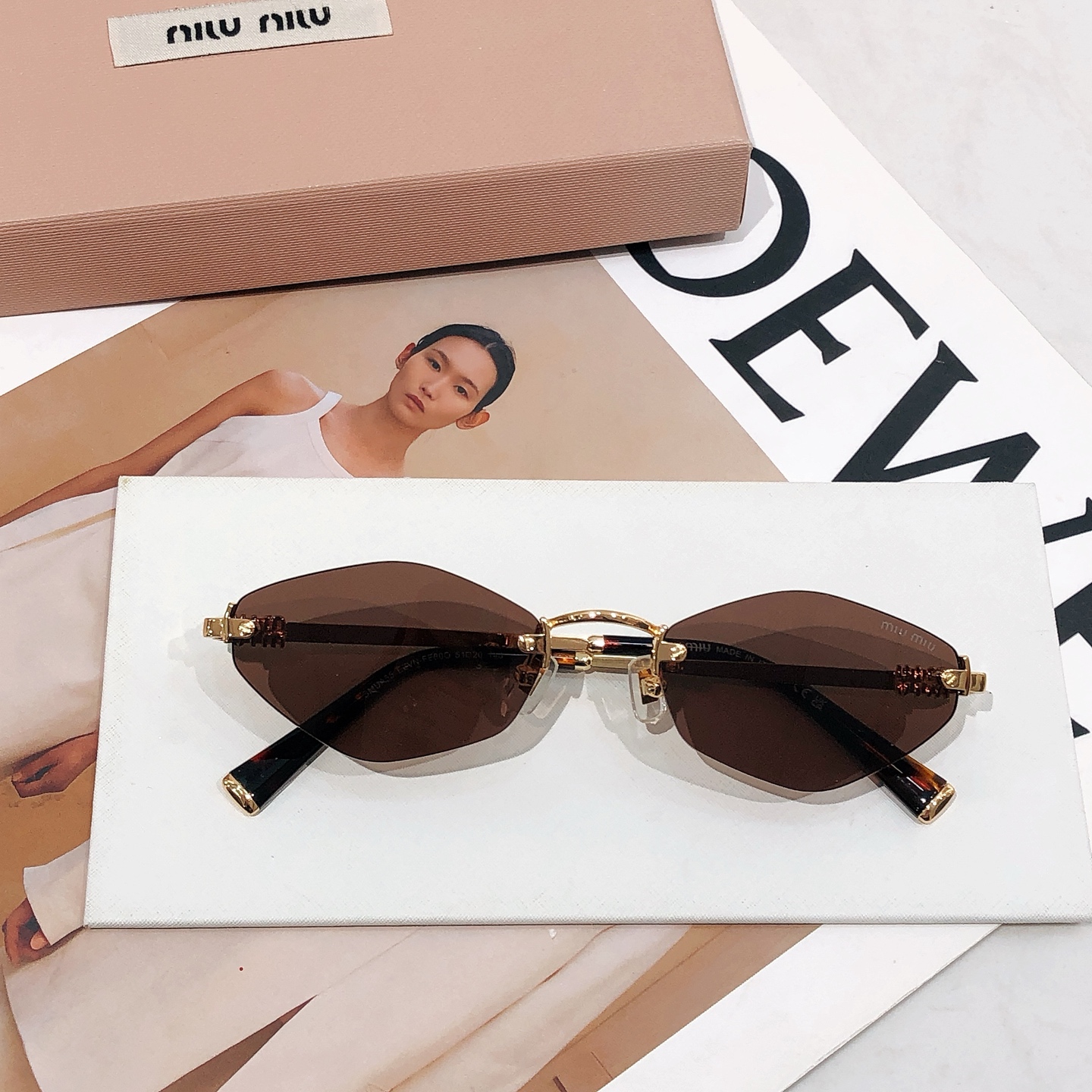 这款太阳眼镜是AAAAA 1:1 质量 (非常棒). 使用了和原版一模一样的材料. 商标部分也保持了和缪缪/Miu Miu一样. 图片拍摄是实物太阳眼镜拍摄, 您所收到的实物保证和我们图片一模一样.