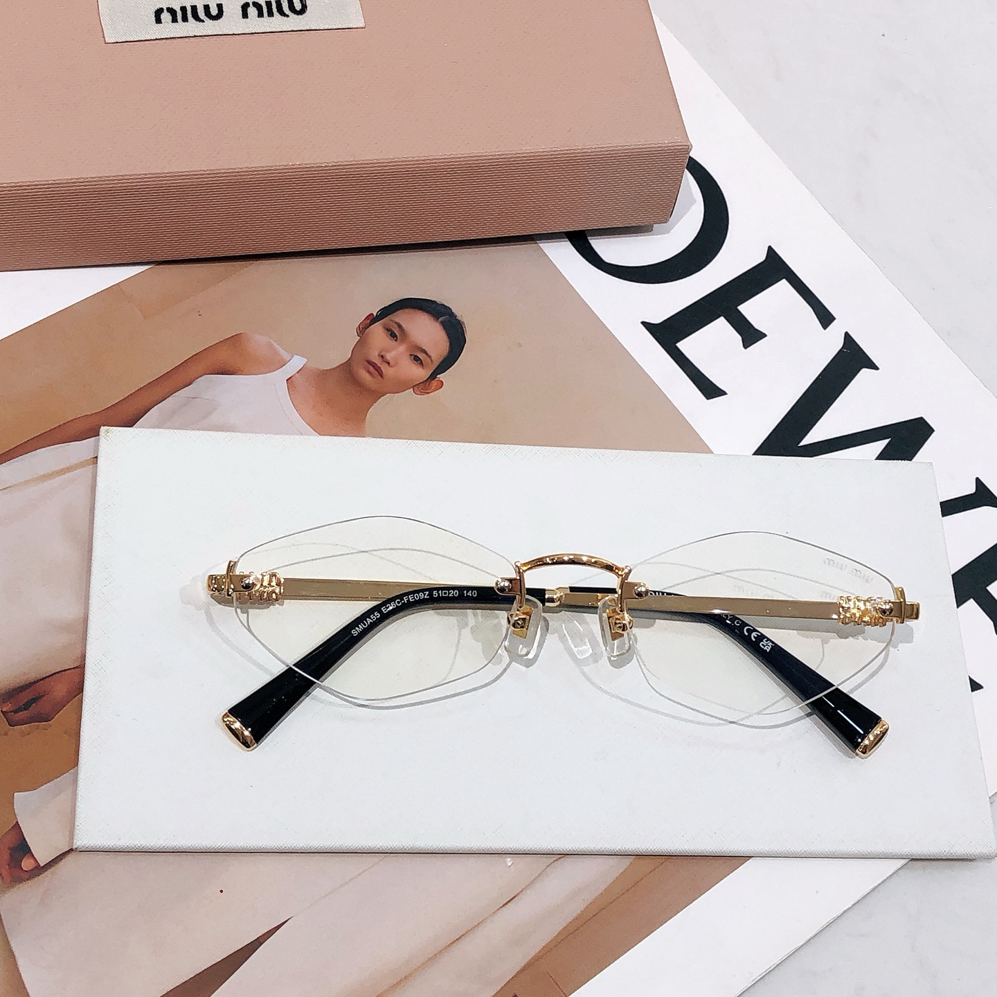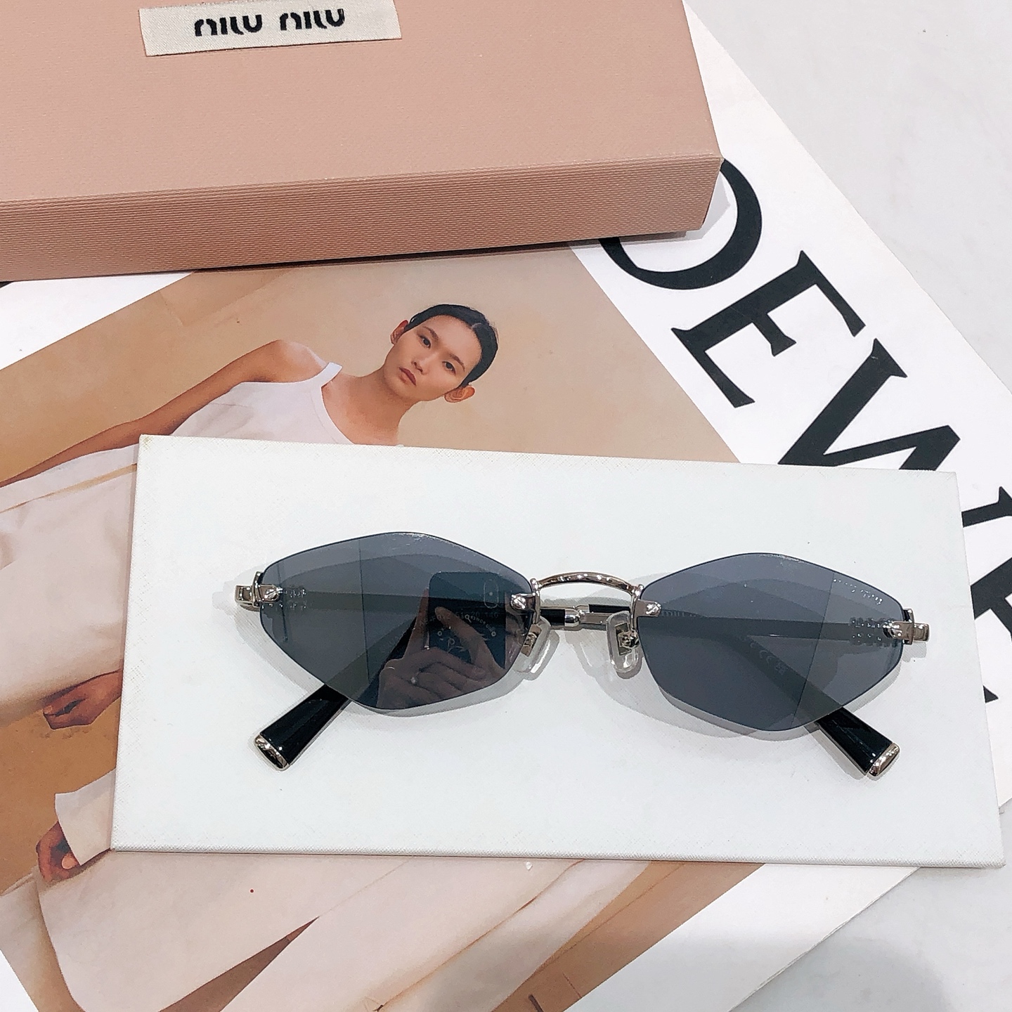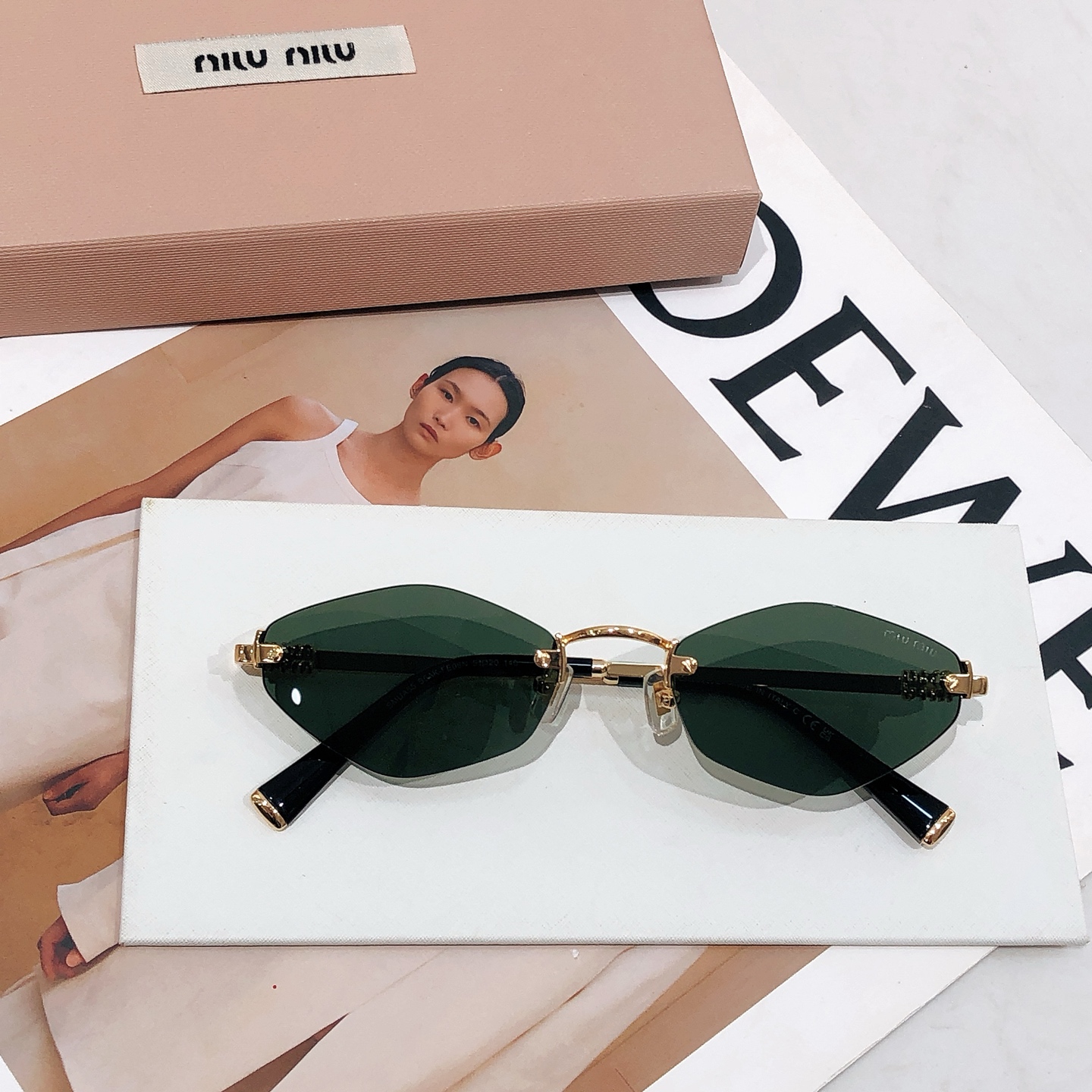 这款太阳眼镜是AAAAA 1:1 质量 (非常棒). 使用了和原版一模一样的材料. 商标部分也保持了和缪缪/Miu Miu一样. 图片拍摄是实物太阳眼镜拍摄, 您所收到的实物保证和我们图片一模一样.