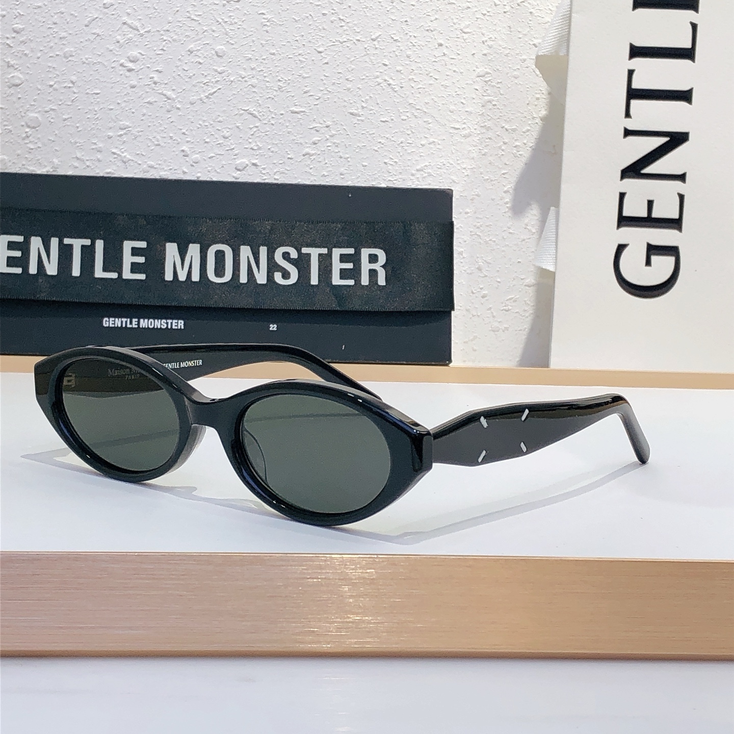 这款太阳眼镜是AAAAA 1:1 质量 (非常棒). 使用了和原版一模一样的材料. 商标部分也保持了和Gentle Monster一样. 图片拍摄是实物太阳眼镜拍摄, 您所收到的实物保证和我们图片一模一样.