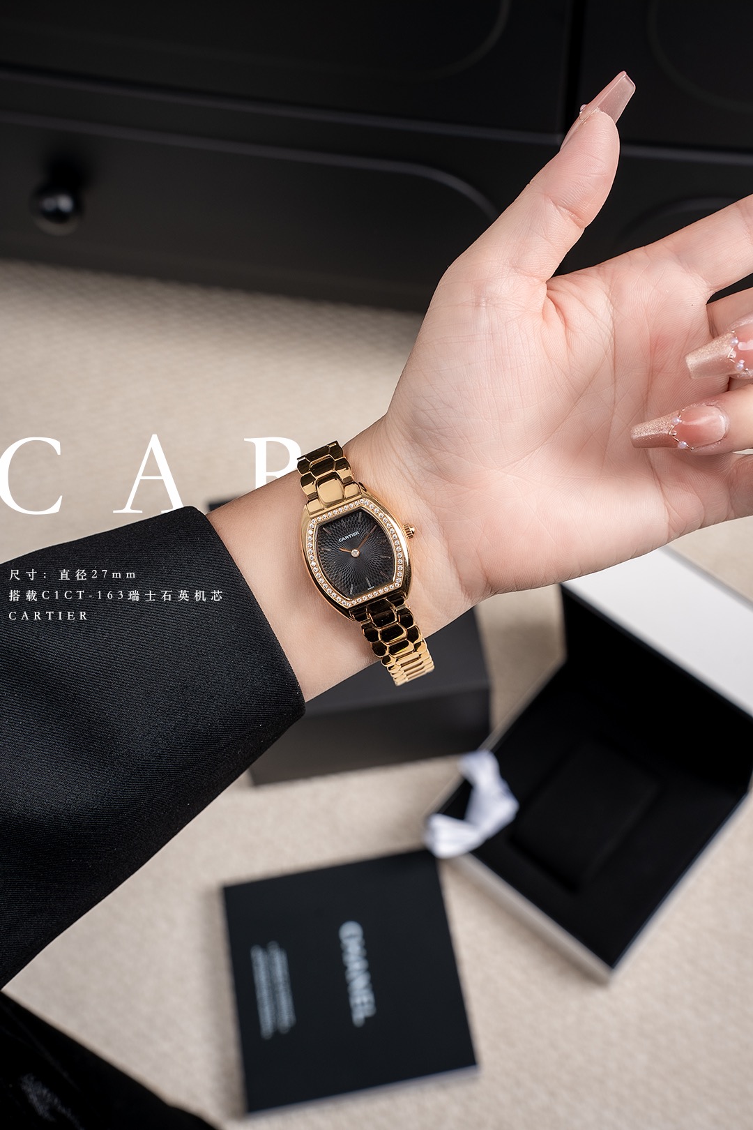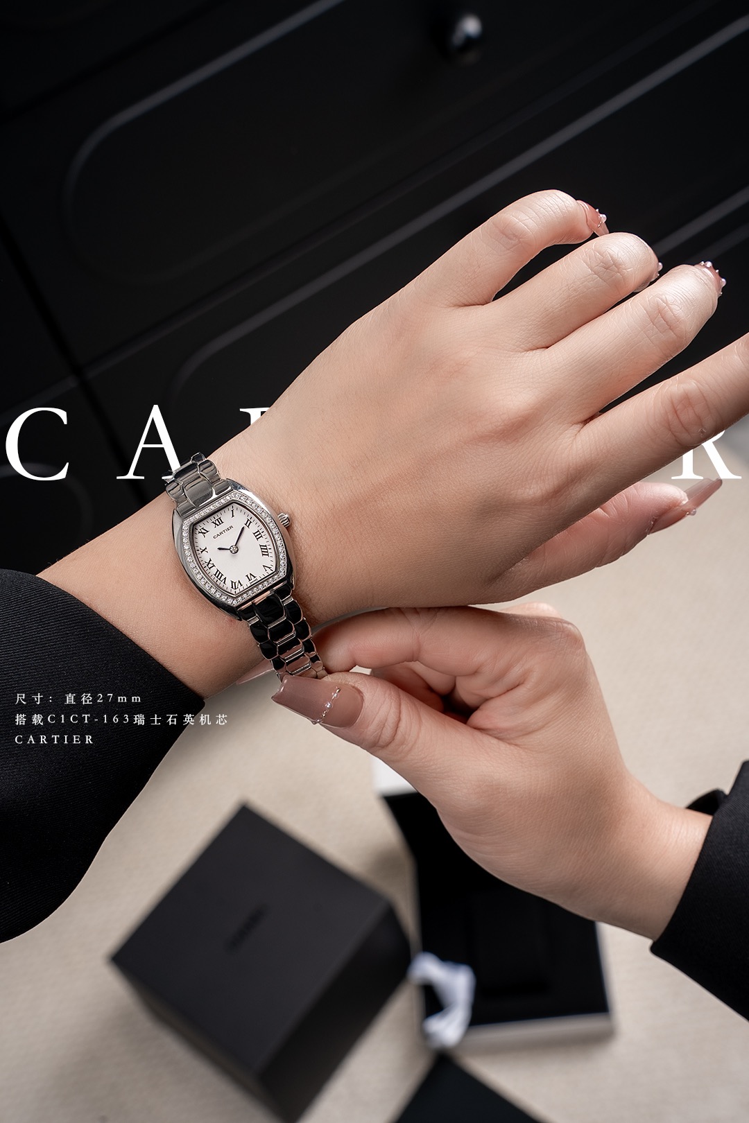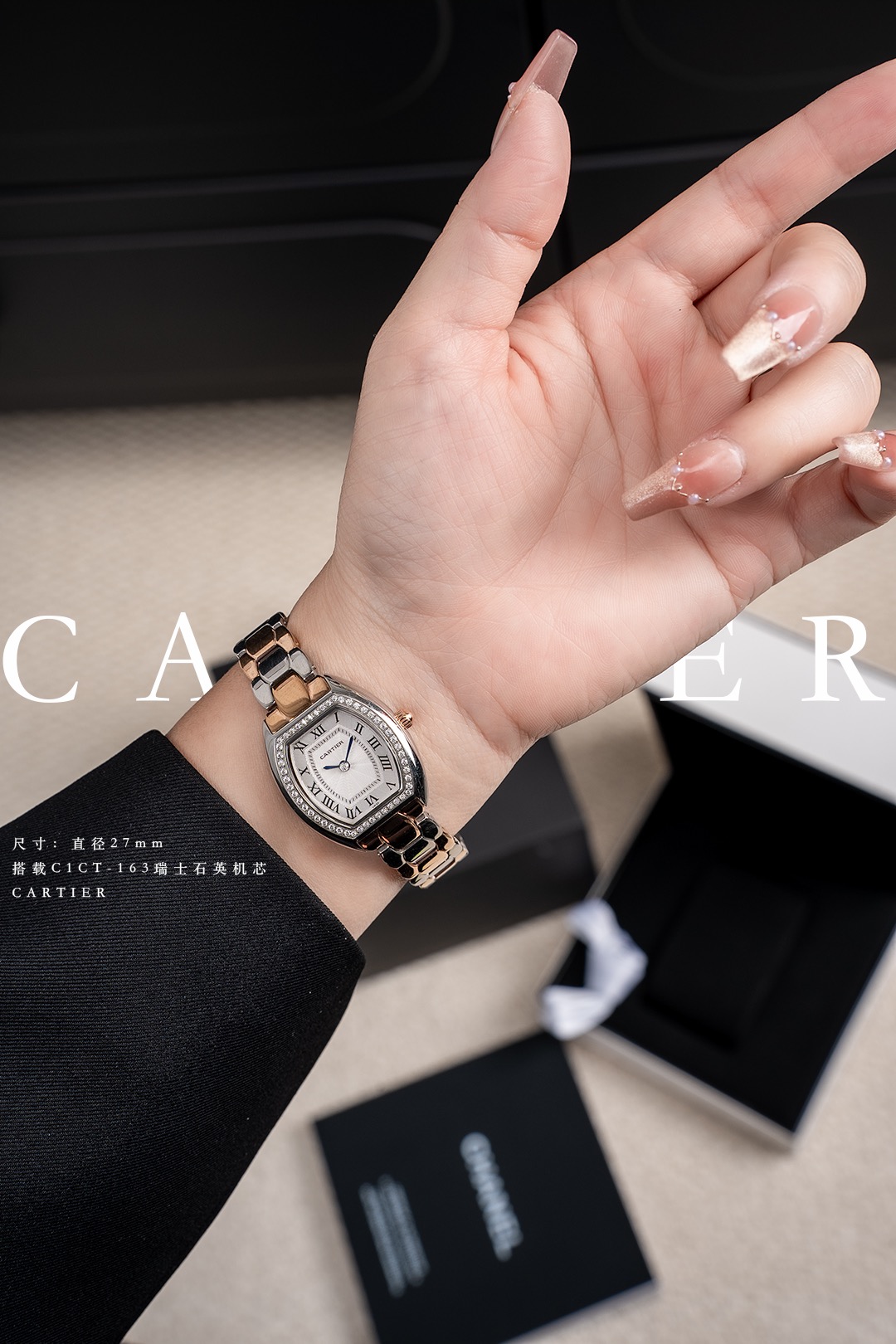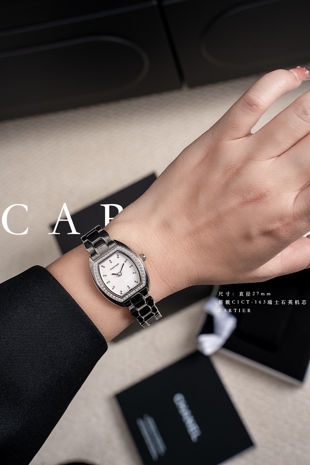 这款手表是AAAAA 1:1 质量 (非常棒). 使用了和原版一模一样的材料. 商标部分也保持了和卡地亚/Cartier一样. 图片拍摄是实物手表拍摄, 您所收到的实物保证和我们图片一模一样.