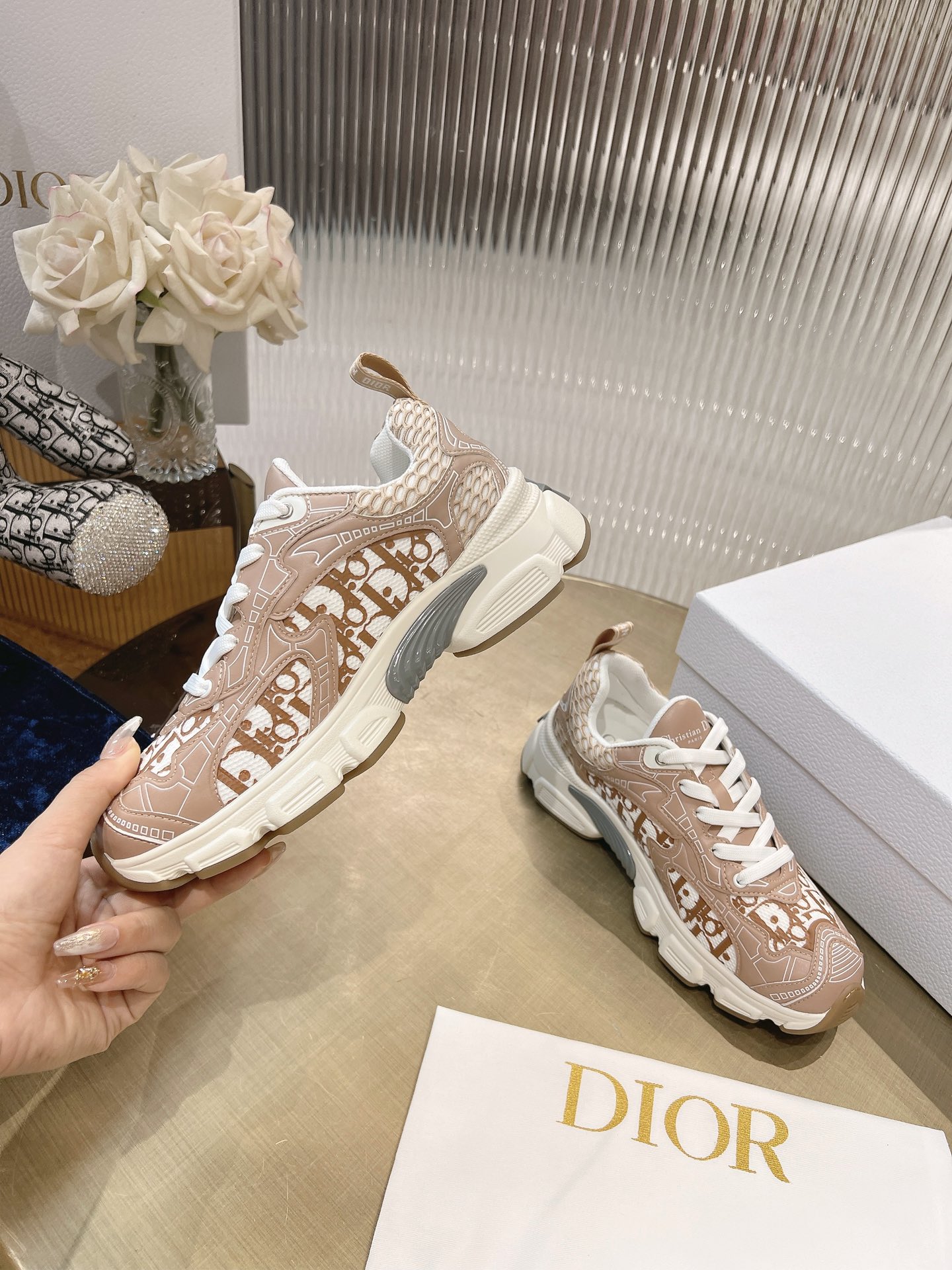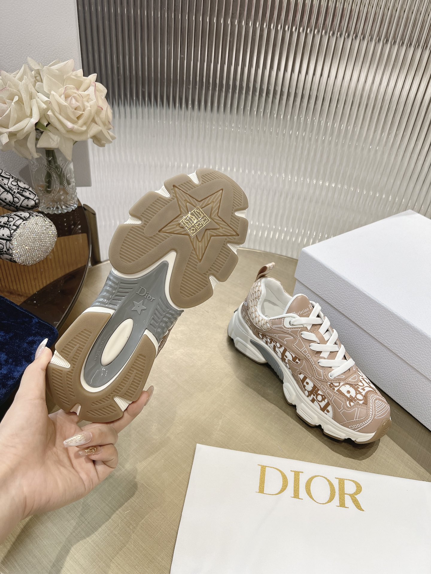 这款鞋子是AAAAA 1:1 质量 (非常棒). 使用了和原版一模一样的材料. 商标部分也保持了和迪奥/Dior一样. 图片拍摄是实物鞋子拍摄, 您所收到的实物保证和我们图片一模一样.