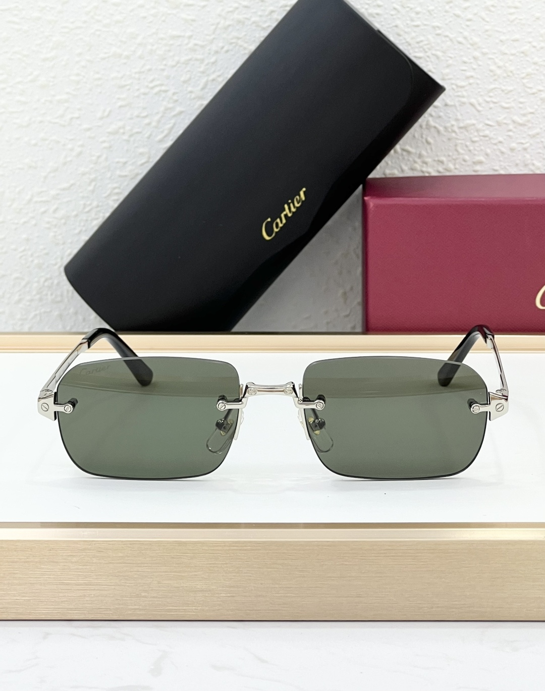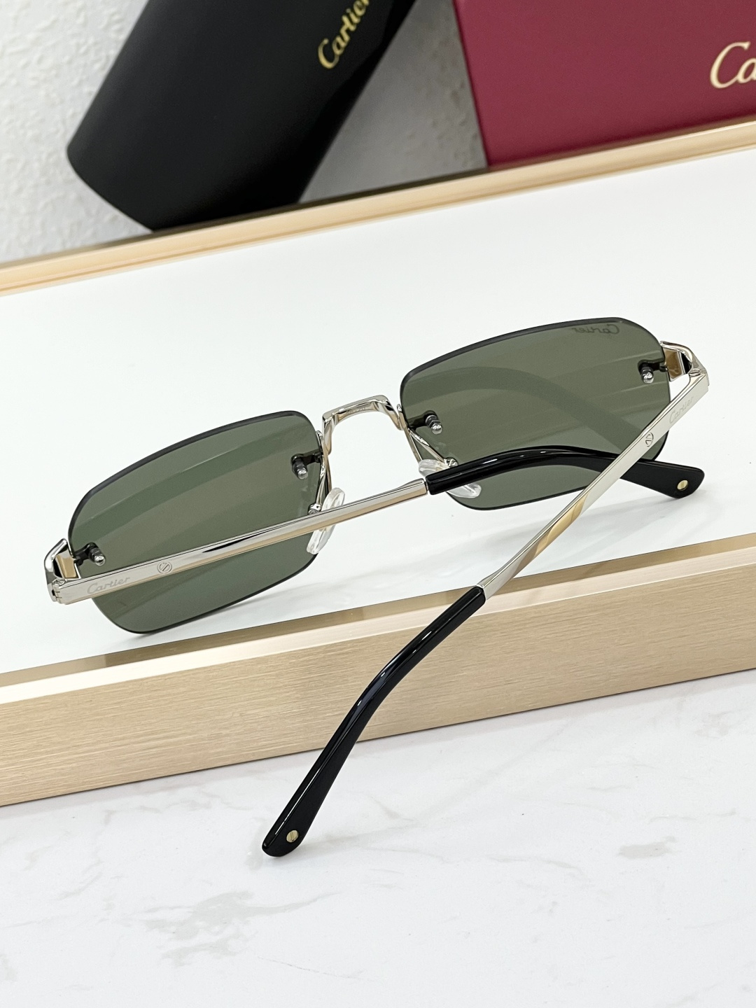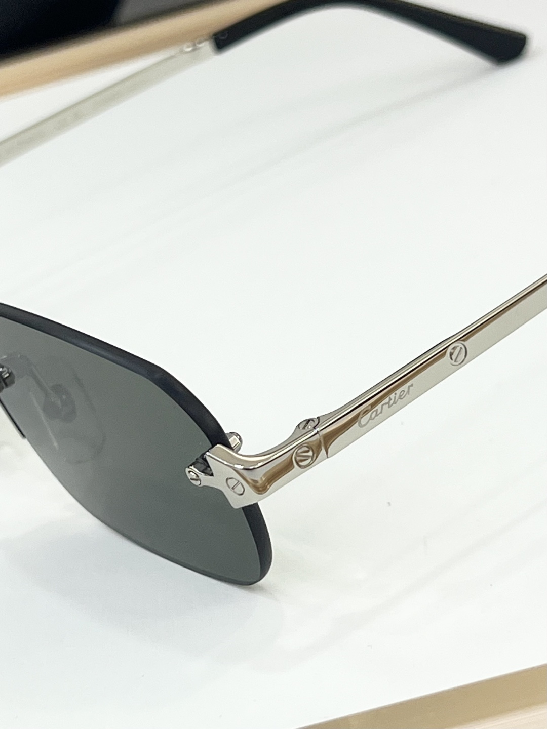 这款太阳眼镜是AAAAA 1:1 质量 (非常棒). 使用了和原版一模一样的材料. 商标部分也保持了和卡地亚/Cartier一样. 图片拍摄是实物太阳眼镜拍摄, 您所收到的实物保证和我们图片一模一样.