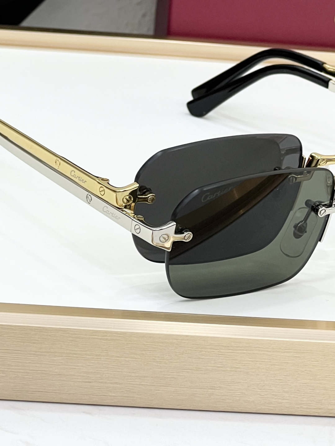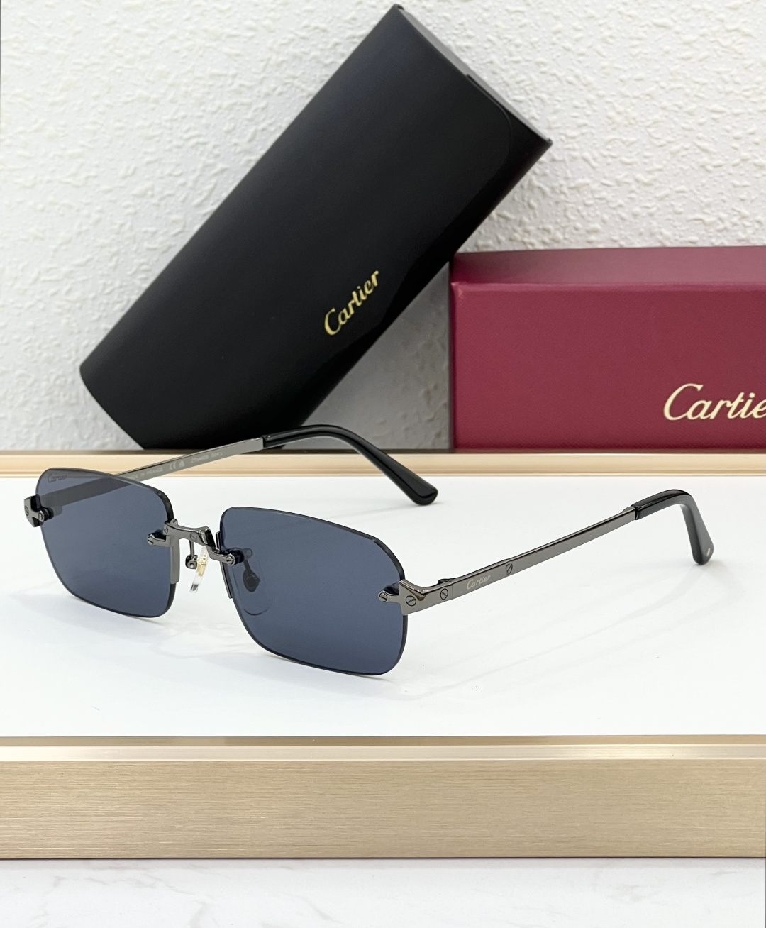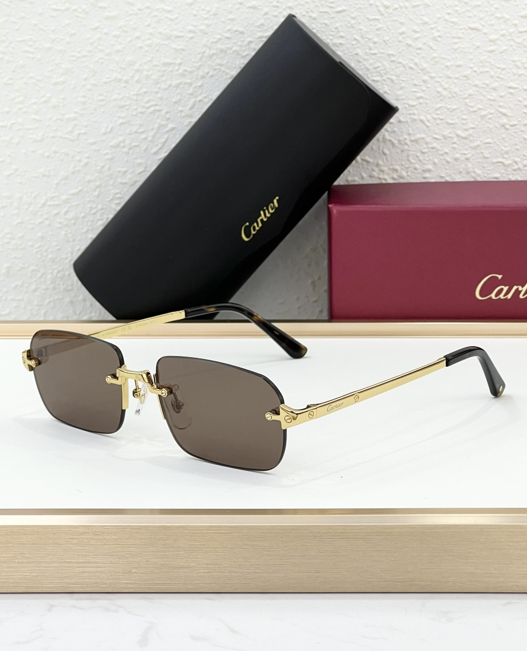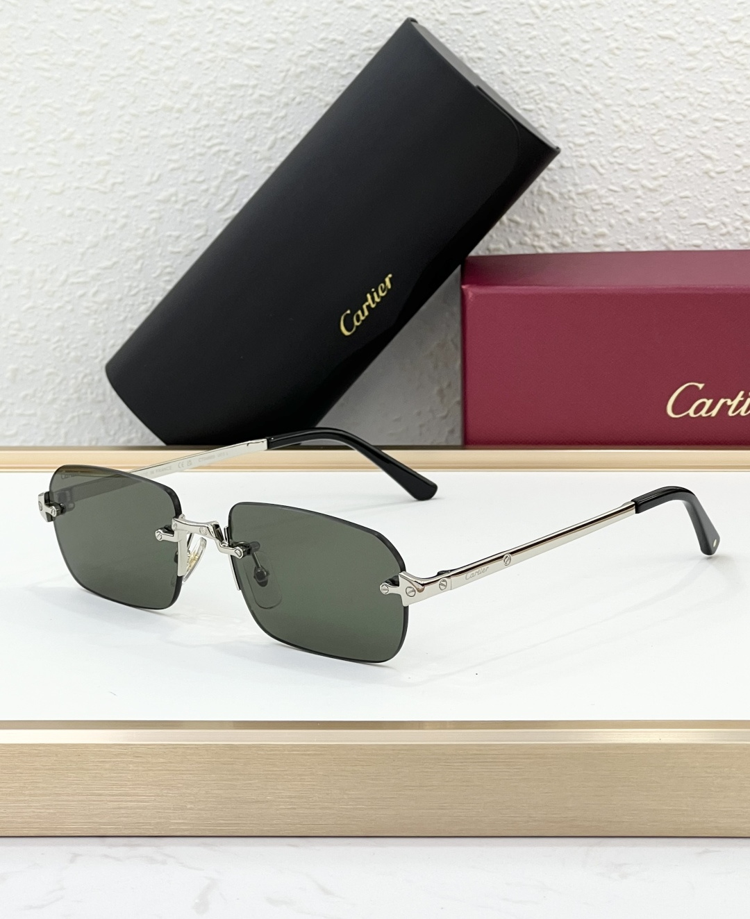这款太阳眼镜是AAAAA 1:1 质量 (非常棒). 使用了和原版一模一样的材料. 商标部分也保持了和卡地亚/Cartier一样. 图片拍摄是实物太阳眼镜拍摄, 您所收到的实物保证和我们图片一模一样.