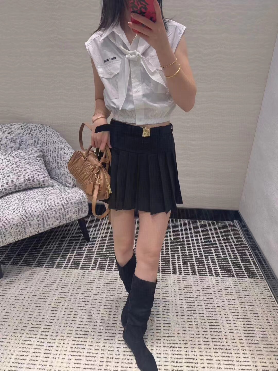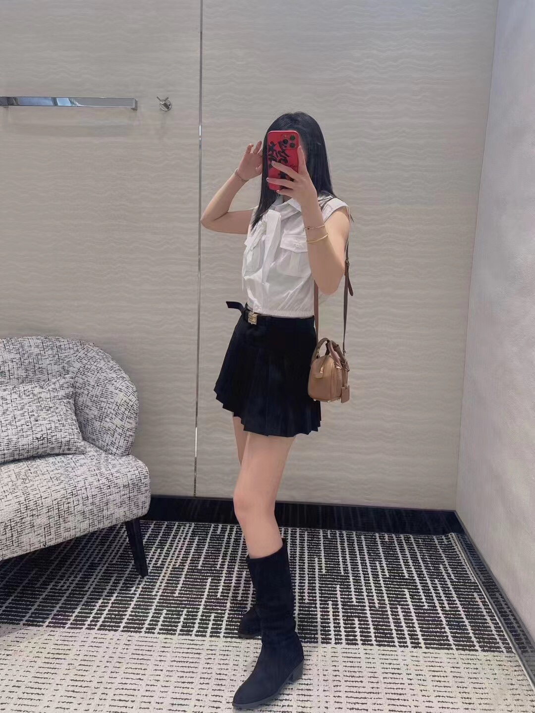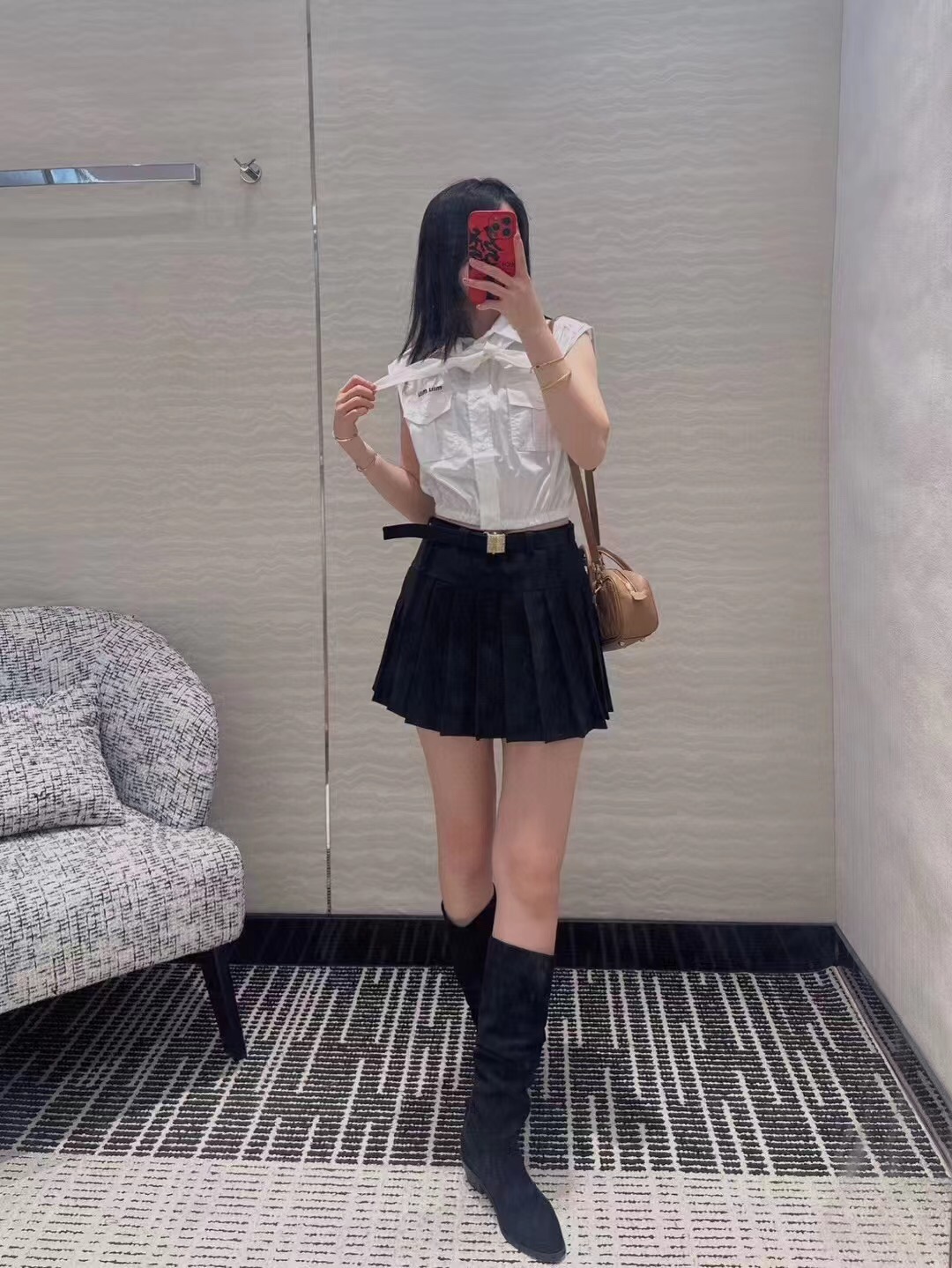 这款衣服是AAAAA 1:1 质量 (非常棒). 使用了和原版一模一样的材料. 商标部分也保持了和缪缪/Miu Miu一样. 图片拍摄是实物衣服拍摄, 您所收到的实物保证和我们图片一模一样.