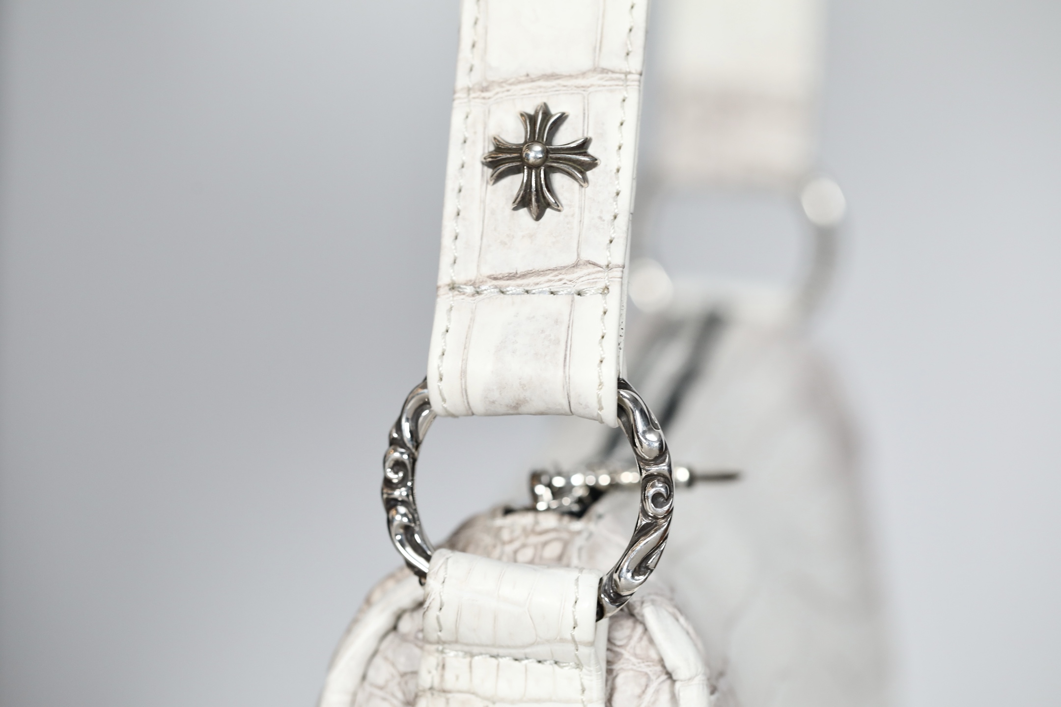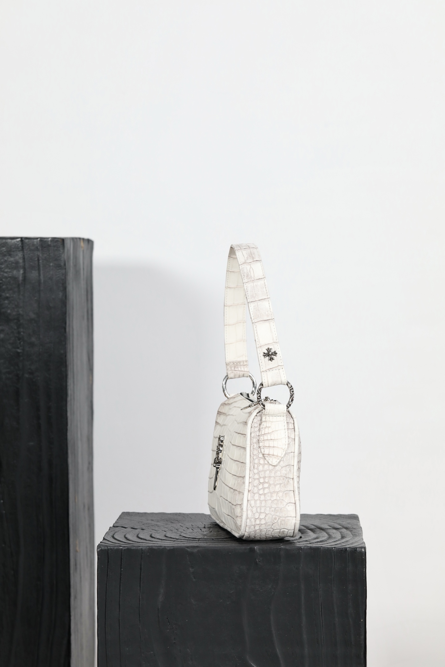 这款包包是AAAAA 1:1 质量 (非常棒). 使用了和原版一模一样的材料. 商标部分也保持了和克罗心/Chrome Hearts一样. 图片拍摄是实物包包拍摄, 您所收到的实物保证和我们图片一模一样.
