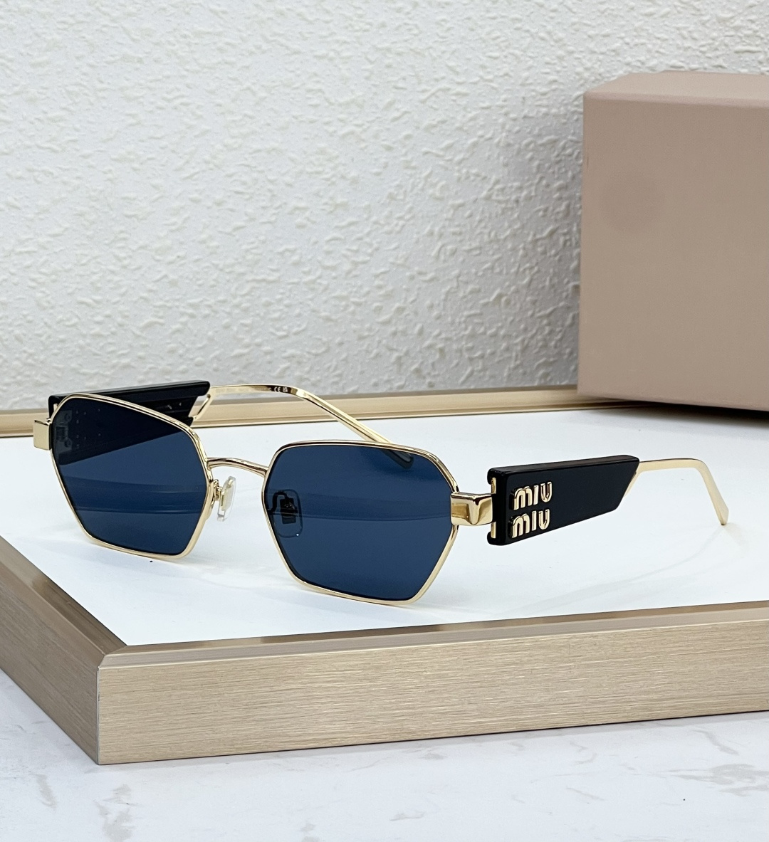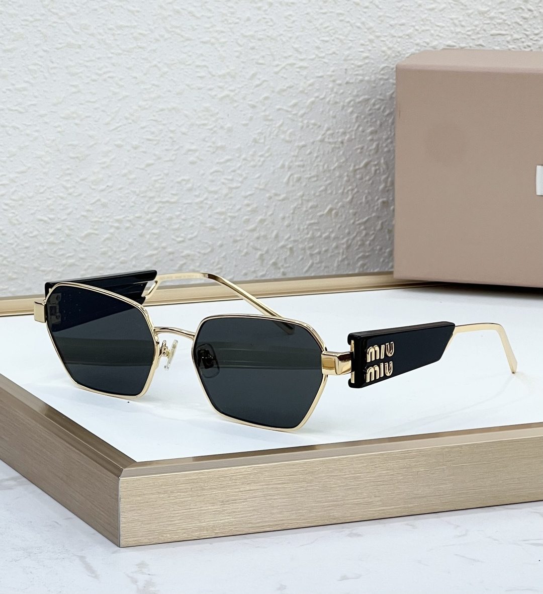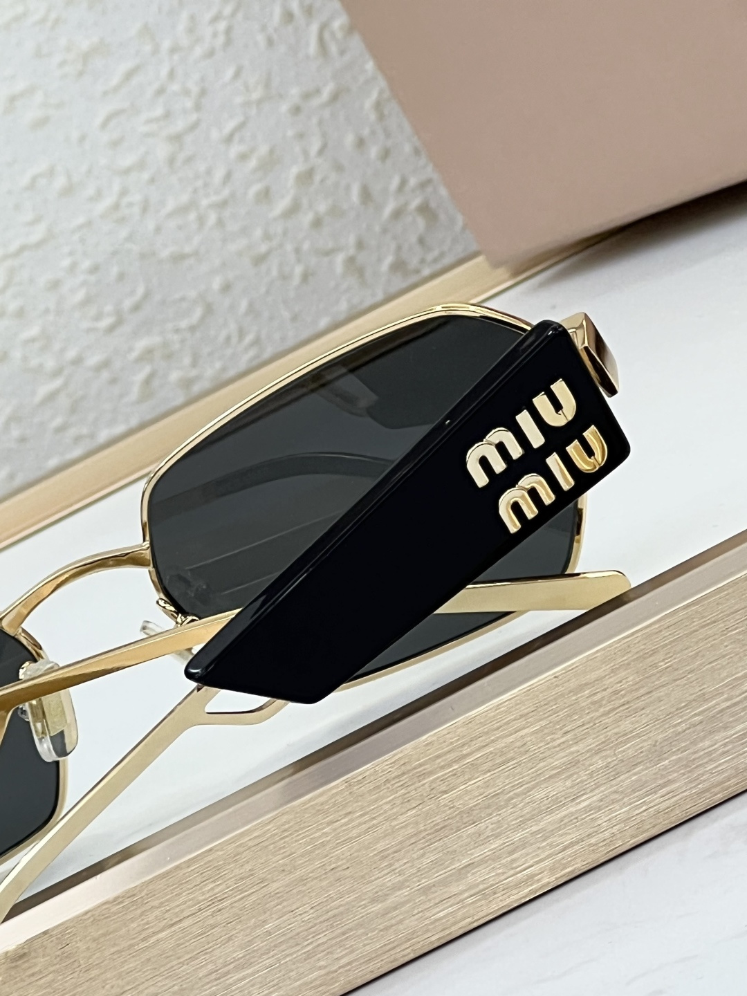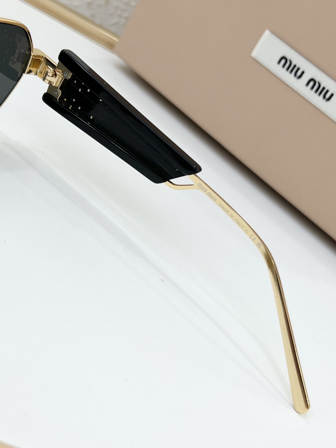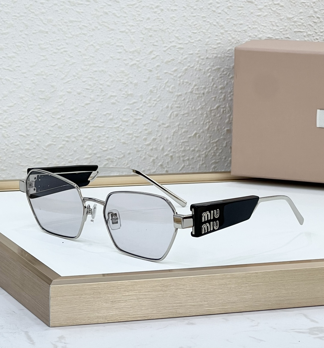 这款太阳眼镜是AAAAA 1:1 质量 (非常棒). 使用了和原版一模一样的材料. 商标部分也保持了和缪缪/Miu Miu一样. 图片拍摄是实物太阳眼镜拍摄, 您所收到的实物保证和我们图片一模一样.