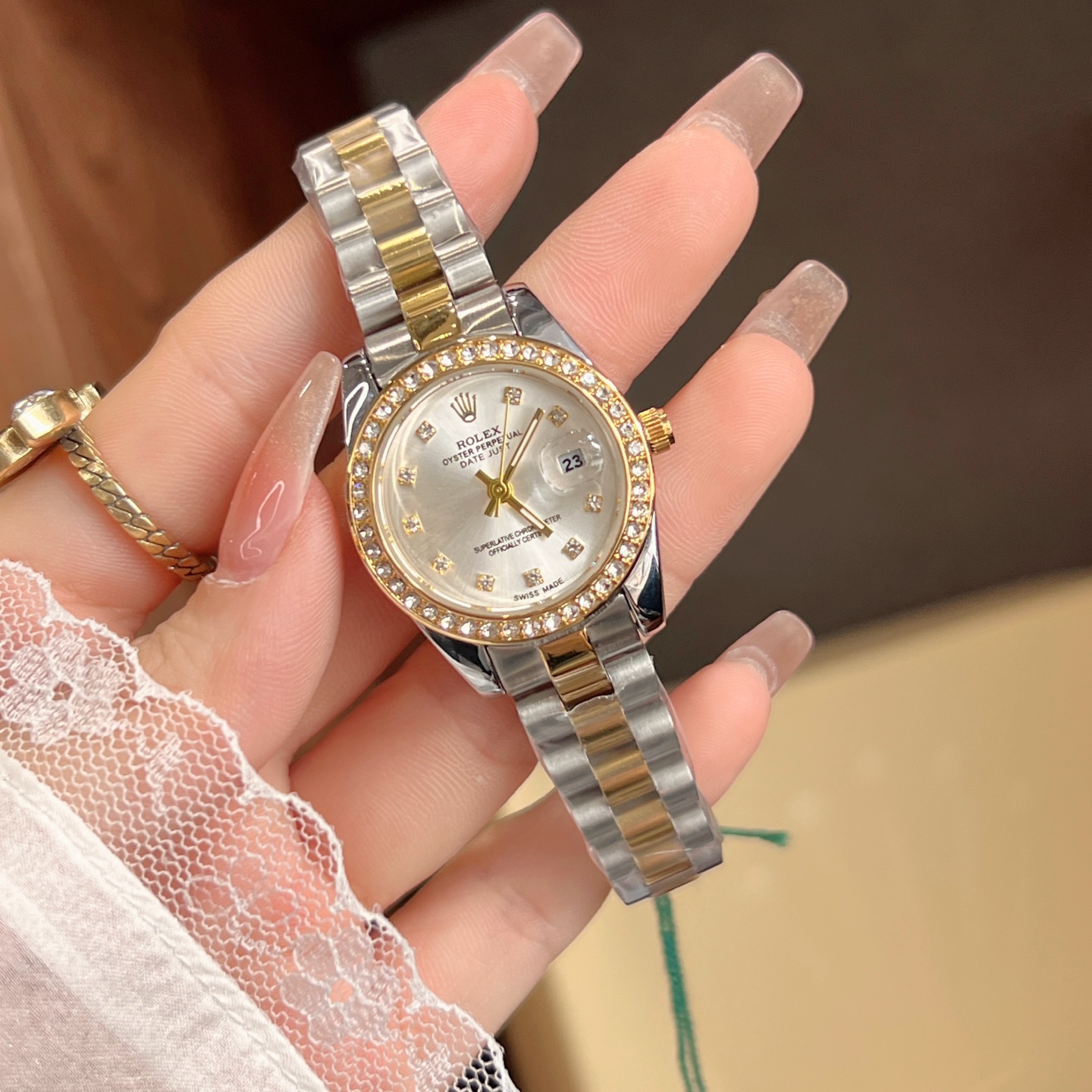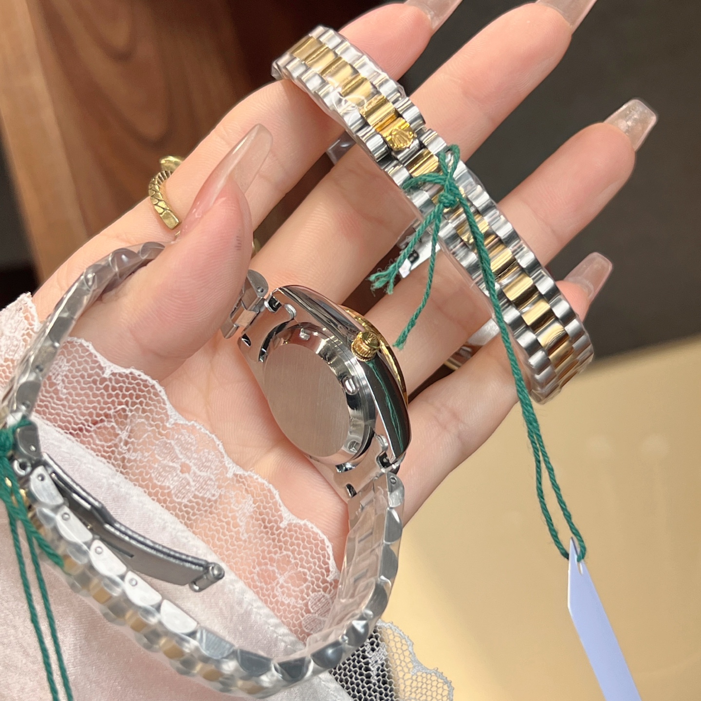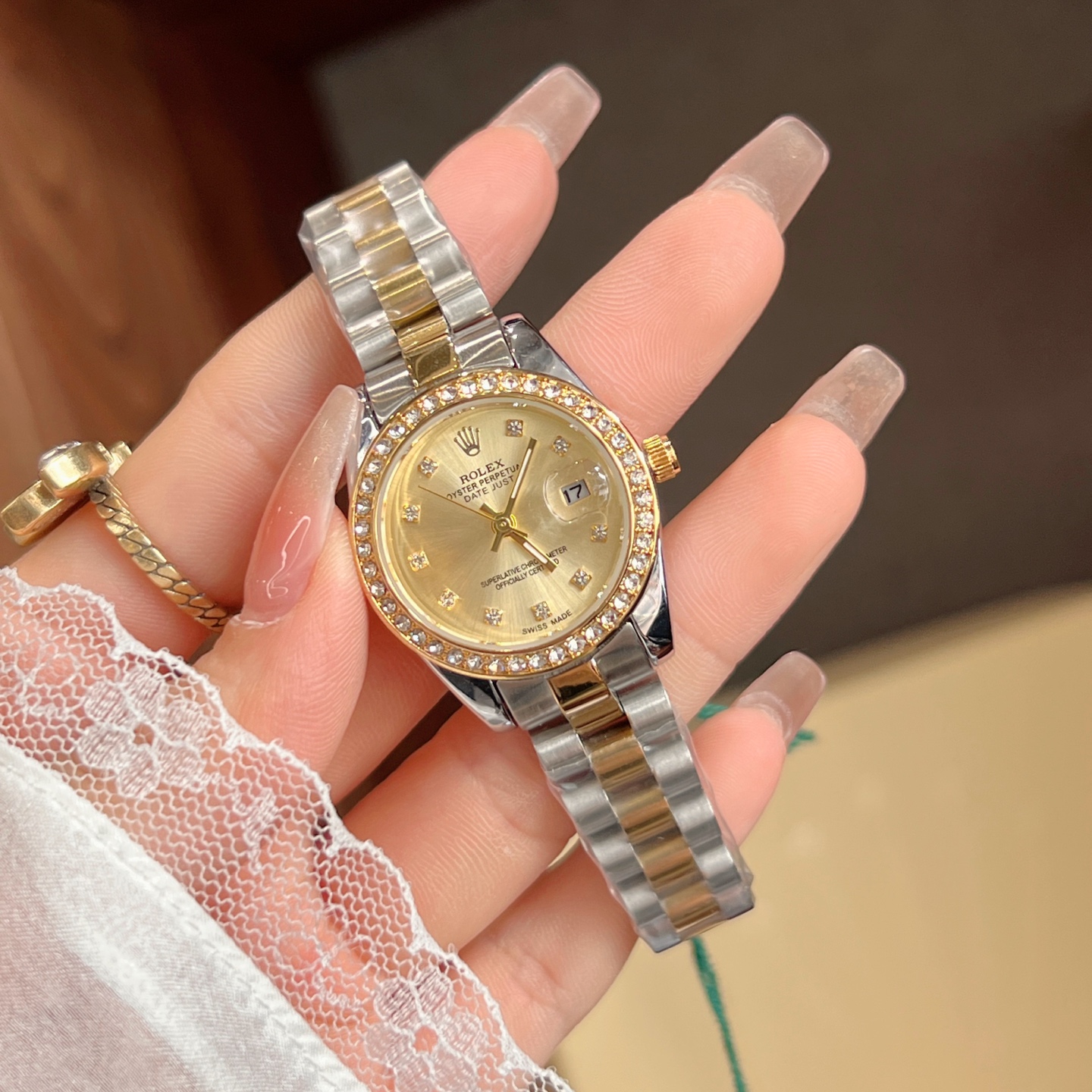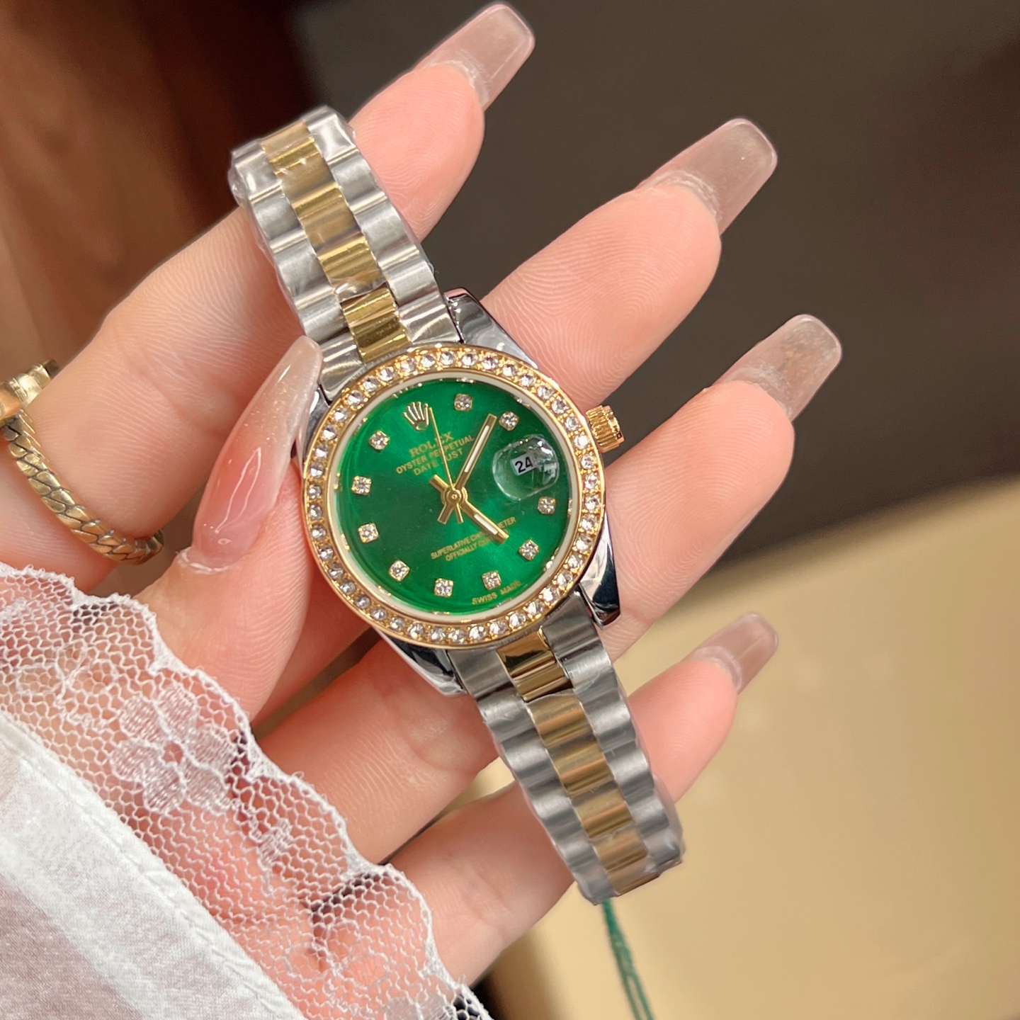 这款手表是AAAAA 1:1 质量 (非常棒). 使用了和原版一模一样的材料. 商标部分也保持了和劳力士/Rolex一样. 图片拍摄是实物手表拍摄, 您所收到的实物保证和我们图片一模一样.