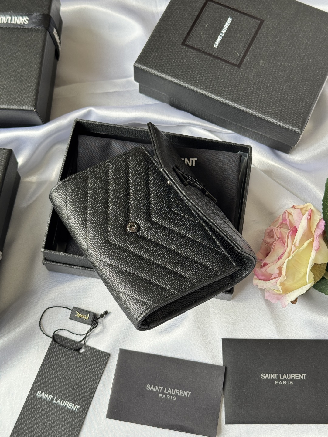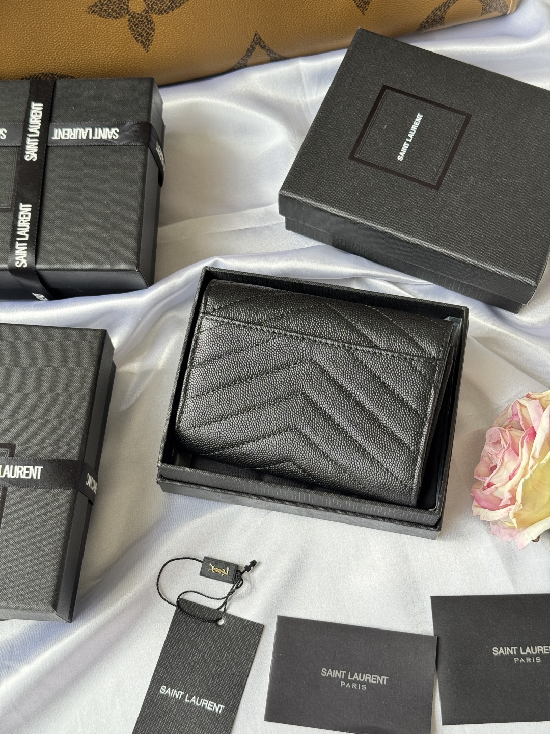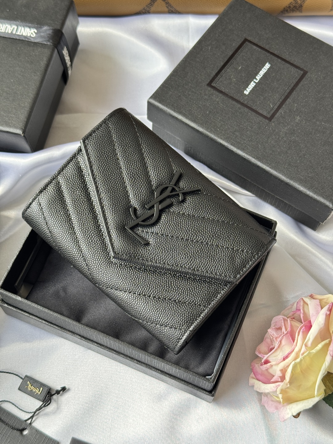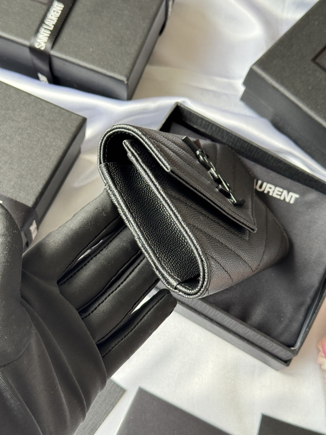 这款钱包是AAAAA 1:1 质量 (非常棒). 使用了和原版一模一样的材料. 商标部分也保持了和圣罗兰/Saint Laurent一样. 图片拍摄是实物钱包拍摄, 您所收到的实物保证和我们图片一模一样.