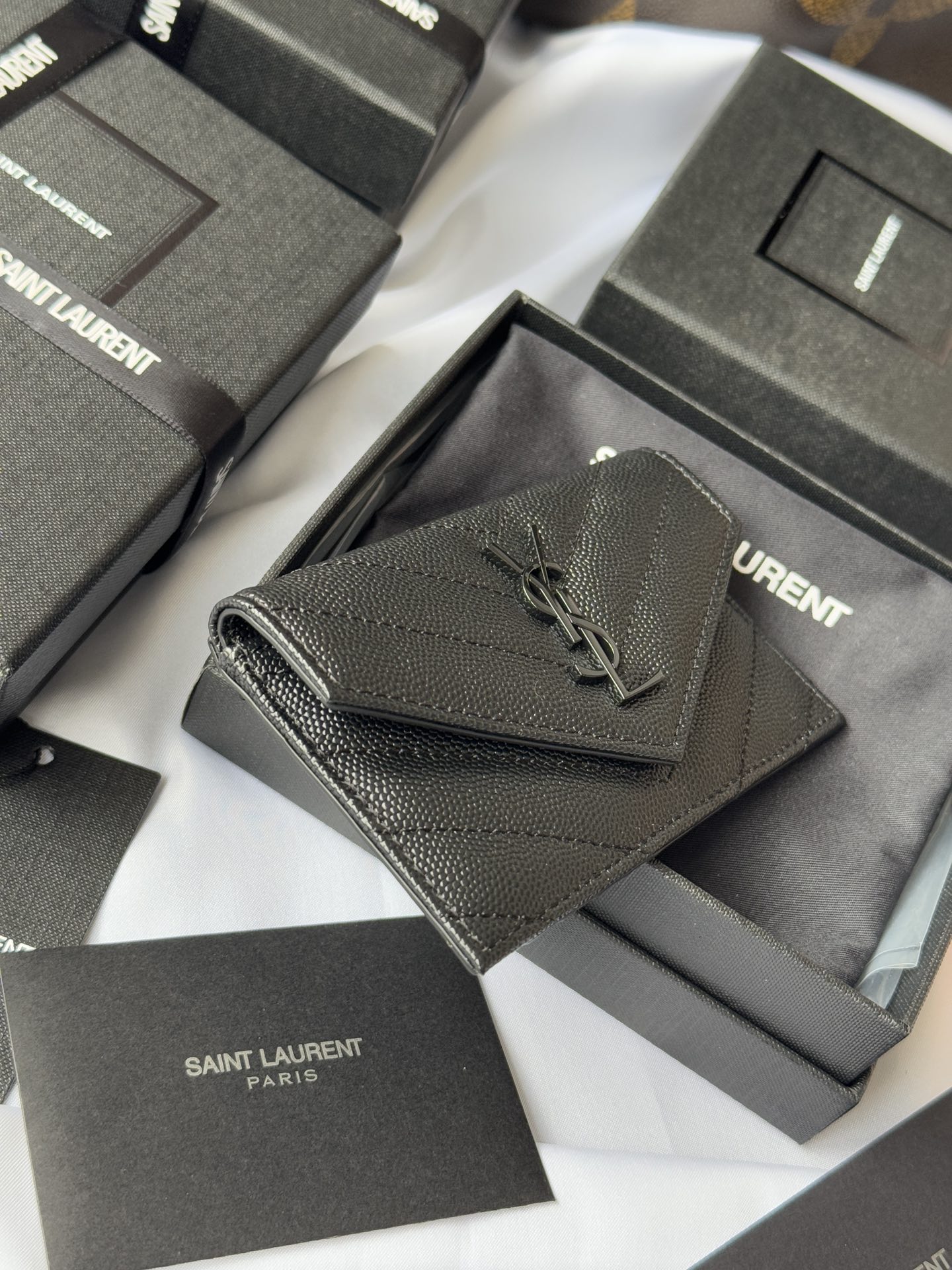 这款钱包是AAAAA 1:1 质量 (非常棒). 使用了和原版一模一样的材料. 商标部分也保持了和圣罗兰/Saint Laurent一样. 图片拍摄是实物钱包拍摄, 您所收到的实物保证和我们图片一模一样.