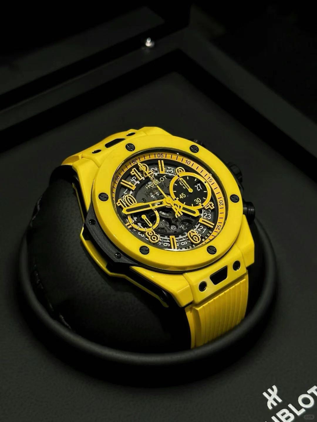 这款手表是AAAAA 1:1 质量 (非常棒). 使用了和原版一模一样的材料. 商标部分也保持了和Hublot一样. 图片拍摄是实物手表拍摄, 您所收到的实物保证和我们图片一模一样.