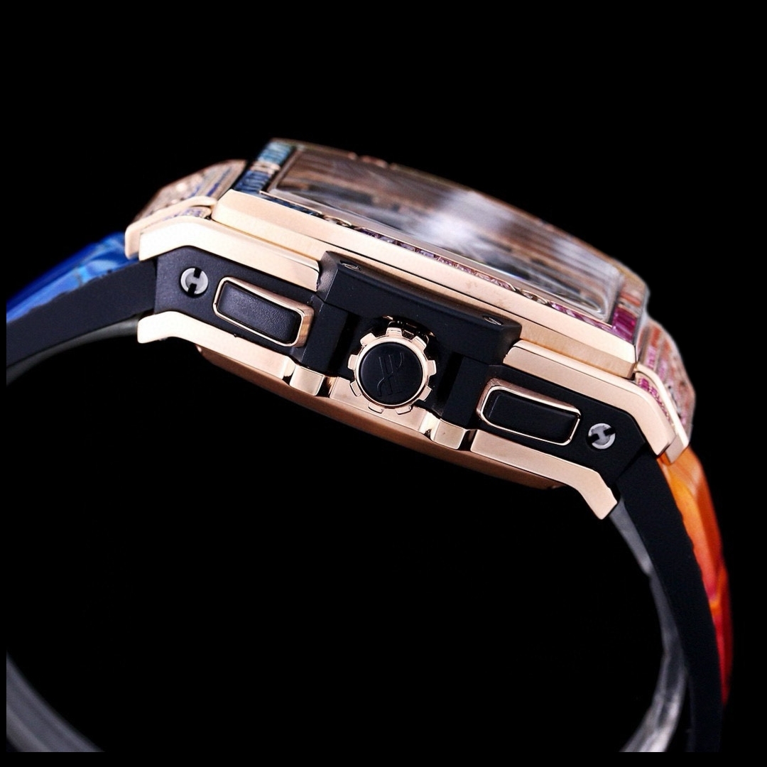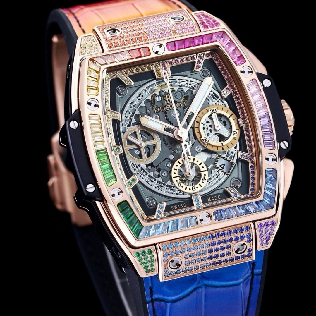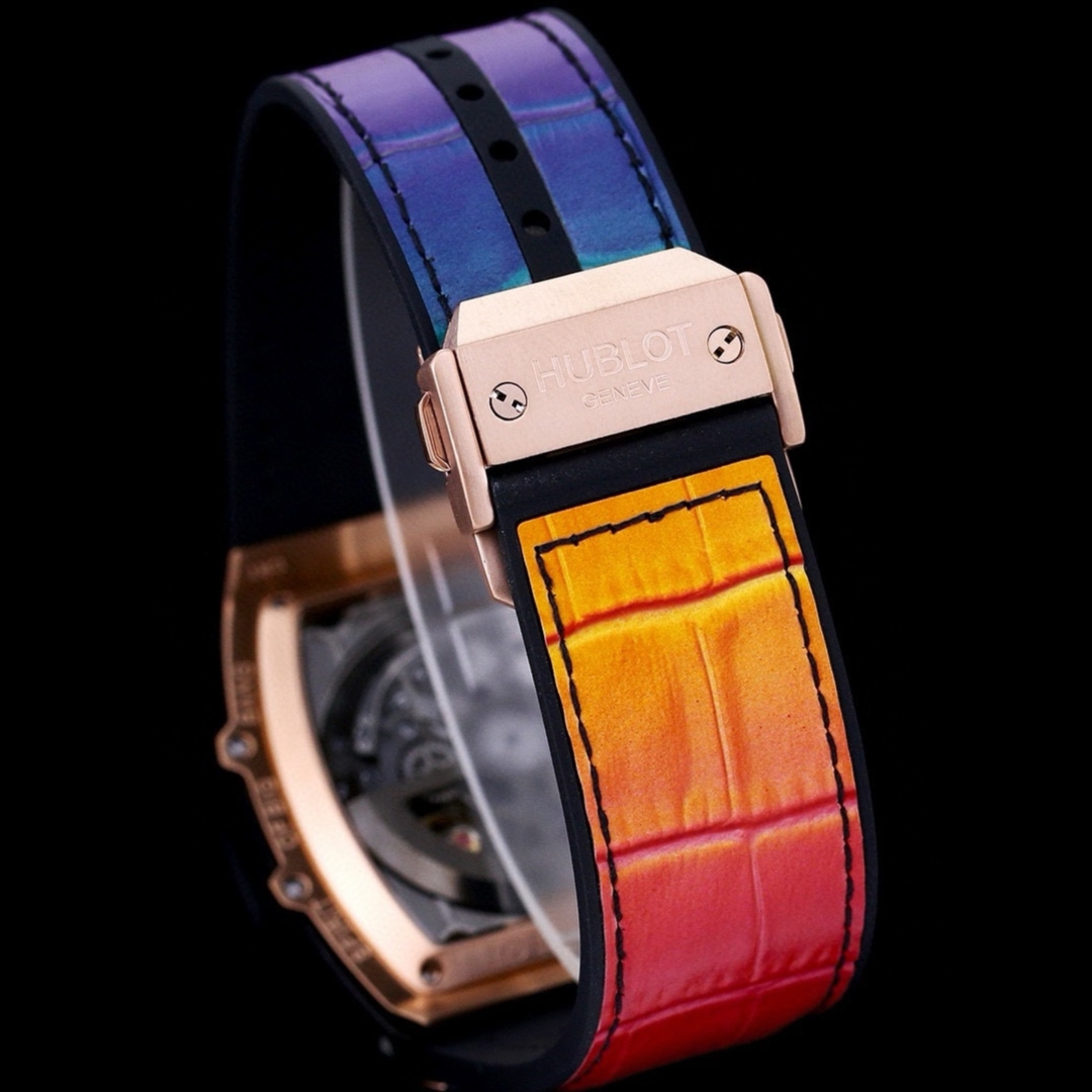 这款手表是AAAAA 1:1 质量 (非常棒). 使用了和原版一模一样的材料. 商标部分也保持了和Hublot一样. 图片拍摄是实物手表拍摄, 您所收到的实物保证和我们图片一模一样.