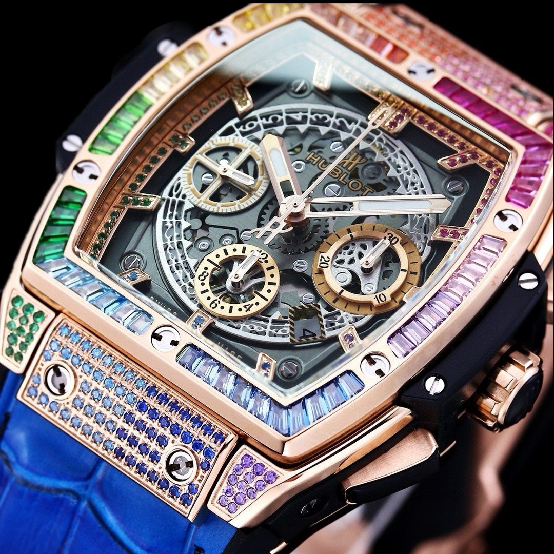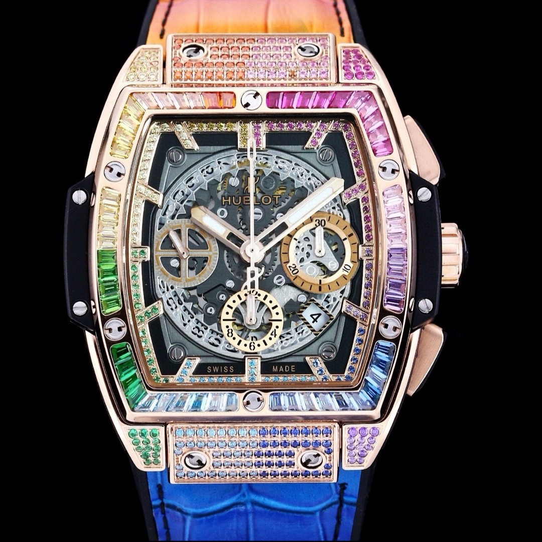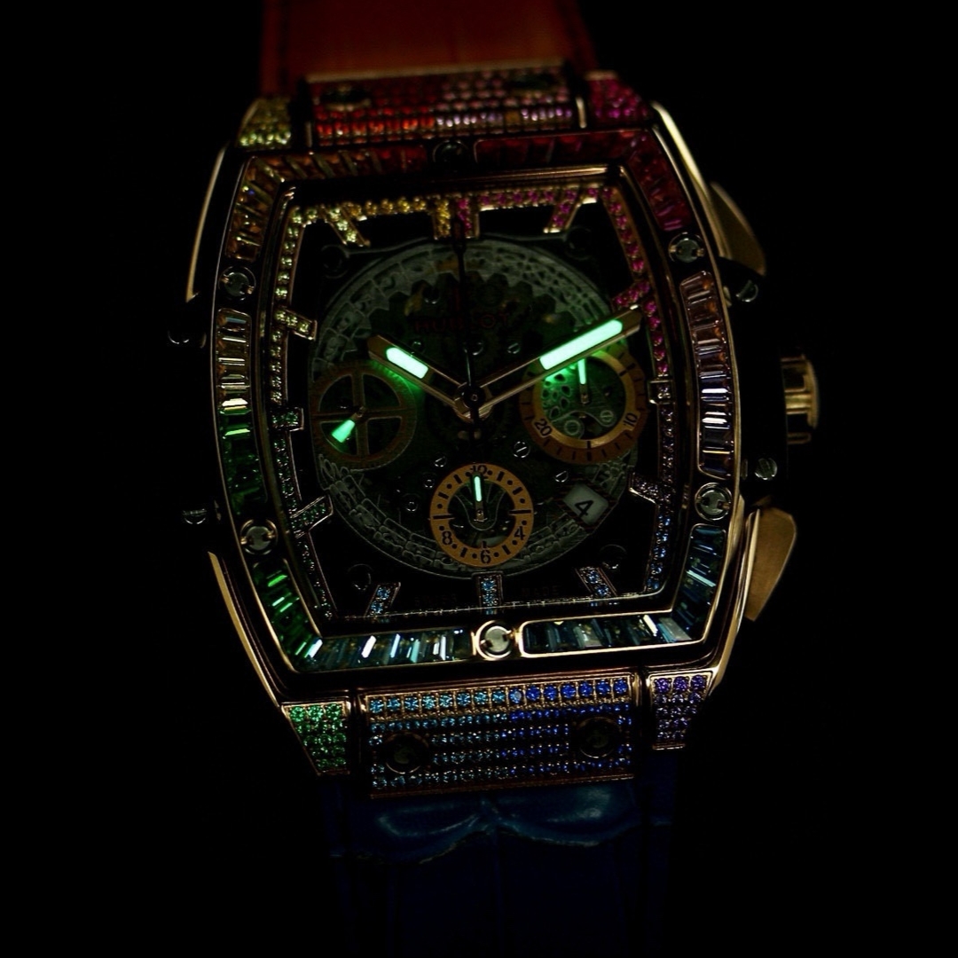 这款手表是AAAAA 1:1 质量 (非常棒). 使用了和原版一模一样的材料. 商标部分也保持了和Hublot一样. 图片拍摄是实物手表拍摄, 您所收到的实物保证和我们图片一模一样.