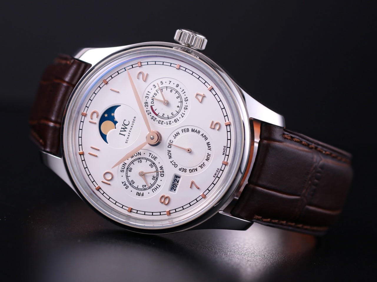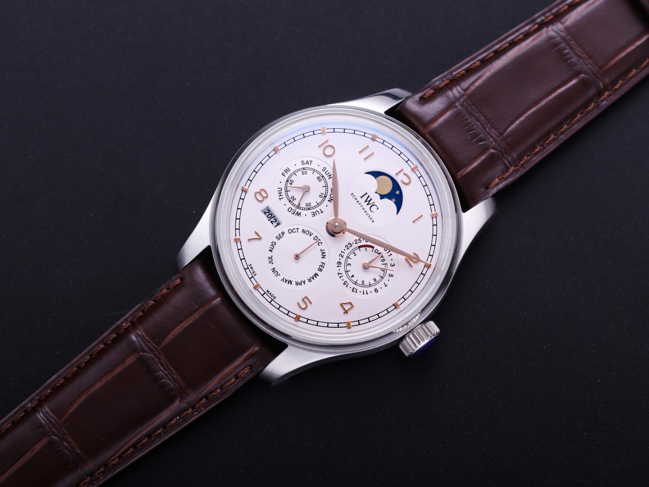 这款手表是AAAAA 1:1 质量 (非常棒). 使用了和原版一模一样的材料. 商标部分也保持了和万国表/IWC Schaffhausen一样. 图片拍摄是实物手表拍摄, 您所收到的实物保证和我们图片一模一样.
