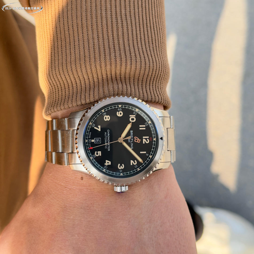 这款手表是AAAAA 1:1 质量 (非常棒). 使用了和原版一模一样的材料. 商标部分也保持了和Breitling一样. 图片拍摄是实物手表拍摄, 您所收到的实物保证和我们图片一模一样.