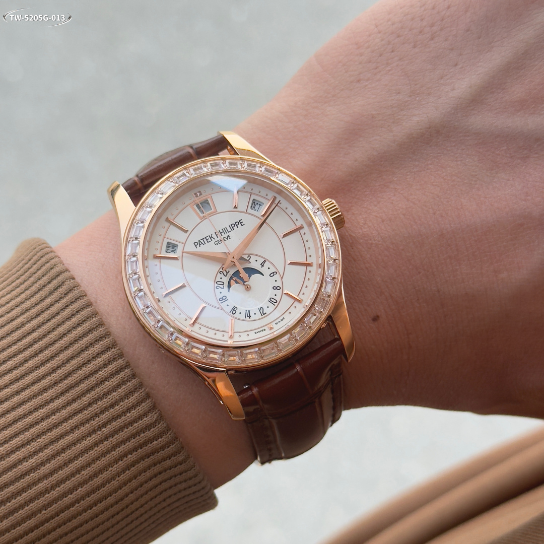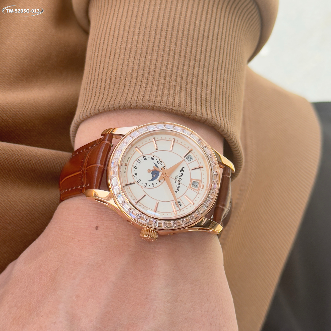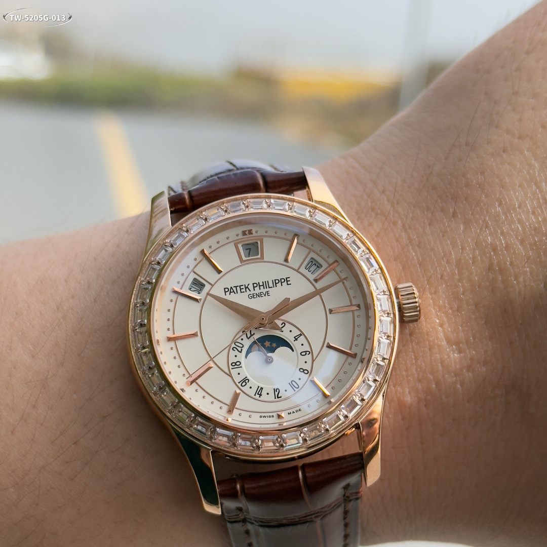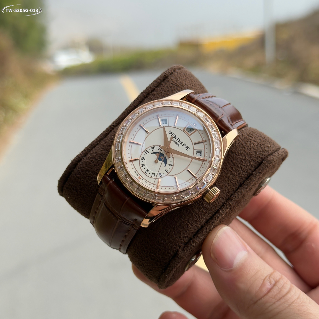 这款手表是AAAAA 1:1 质量 (非常棒). 使用了和原版一模一样的材料. 商标部分也保持了和百达翡丽/Patek Philippe一样. 图片拍摄是实物手表拍摄, 您所收到的实物保证和我们图片一模一样.
