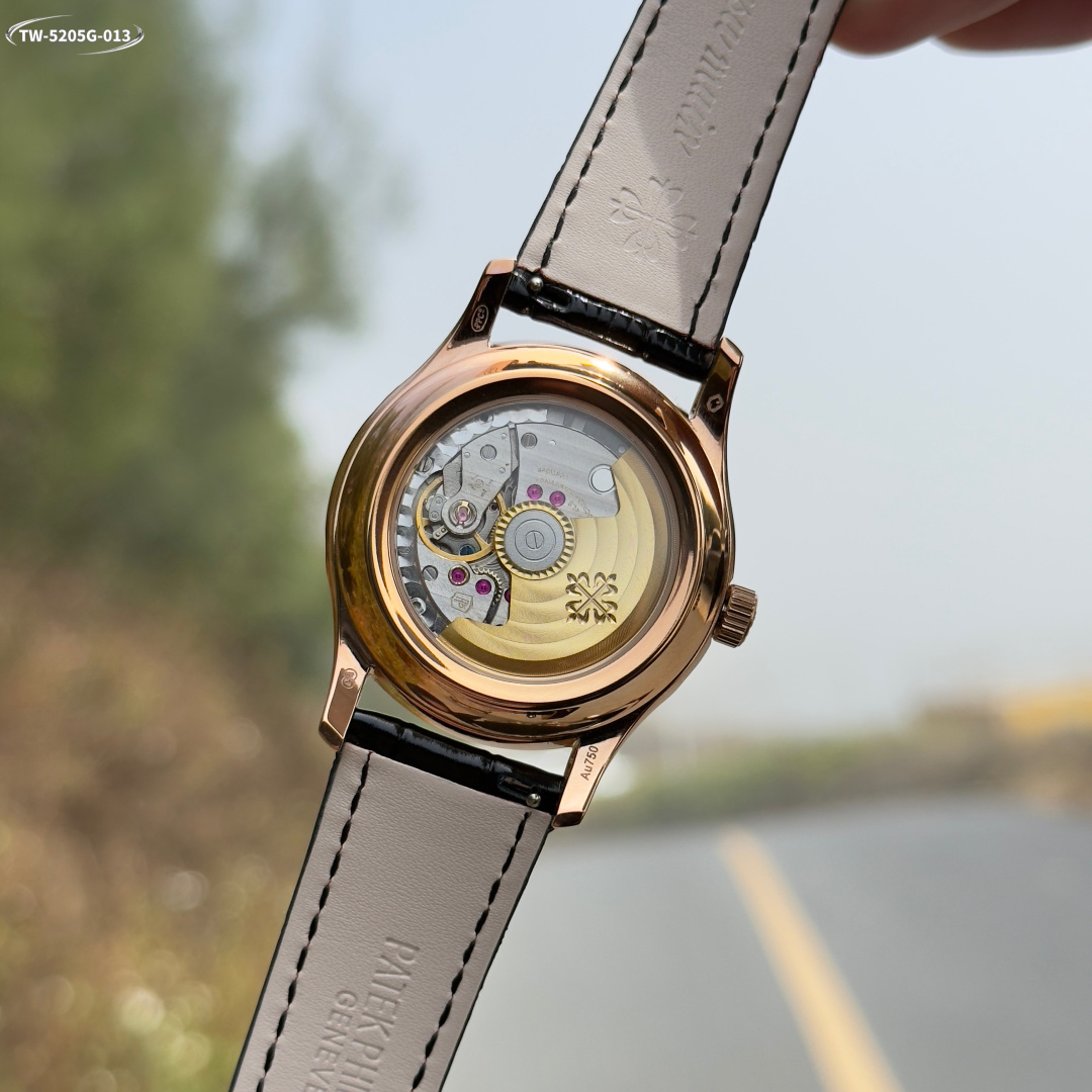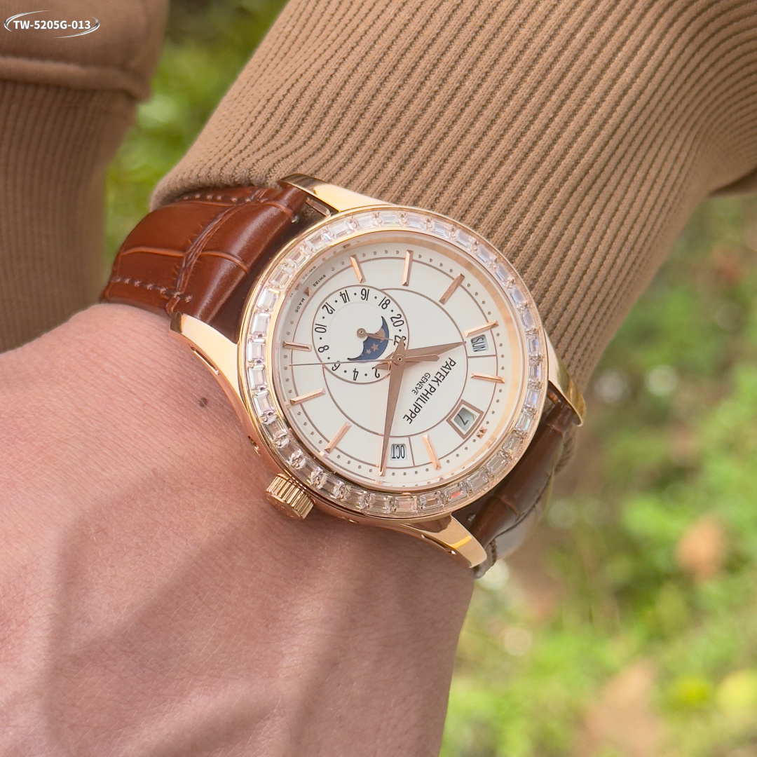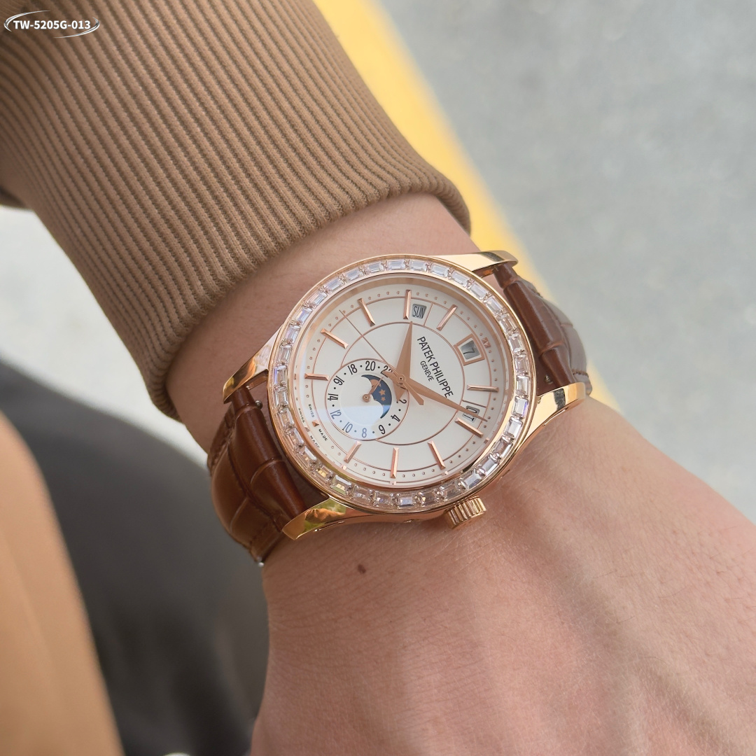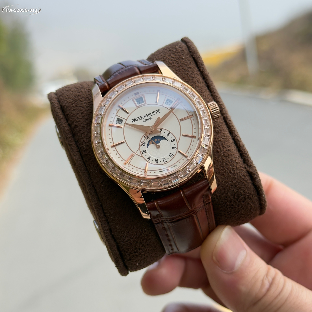 这款手表是AAAAA 1:1 质量 (非常棒). 使用了和原版一模一样的材料. 商标部分也保持了和百达翡丽/Patek Philippe一样. 图片拍摄是实物手表拍摄, 您所收到的实物保证和我们图片一模一样.