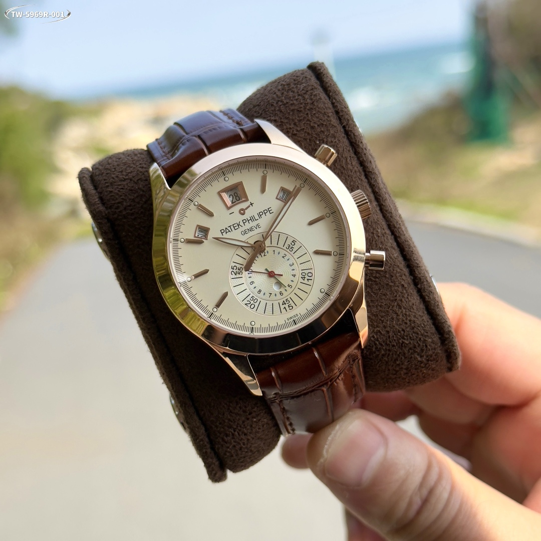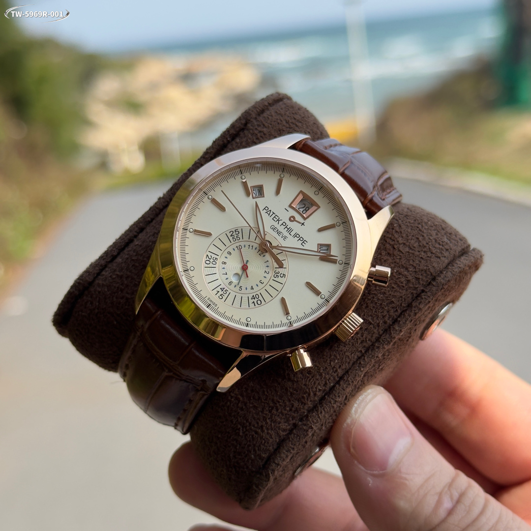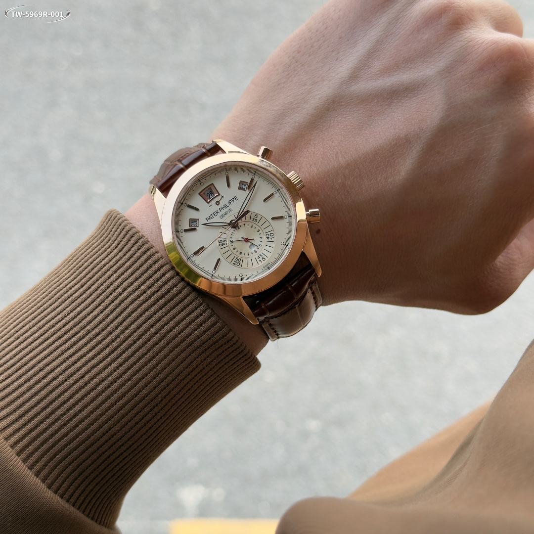 这款手表是AAAAA 1:1 质量 (非常棒). 使用了和原版一模一样的材料. 商标部分也保持了和百达翡丽/Patek Philippe一样. 图片拍摄是实物手表拍摄, 您所收到的实物保证和我们图片一模一样.