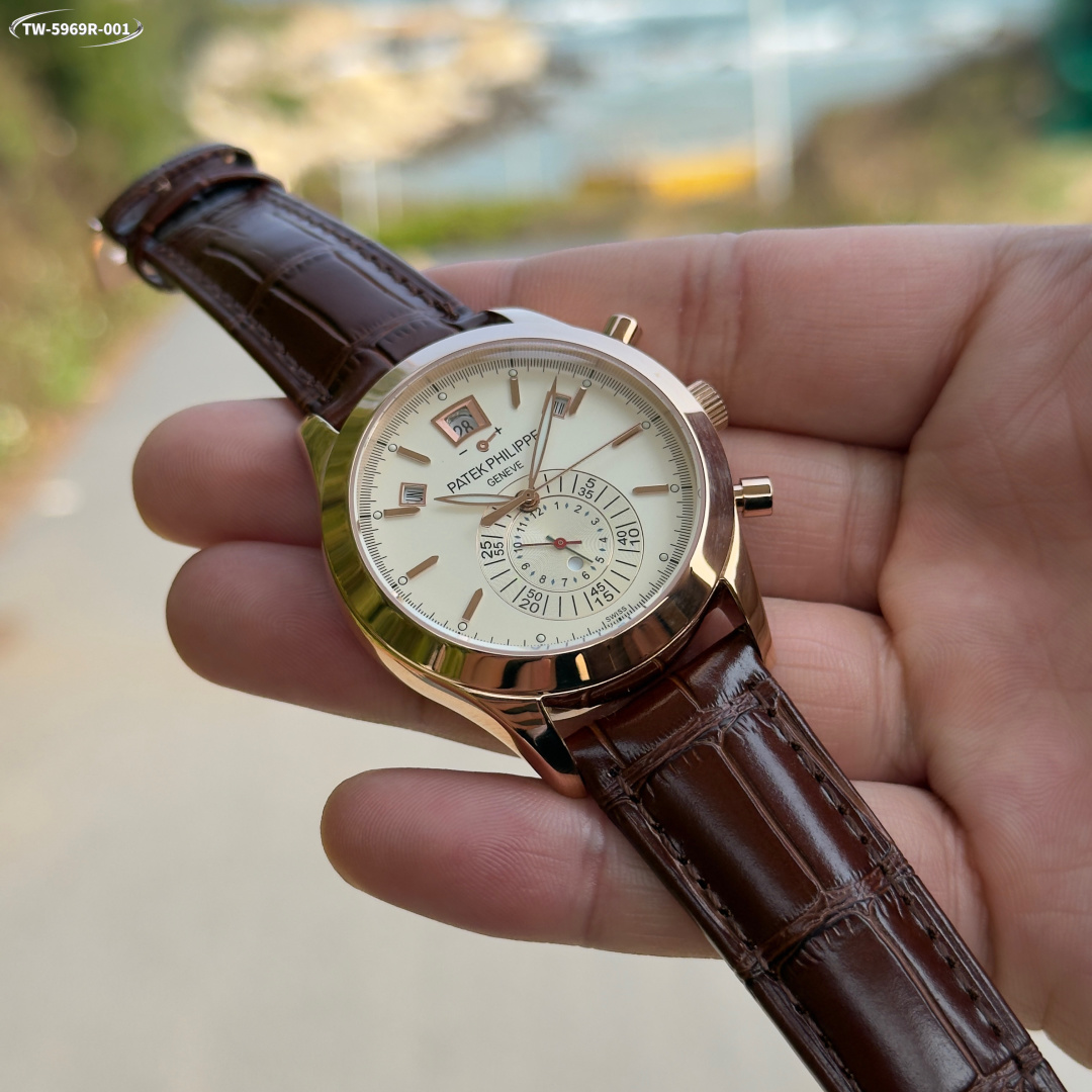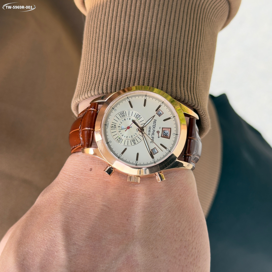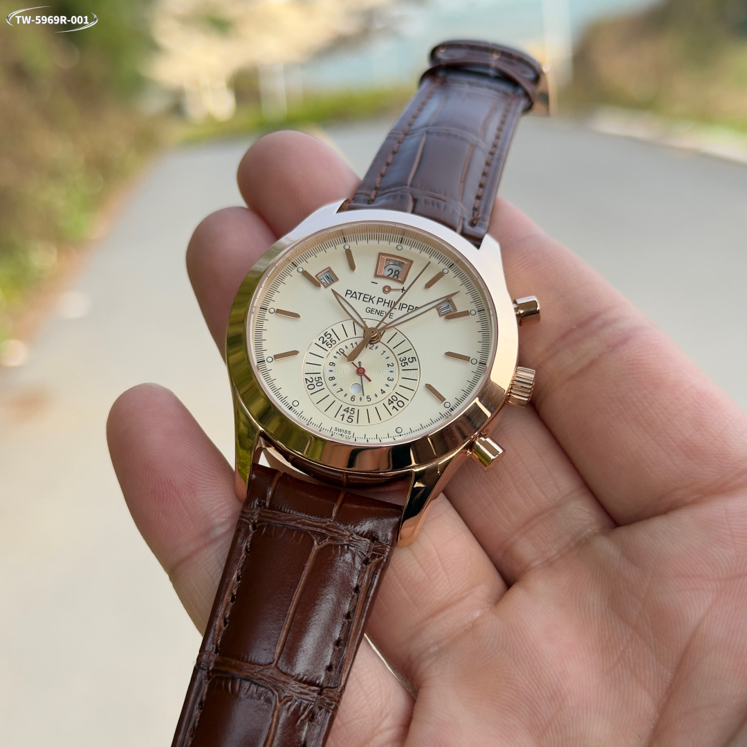 这款手表是AAAAA 1:1 质量 (非常棒). 使用了和原版一模一样的材料. 商标部分也保持了和百达翡丽/Patek Philippe一样. 图片拍摄是实物手表拍摄, 您所收到的实物保证和我们图片一模一样.