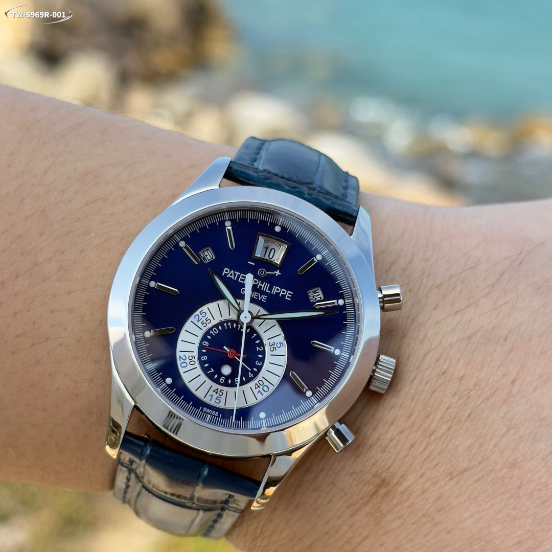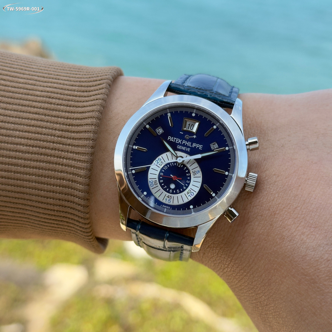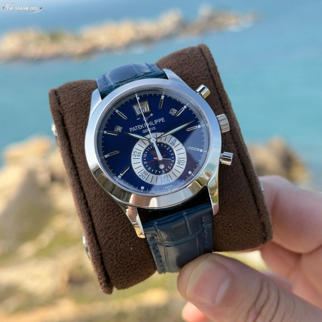 这款手表是AAAAA 1:1 质量 (非常棒). 使用了和原版一模一样的材料. 商标部分也保持了和百达翡丽/Patek Philippe一样. 图片拍摄是实物手表拍摄, 您所收到的实物保证和我们图片一模一样.