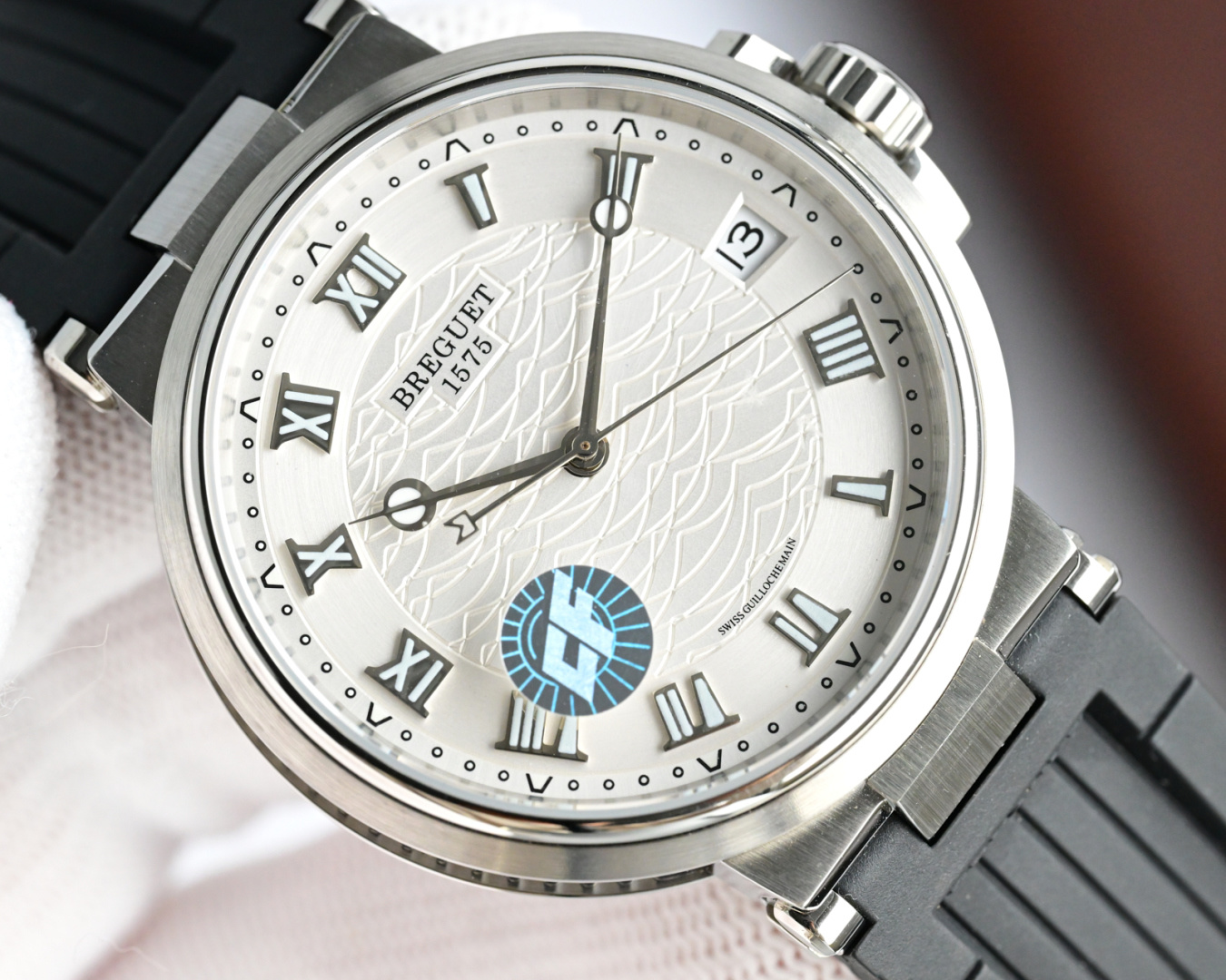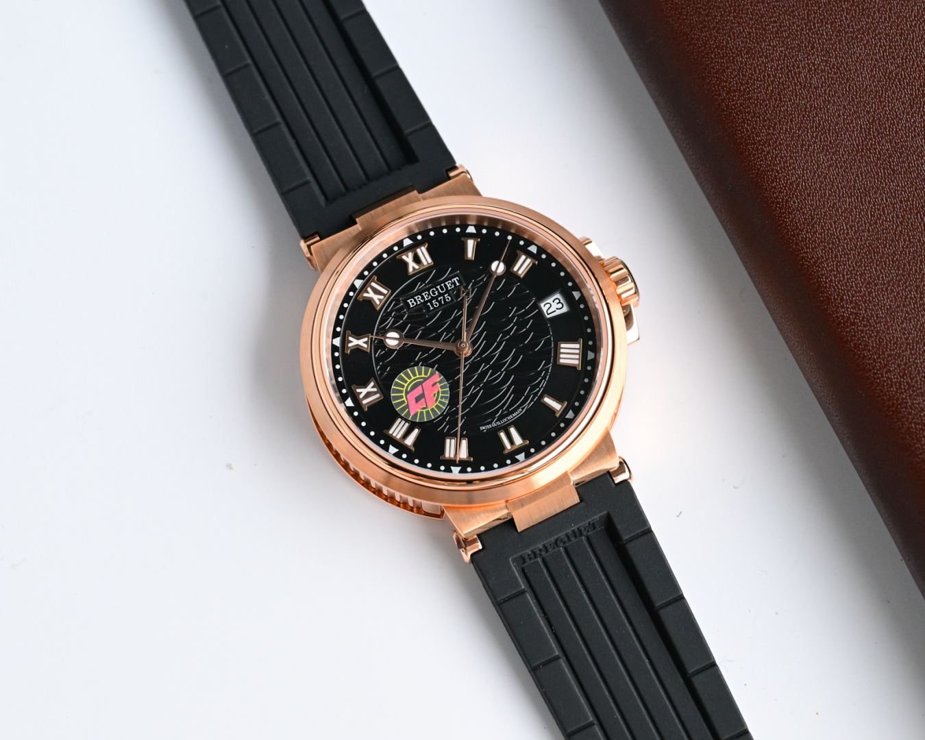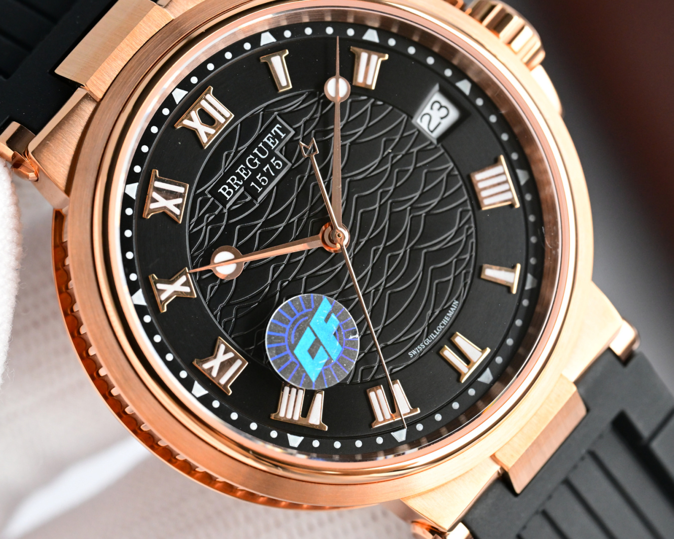 这款手表是AAAAA 1:1 质量 (非常棒). 使用了和原版一模一样的材料. 商标部分也保持了和Breguet一样. 图片拍摄是实物手表拍摄, 您所收到的实物保证和我们图片一模一样.