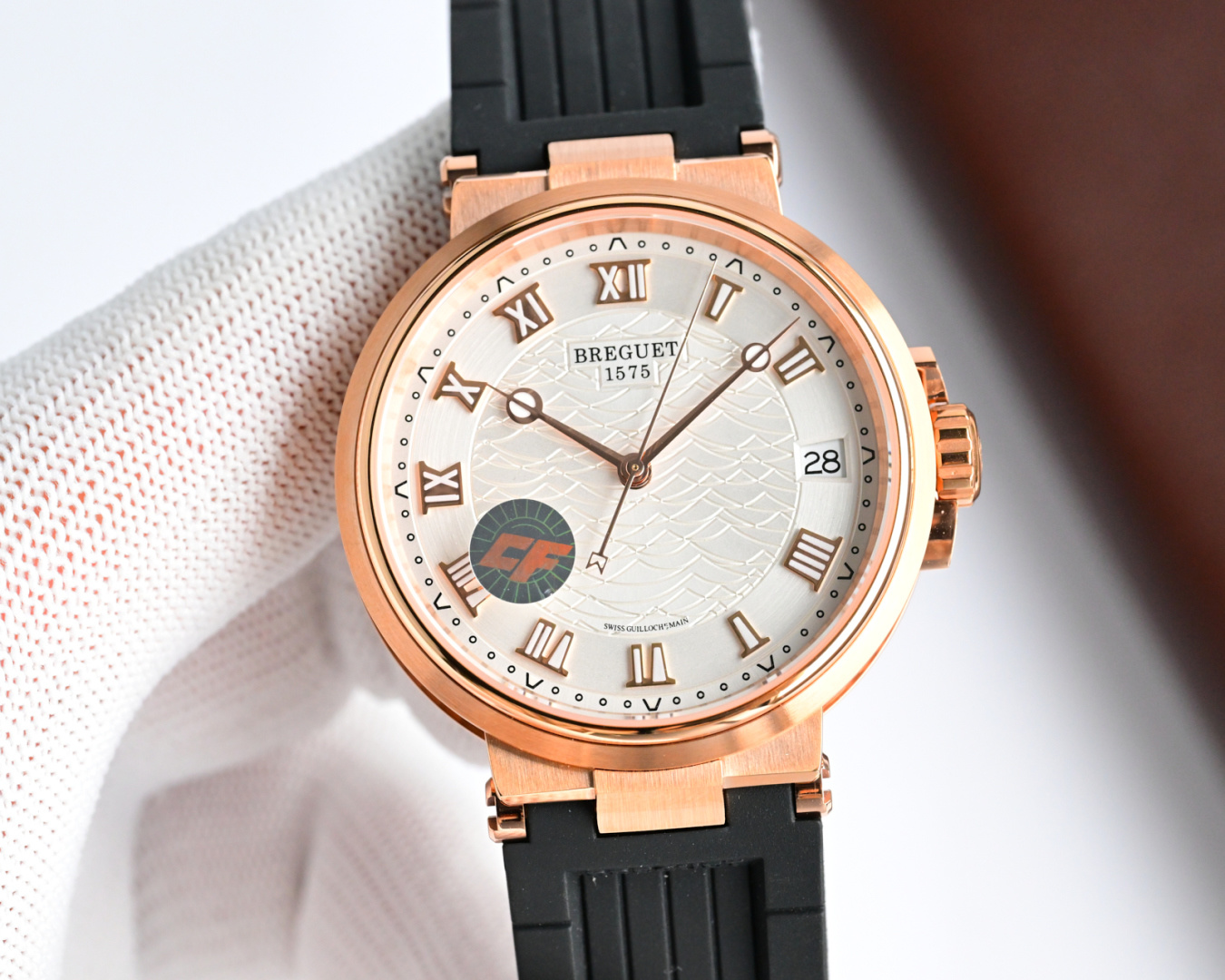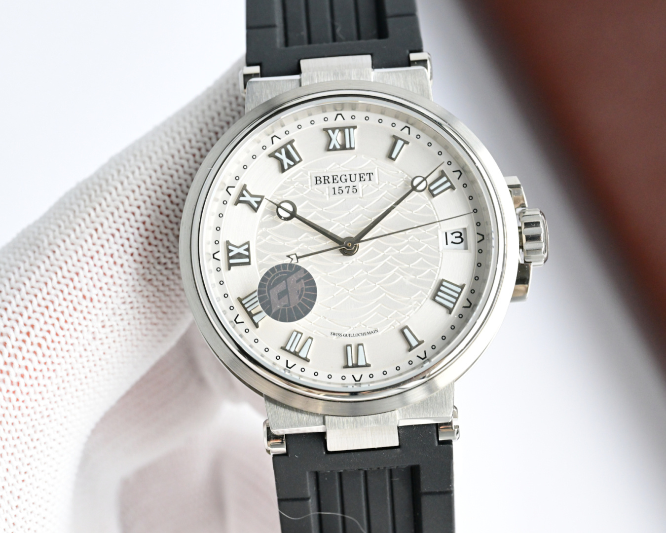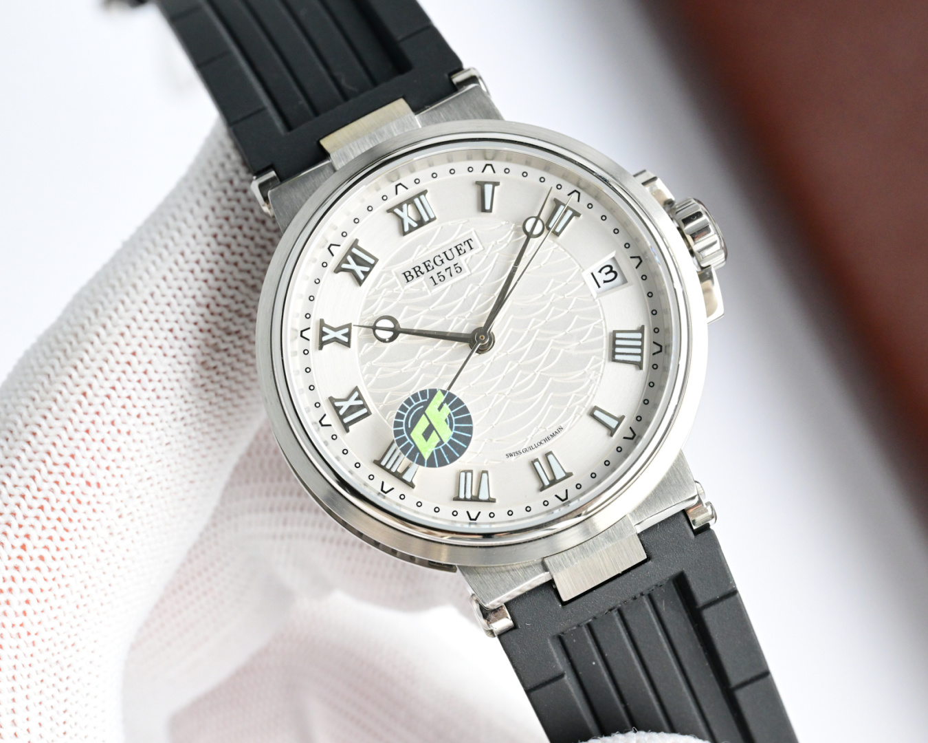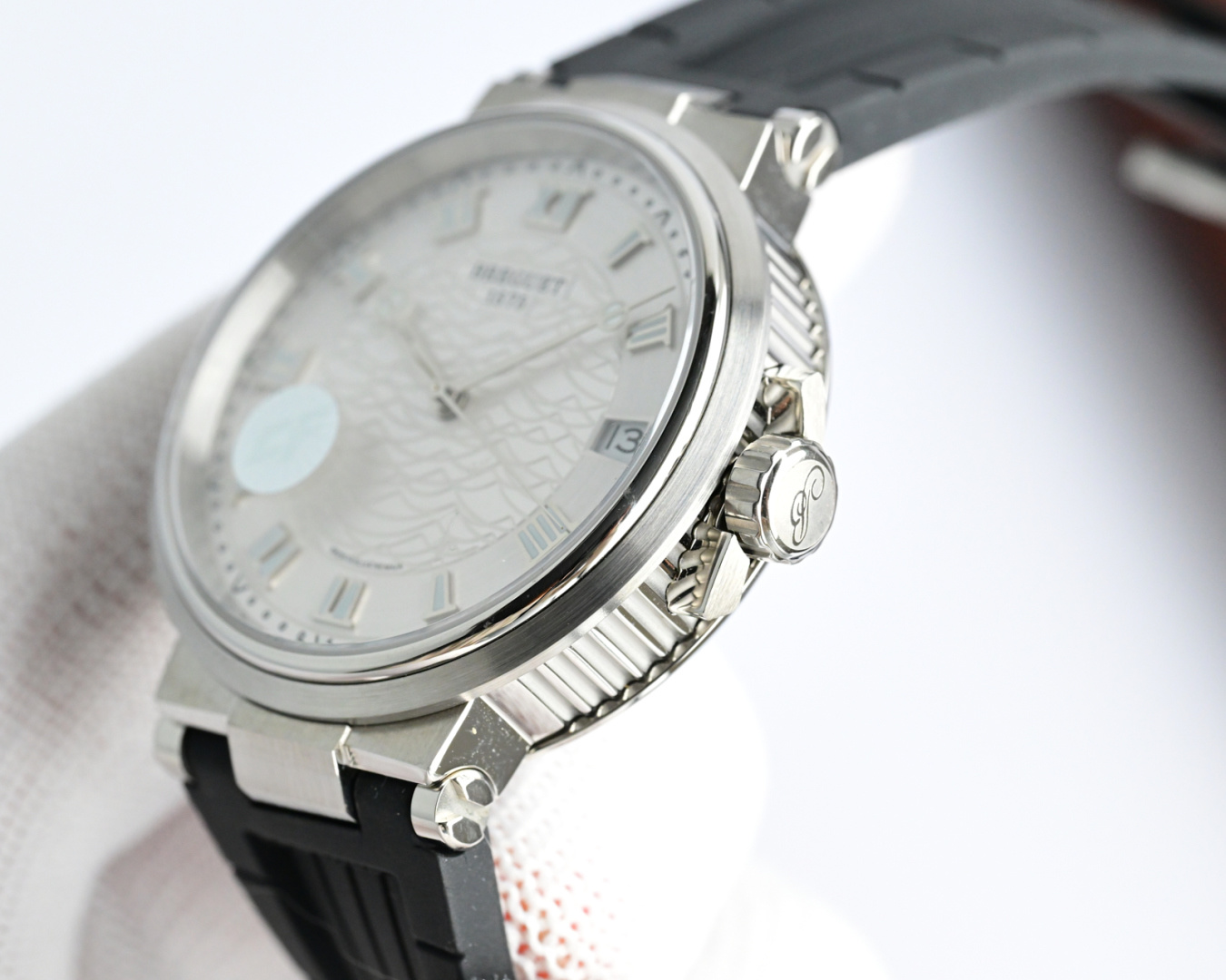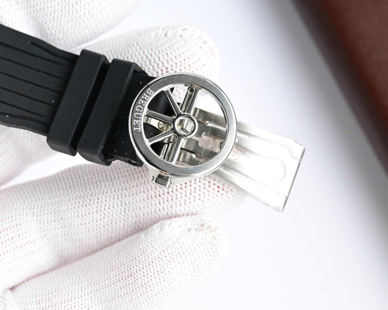 这款手表是AAAAA 1:1 质量 (非常棒). 使用了和原版一模一样的材料. 商标部分也保持了和Breguet一样. 图片拍摄是实物手表拍摄, 您所收到的实物保证和我们图片一模一样.