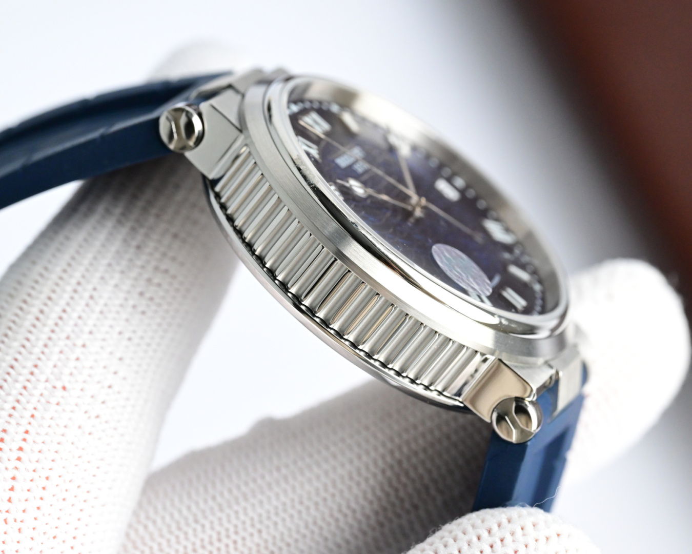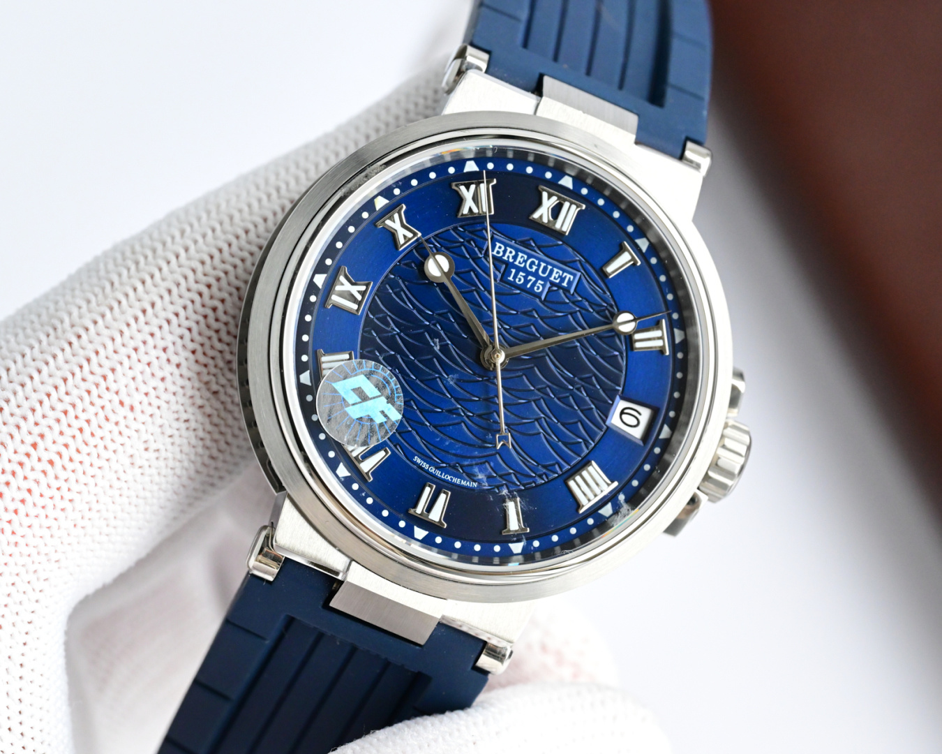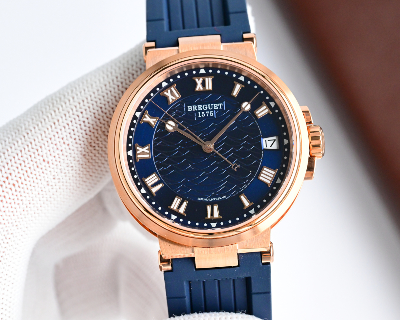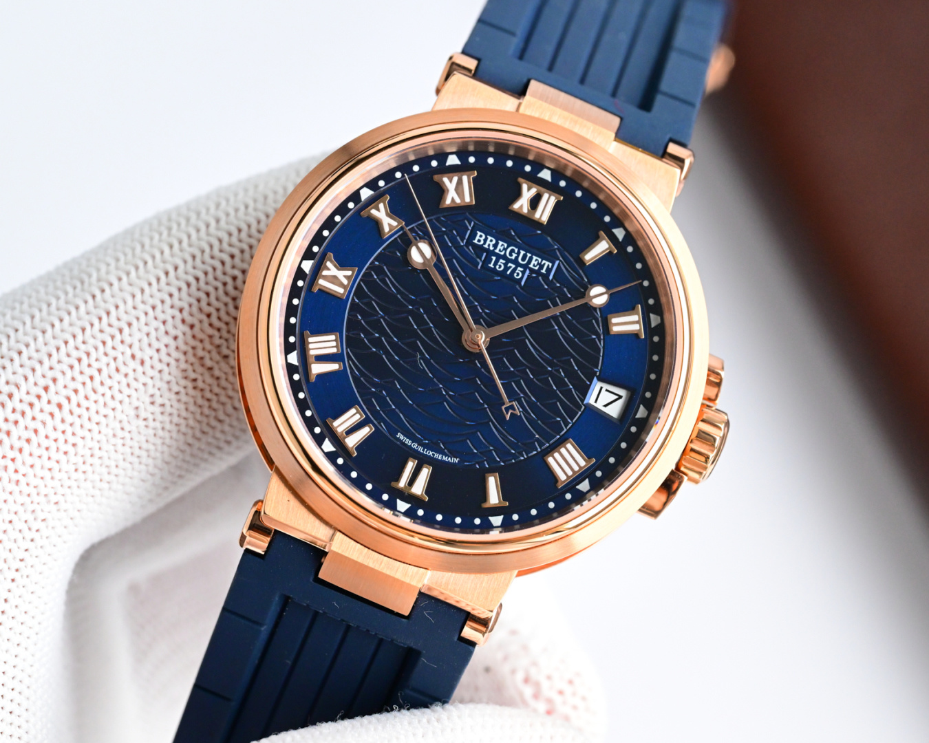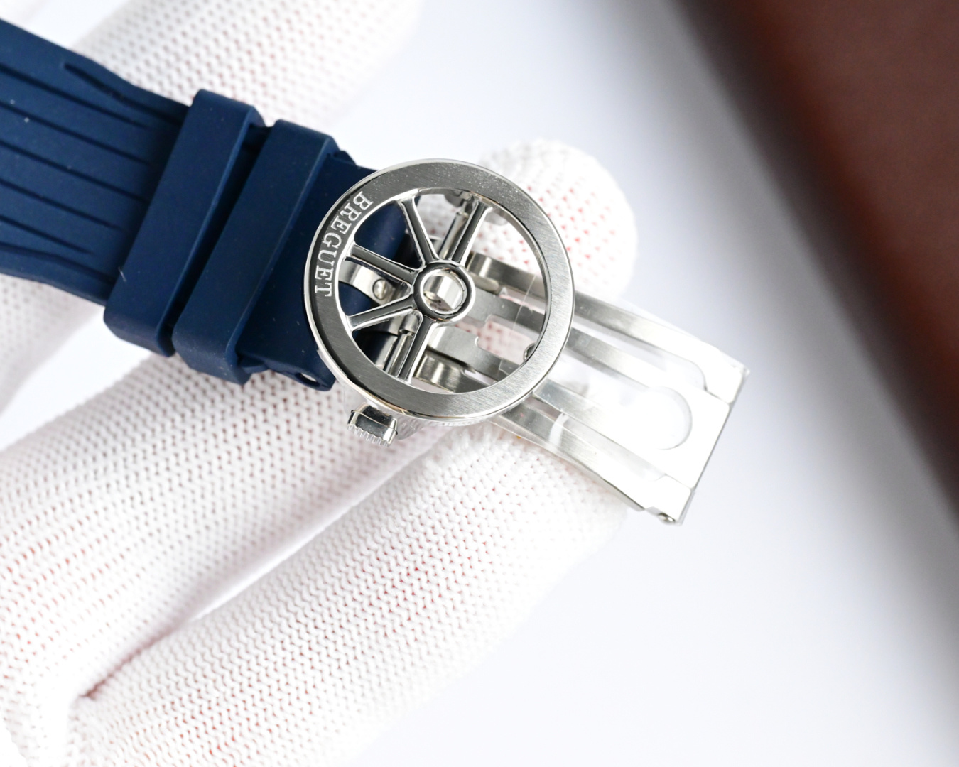 这款手表是AAAAA 1:1 质量 (非常棒). 使用了和原版一模一样的材料. 商标部分也保持了和Breguet一样. 图片拍摄是实物手表拍摄, 您所收到的实物保证和我们图片一模一样.
