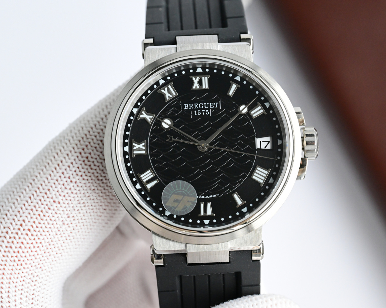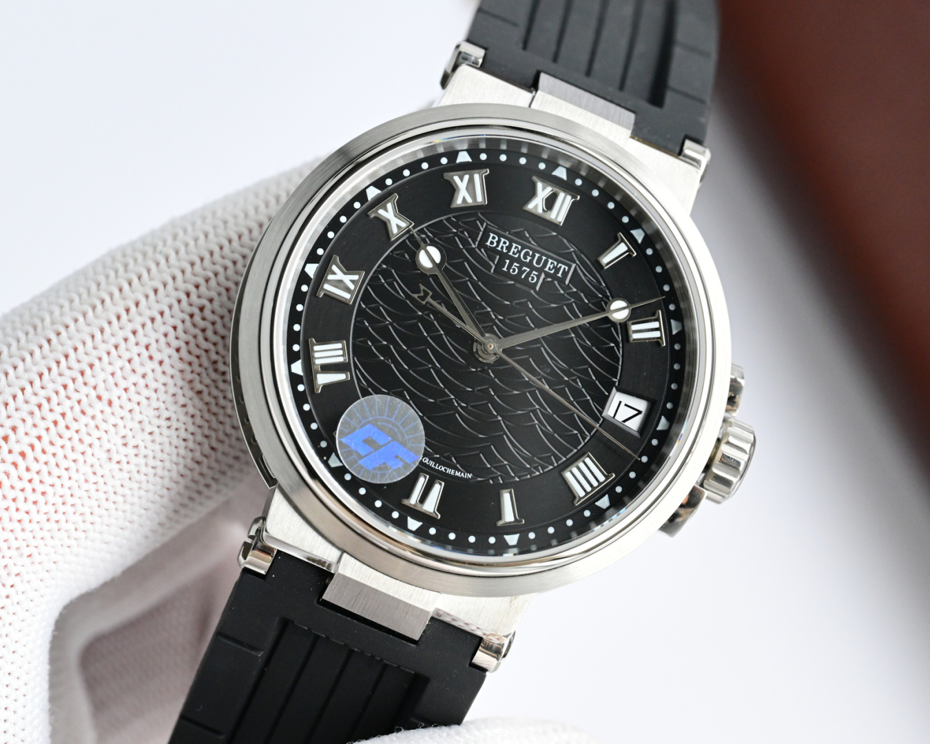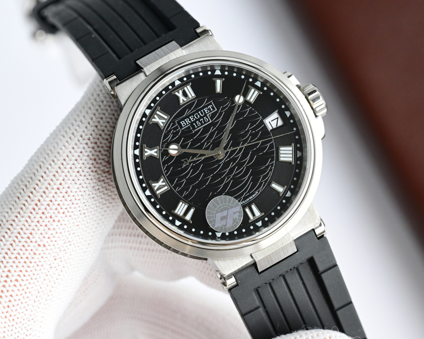 这款手表是AAAAA 1:1 质量 (非常棒). 使用了和原版一模一样的材料. 商标部分也保持了和Breguet一样. 图片拍摄是实物手表拍摄, 您所收到的实物保证和我们图片一模一样.