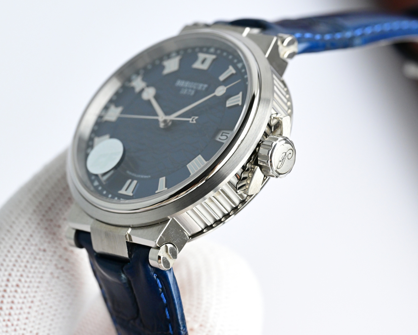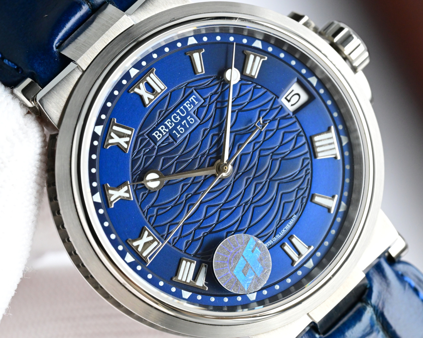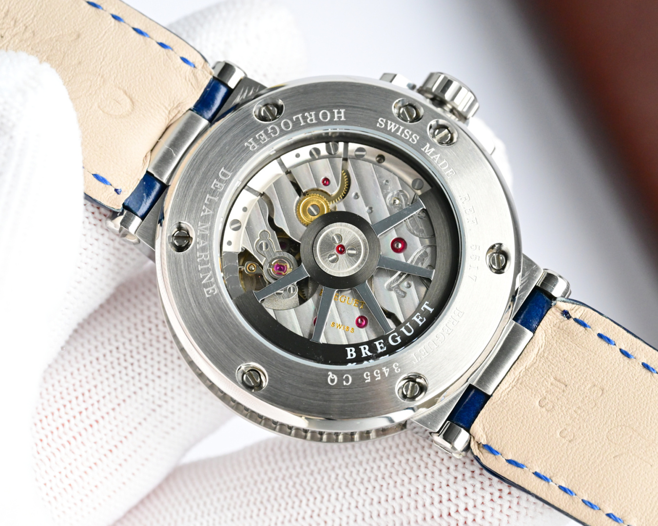 这款手表是AAAAA 1:1 质量 (非常棒). 使用了和原版一模一样的材料. 商标部分也保持了和Breguet一样. 图片拍摄是实物手表拍摄, 您所收到的实物保证和我们图片一模一样.