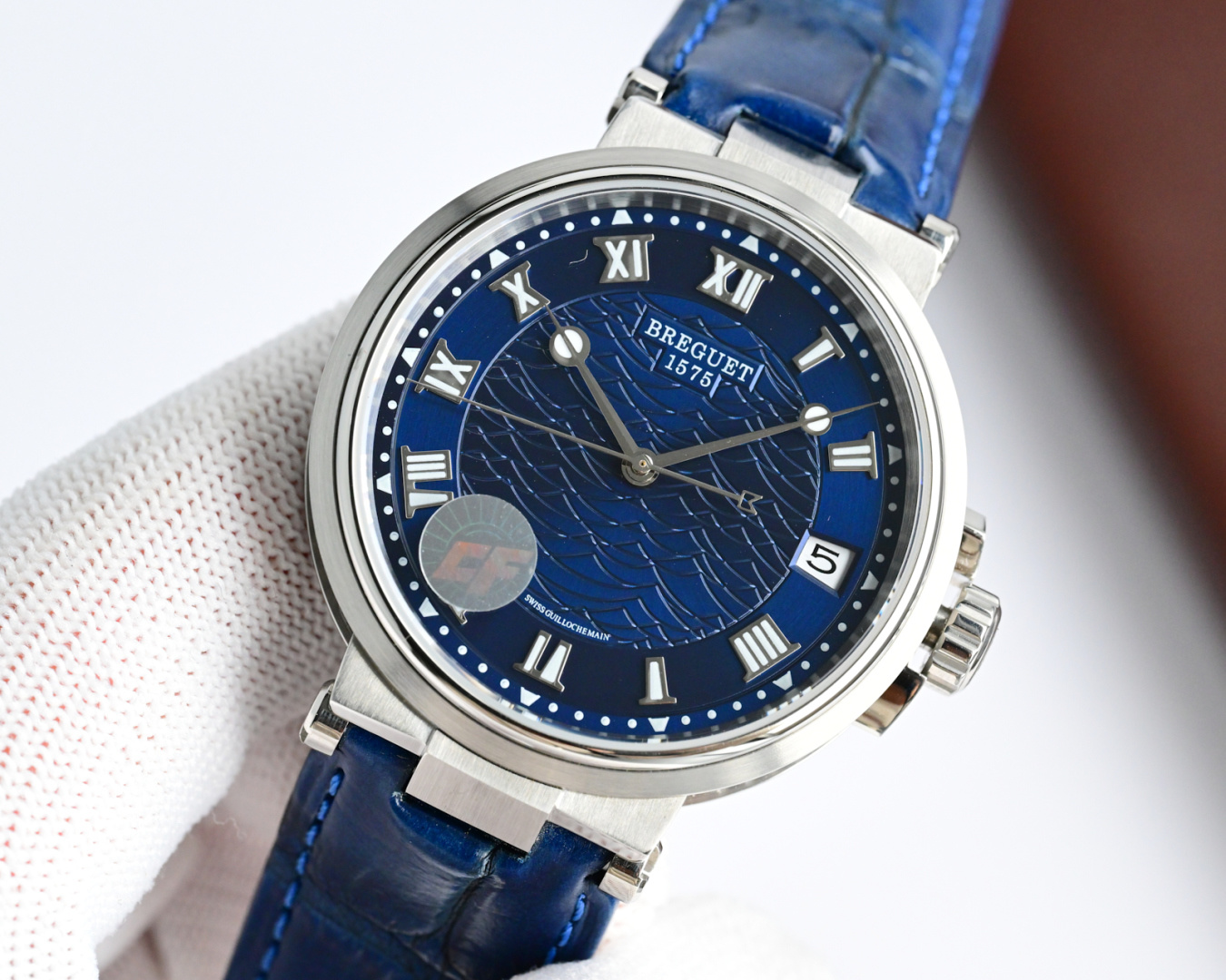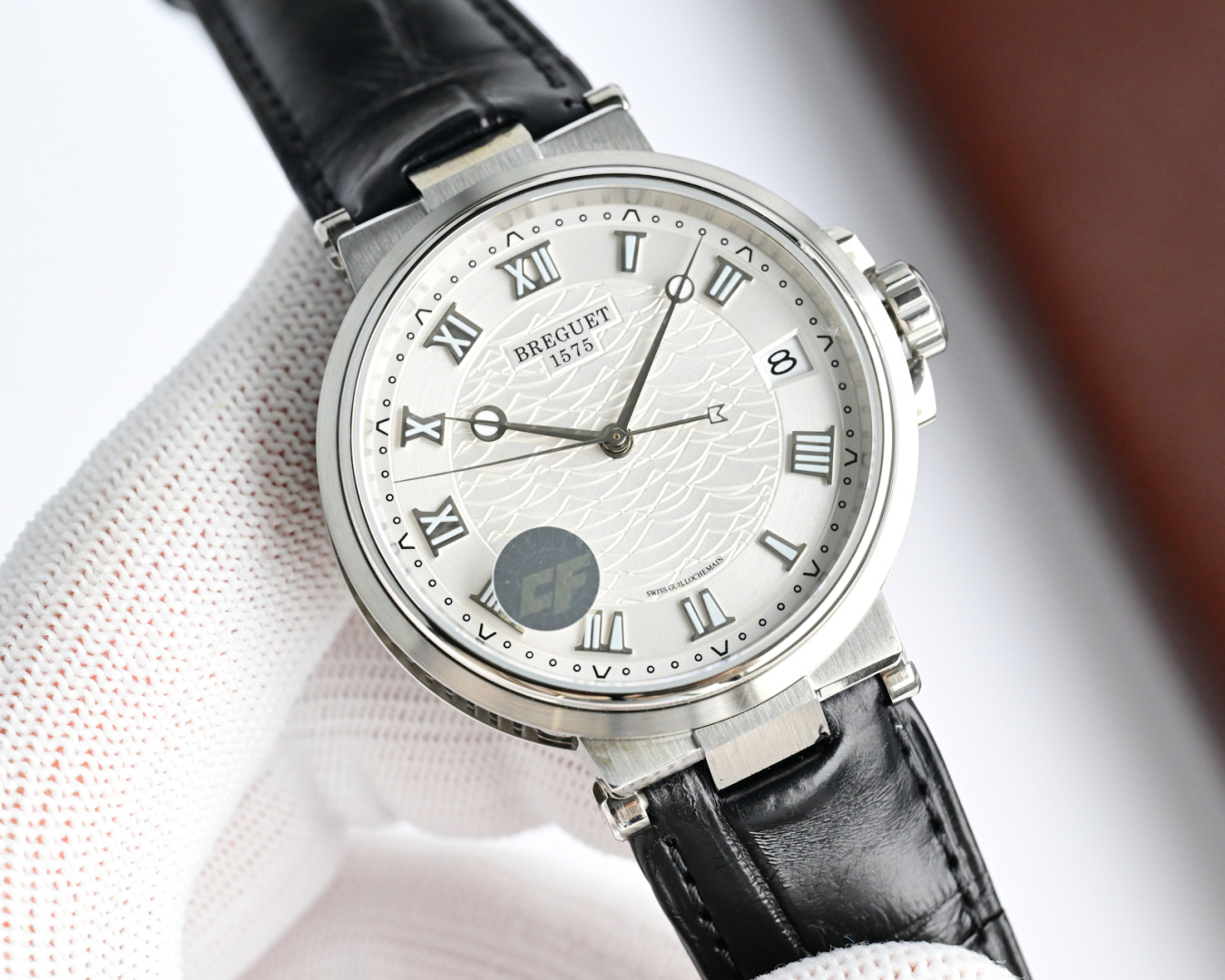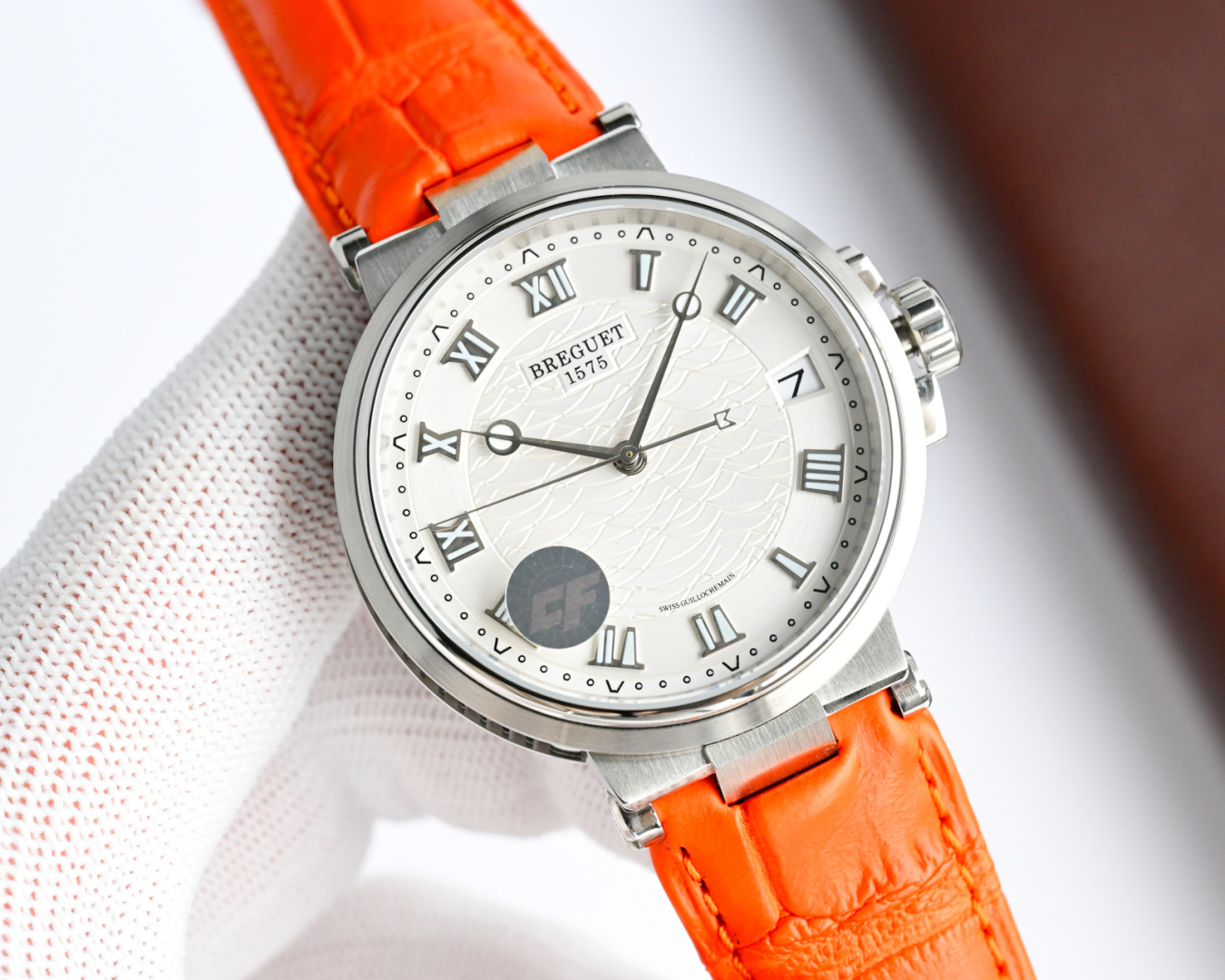 这款手表是AAAAA 1:1 质量 (非常棒). 使用了和原版一模一样的材料. 商标部分也保持了和Breguet一样. 图片拍摄是实物手表拍摄, 您所收到的实物保证和我们图片一模一样.