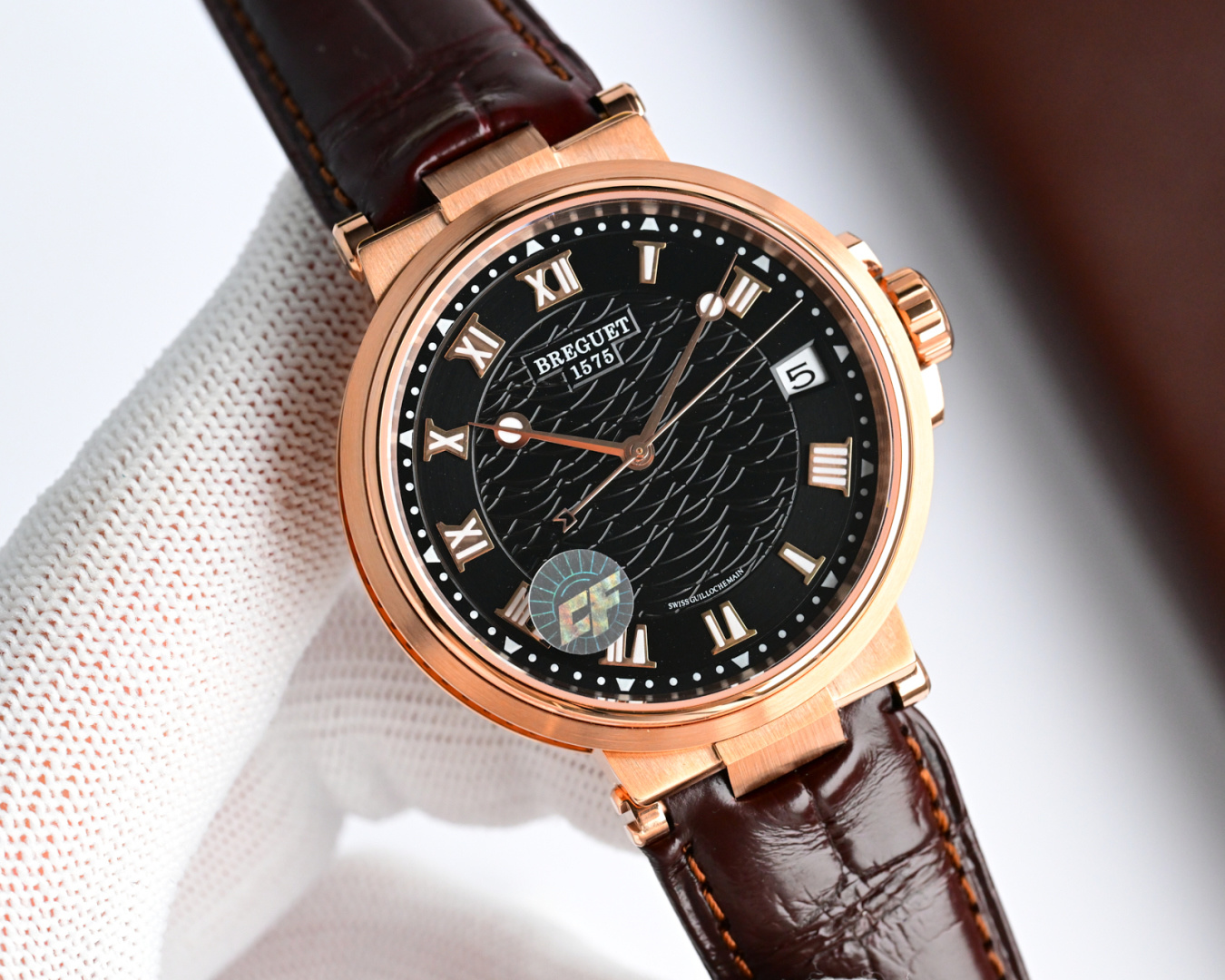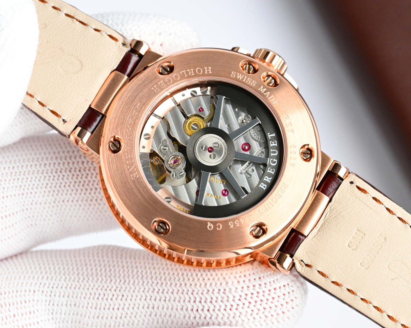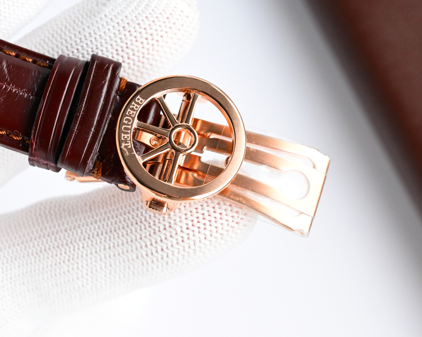 这款手表是AAAAA 1:1 质量 (非常棒). 使用了和原版一模一样的材料. 商标部分也保持了和Breguet一样. 图片拍摄是实物手表拍摄, 您所收到的实物保证和我们图片一模一样.