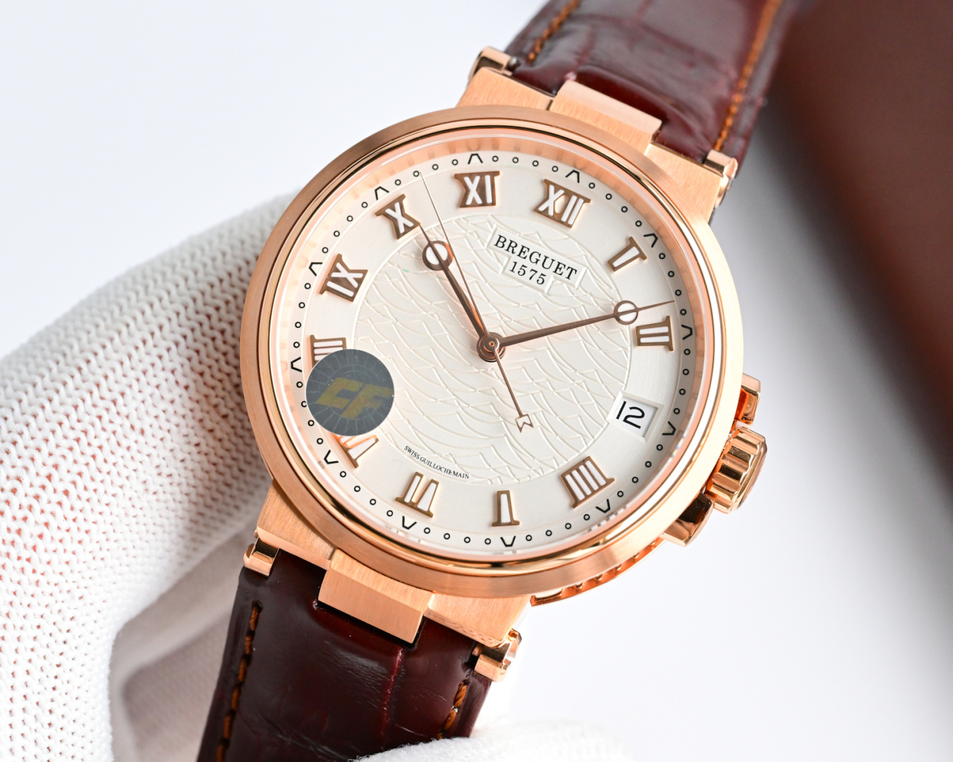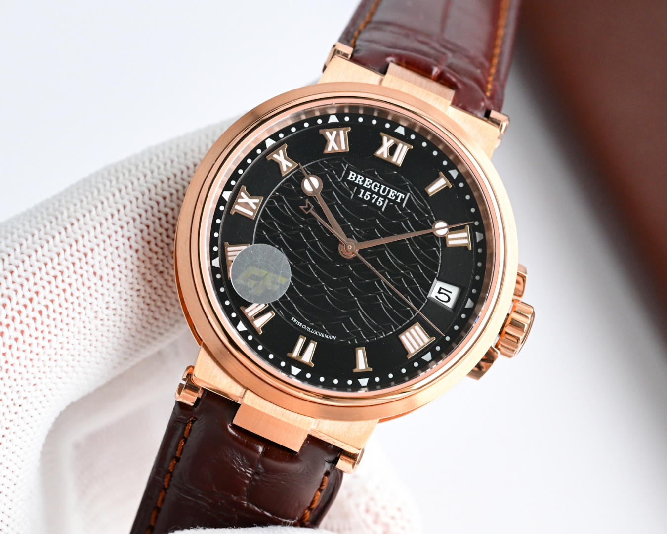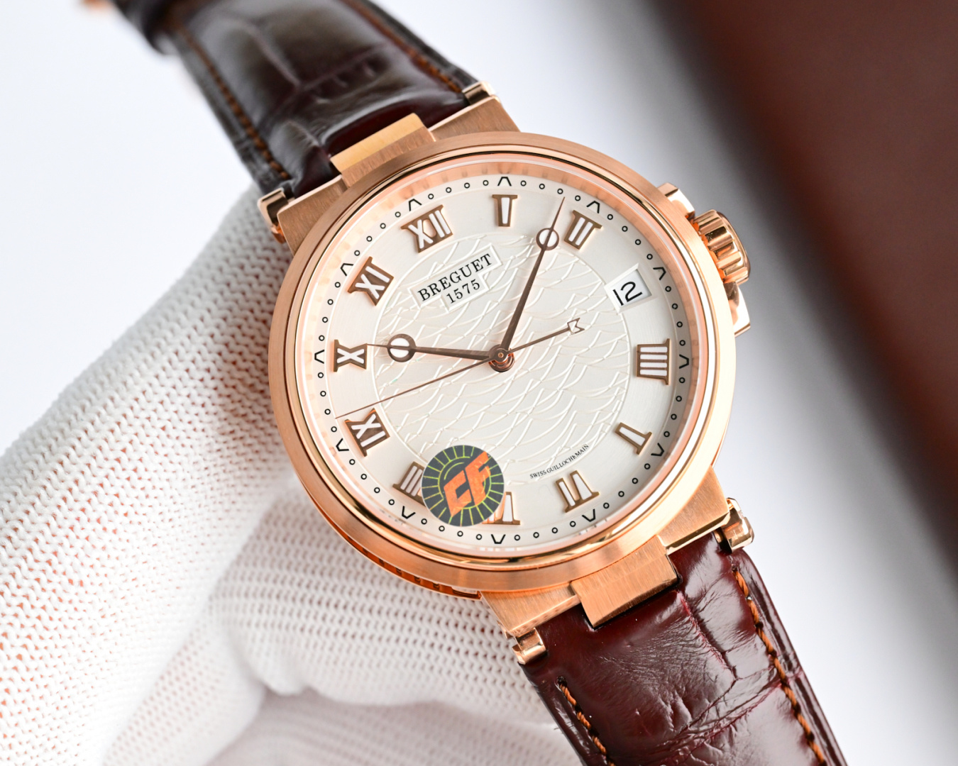 这款手表是AAAAA 1:1 质量 (非常棒). 使用了和原版一模一样的材料. 商标部分也保持了和Breguet一样. 图片拍摄是实物手表拍摄, 您所收到的实物保证和我们图片一模一样.