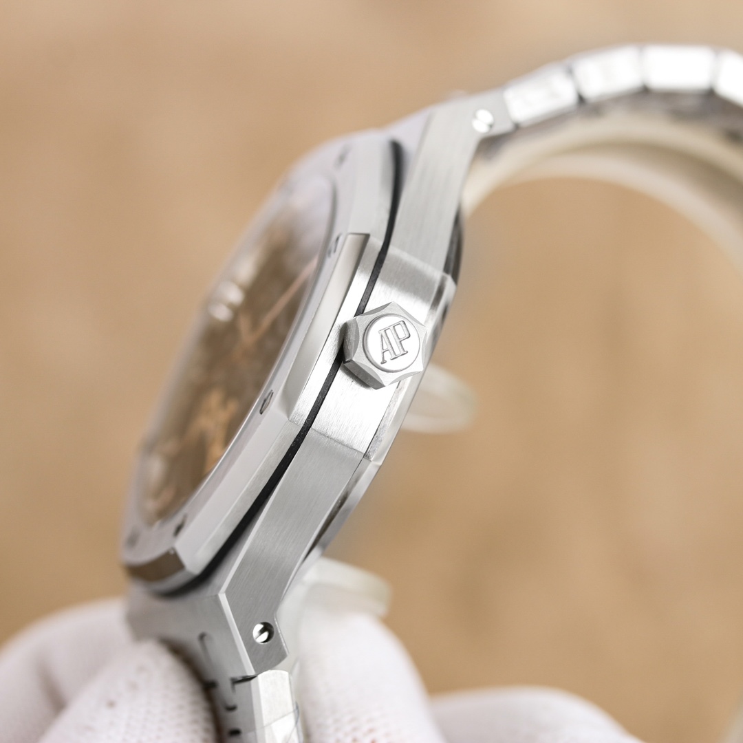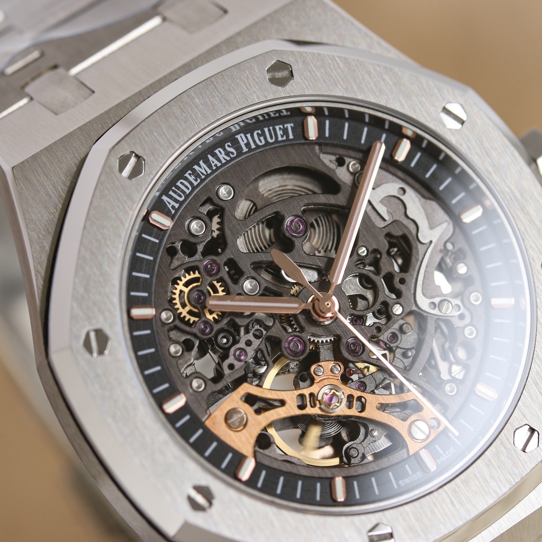 这款手表是AAAAA 1:1 质量 (非常棒). 使用了和原版一模一样的材料. 商标部分也保持了和爱彼/Audemars Piguet一样. 图片拍摄是实物手表拍摄, 您所收到的实物保证和我们图片一模一样.