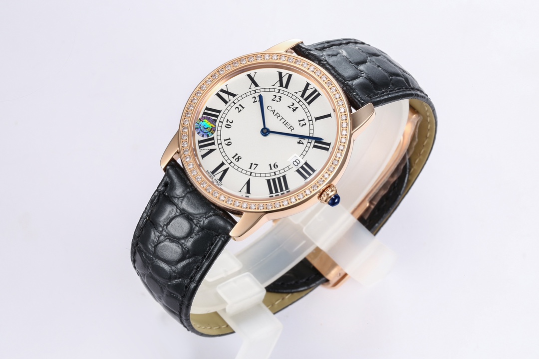这款手表是AAAAA 1:1 质量 (非常棒). 使用了和原版一模一样的材料. 商标部分也保持了和卡地亚/Cartier一样. 图片拍摄是实物手表拍摄, 您所收到的实物保证和我们图片一模一样.