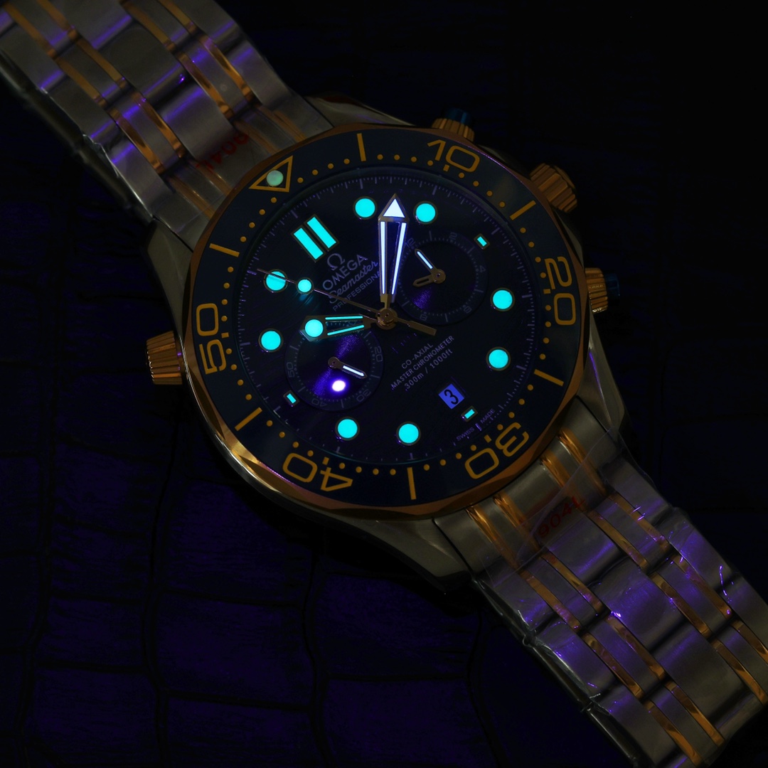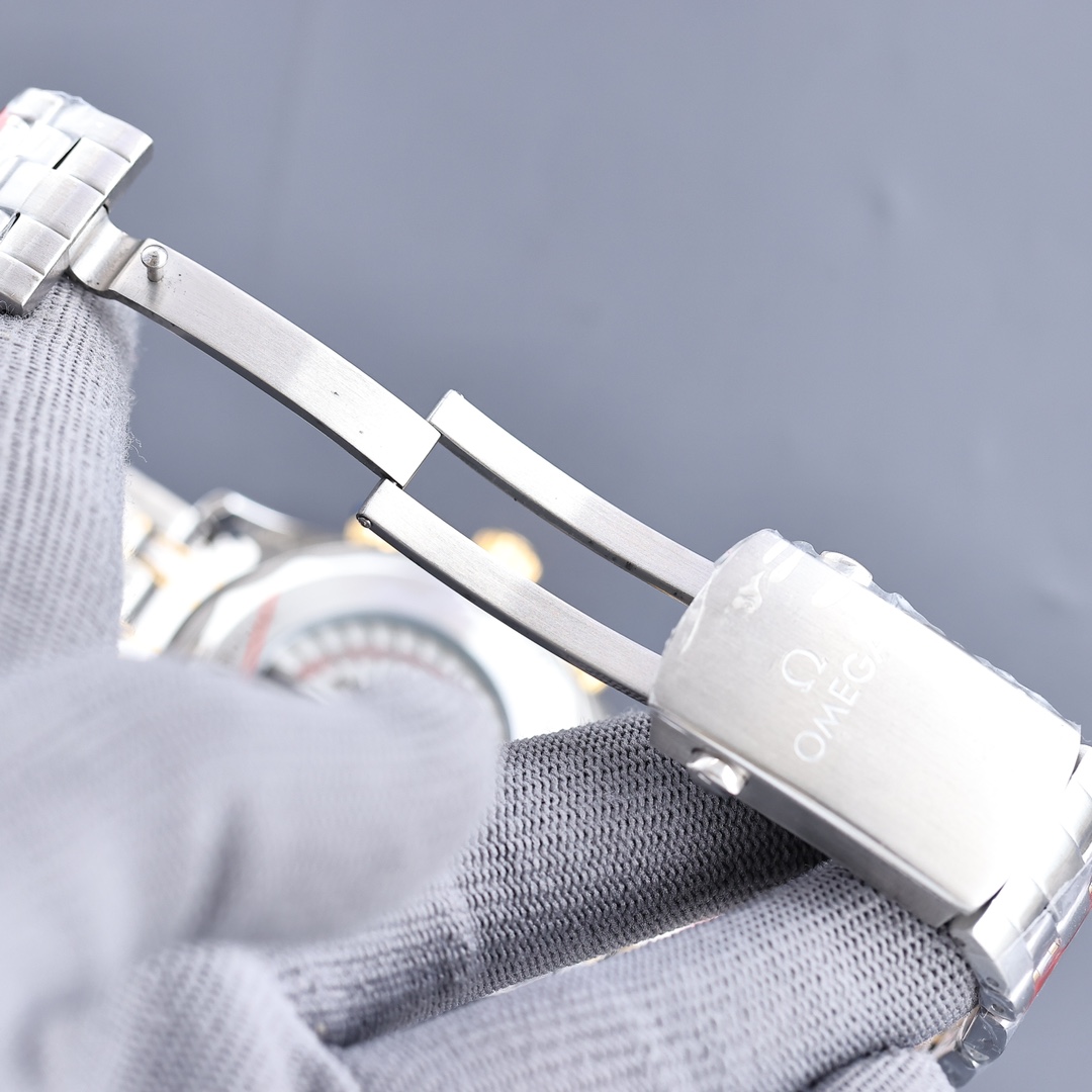 这款手表是AAAAA 1:1 质量 (非常棒). 使用了和原版一模一样的材料. 商标部分也保持了和欧米茄/Omega一样. 图片拍摄是实物手表拍摄, 您所收到的实物保证和我们图片一模一样.