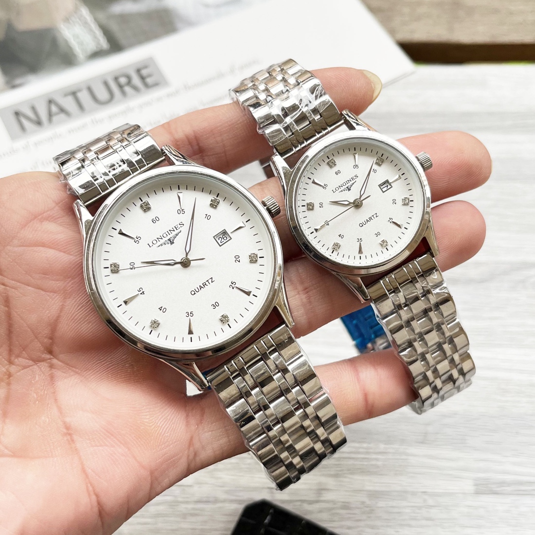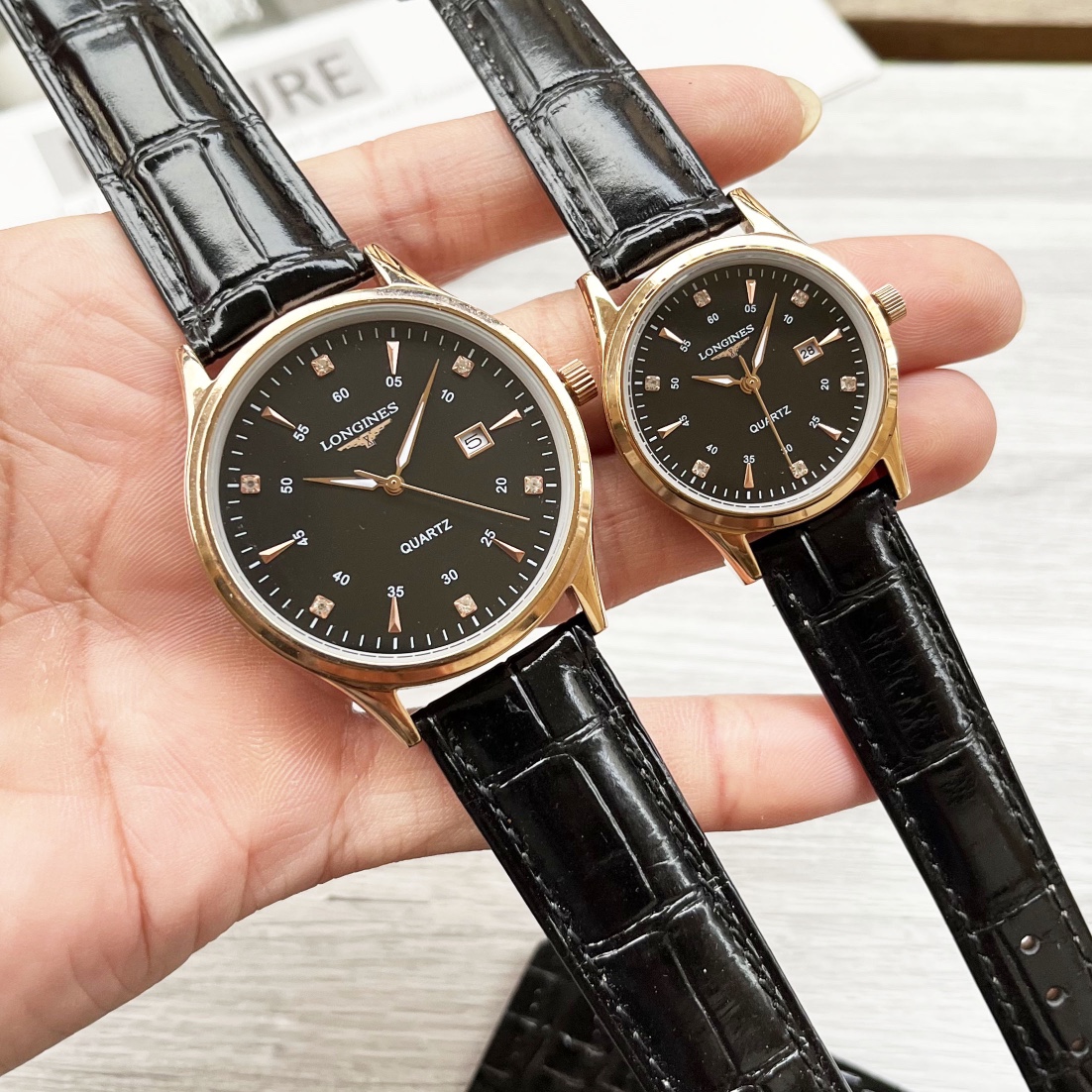 这款手表是AAAAA 1:1 质量 (非常棒). 使用了和原版一模一样的材料. 商标部分也保持了和浪琴/Longines一样. 图片拍摄是实物手表拍摄, 您所收到的实物保证和我们图片一模一样.