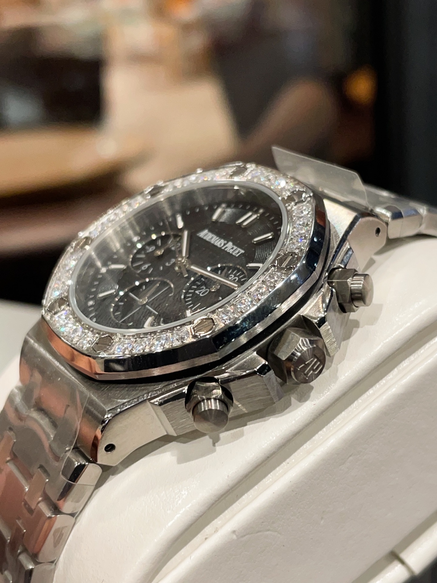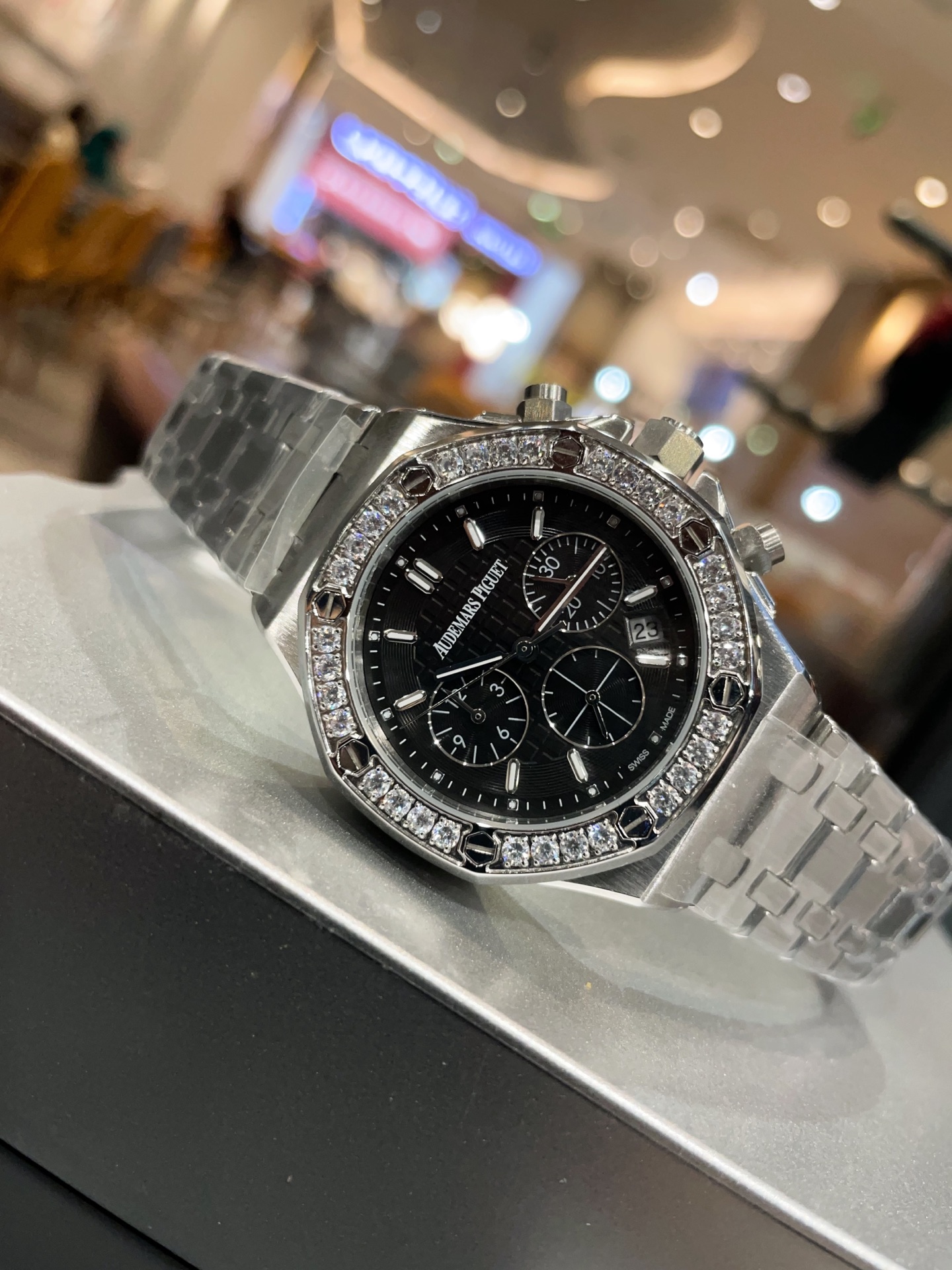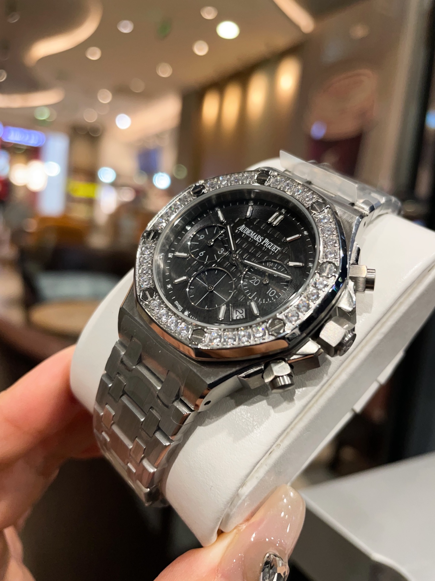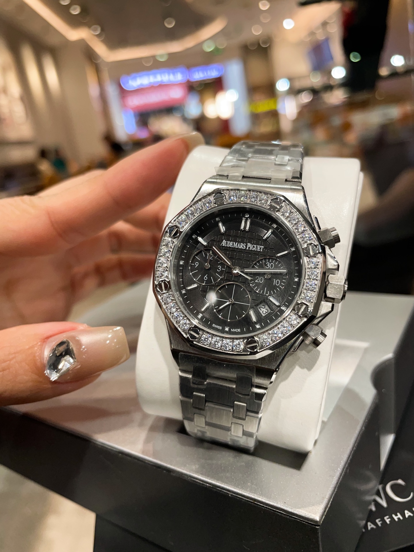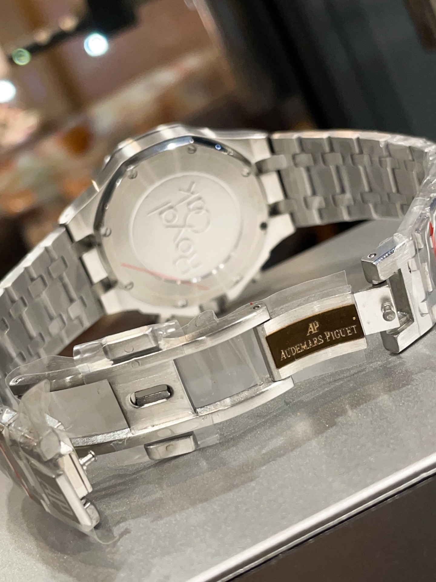 这款手表是AAAAA 1:1 质量 (非常棒). 使用了和原版一模一样的材料. 商标部分也保持了和爱彼/Audemars Piguet一样. 图片拍摄是实物手表拍摄, 您所收到的实物保证和我们图片一模一样.