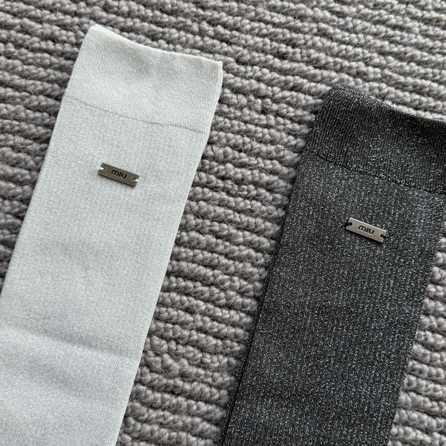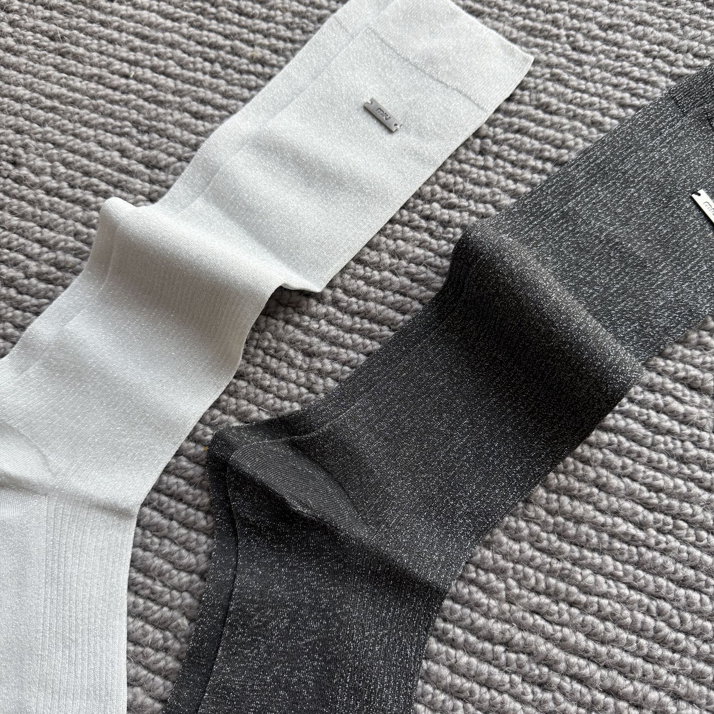 这款sock是AAAAA 1:1 质量 (非常棒). 使用了和原版一模一样的材料. 商标部分也保持了和缪缪/Miu Miu一样. 图片拍摄是实物sock拍摄, 您所收到的实物保证和我们图片一模一样.