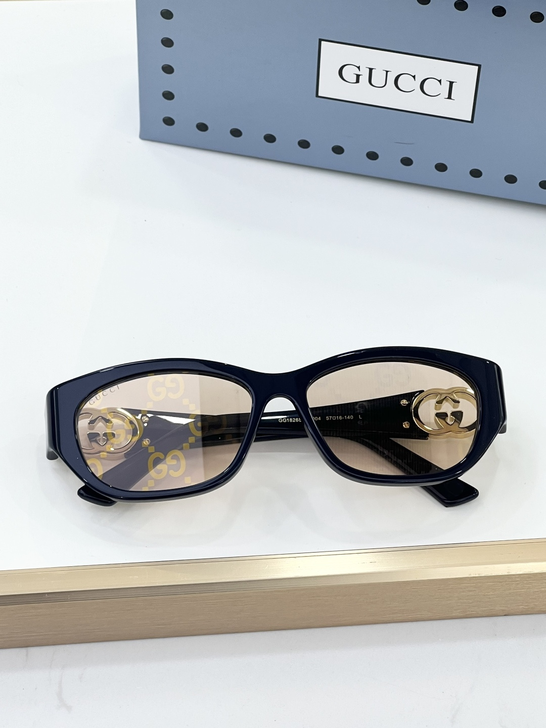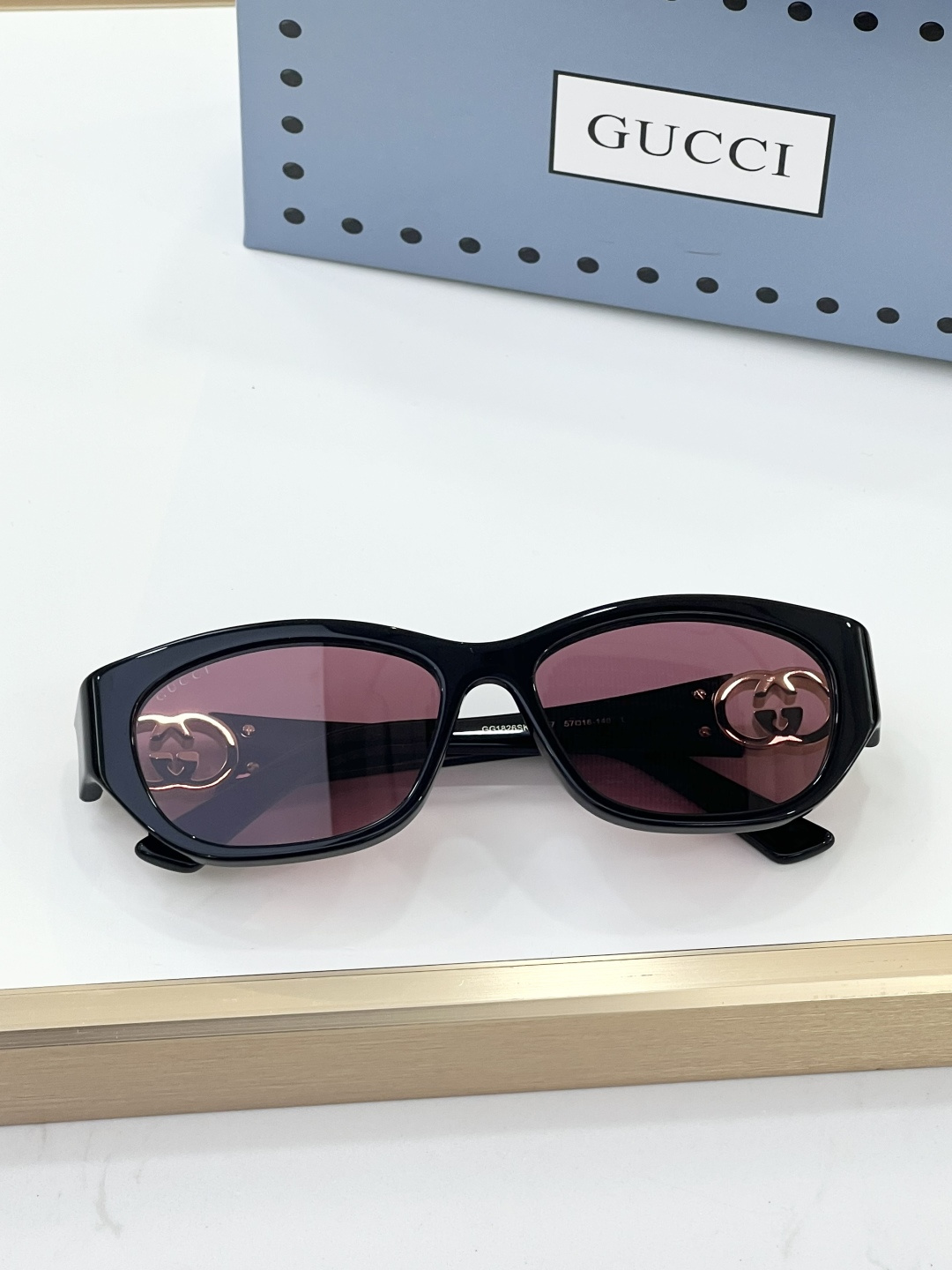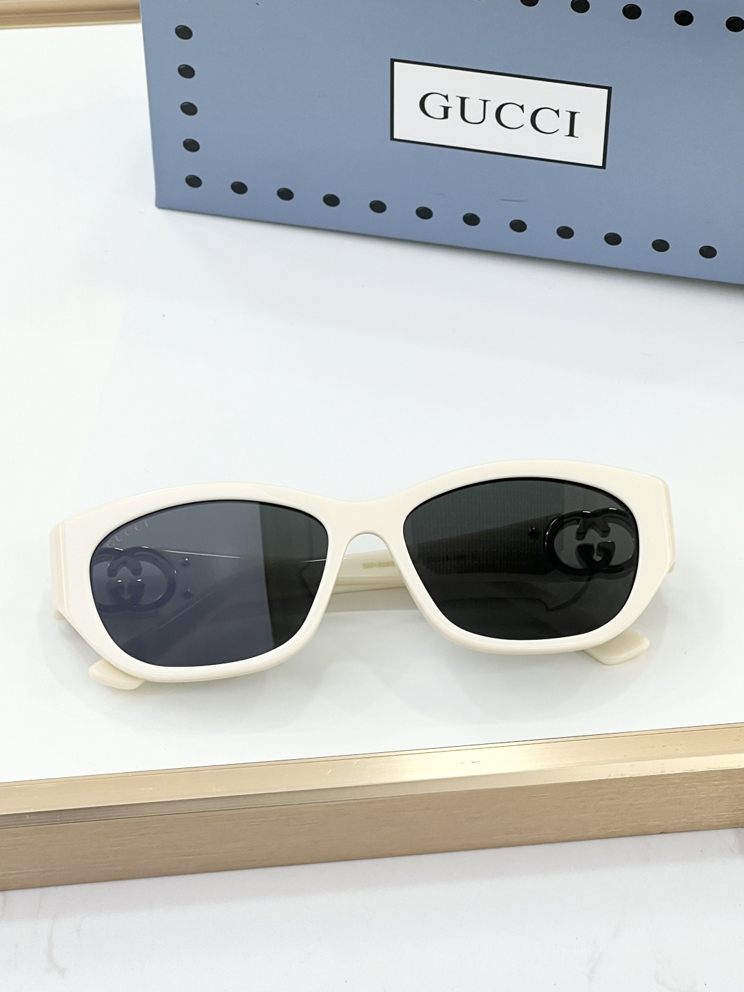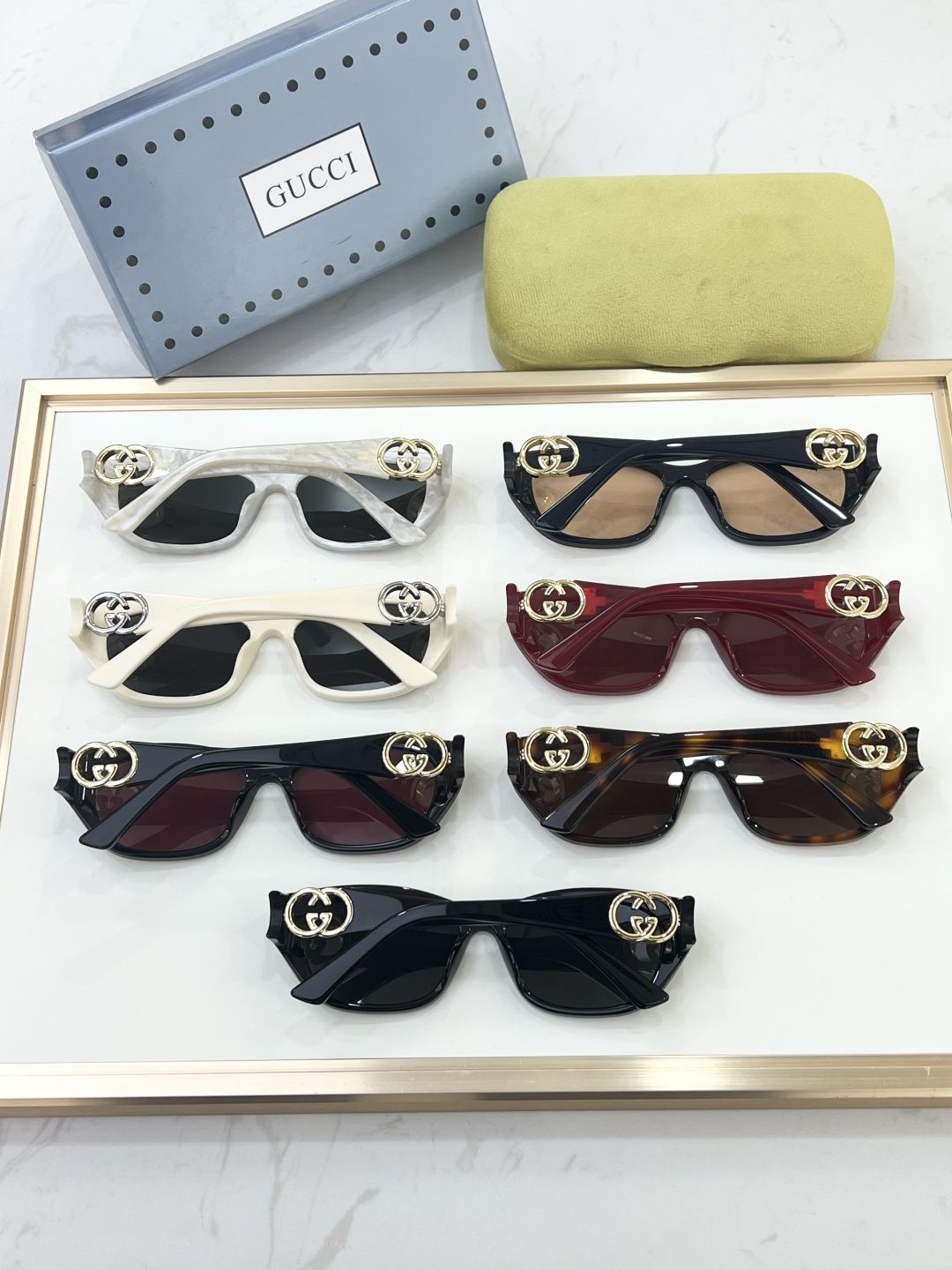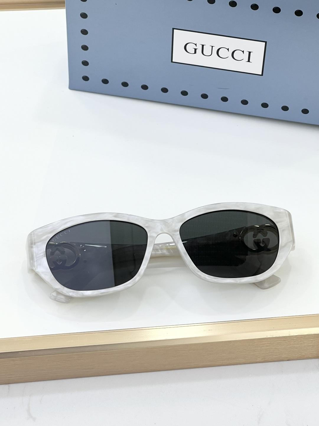 这款太阳眼镜是AAAAA 1:1 质量 (非常棒). 使用了和原版一模一样的材料. 商标部分也保持了和古奇/Gucci一样. 图片拍摄是实物太阳眼镜拍摄, 您所收到的实物保证和我们图片一模一样.