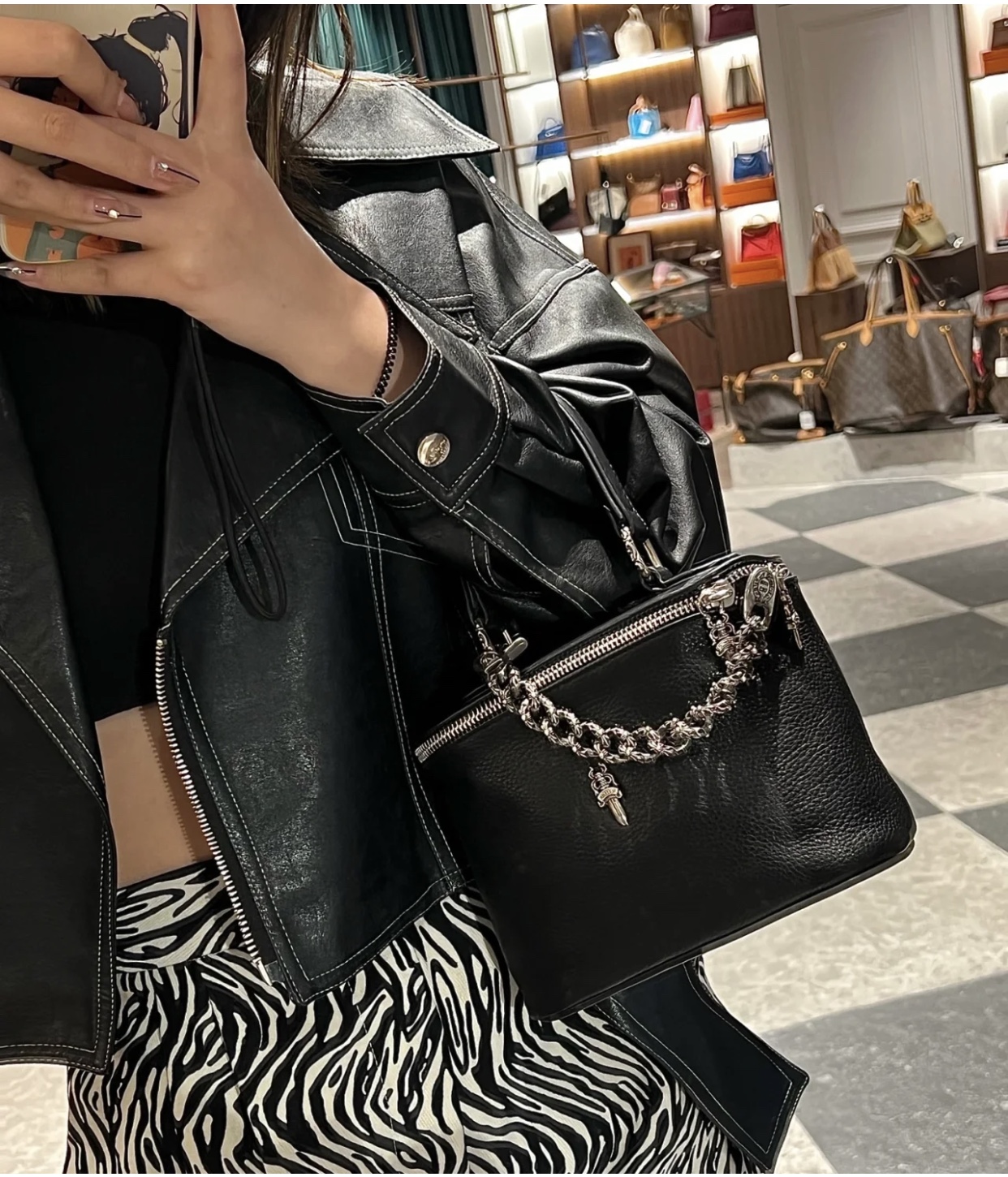 这款包包是AAAAA 1:1 质量 (非常棒). 使用了和原版一模一样的材料. 商标部分也保持了和克罗心/Chrome Hearts一样. 图片拍摄是实物包包拍摄, 您所收到的实物保证和我们图片一模一样.