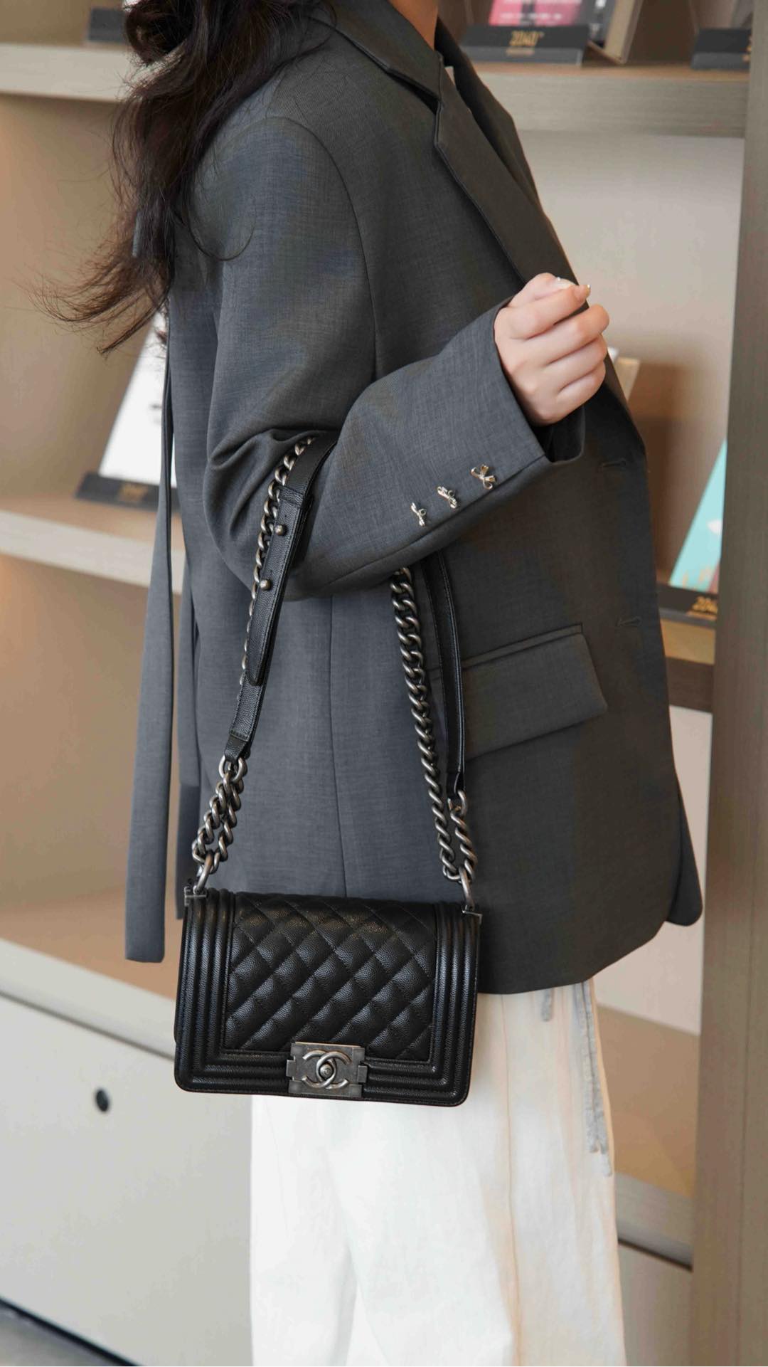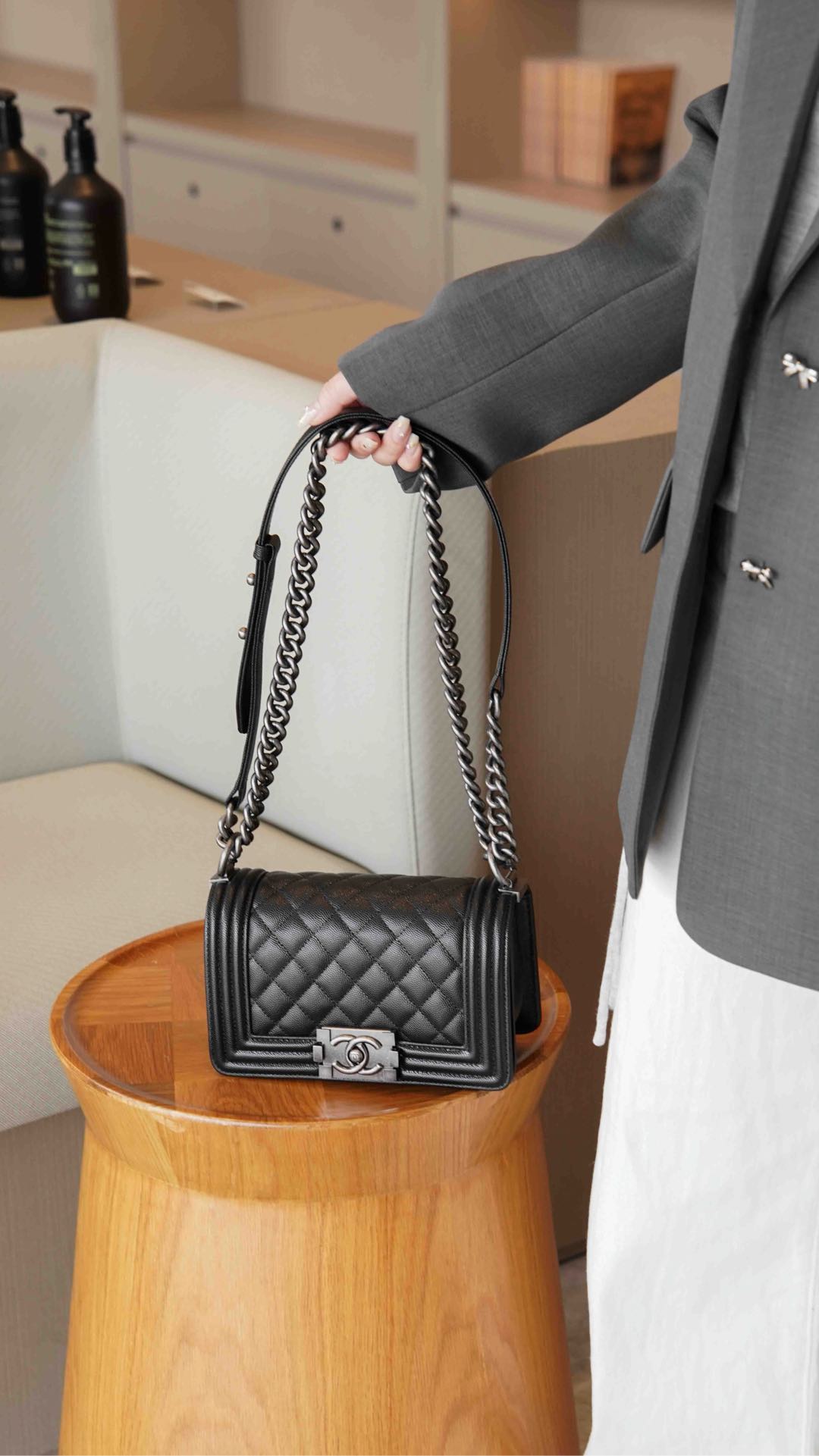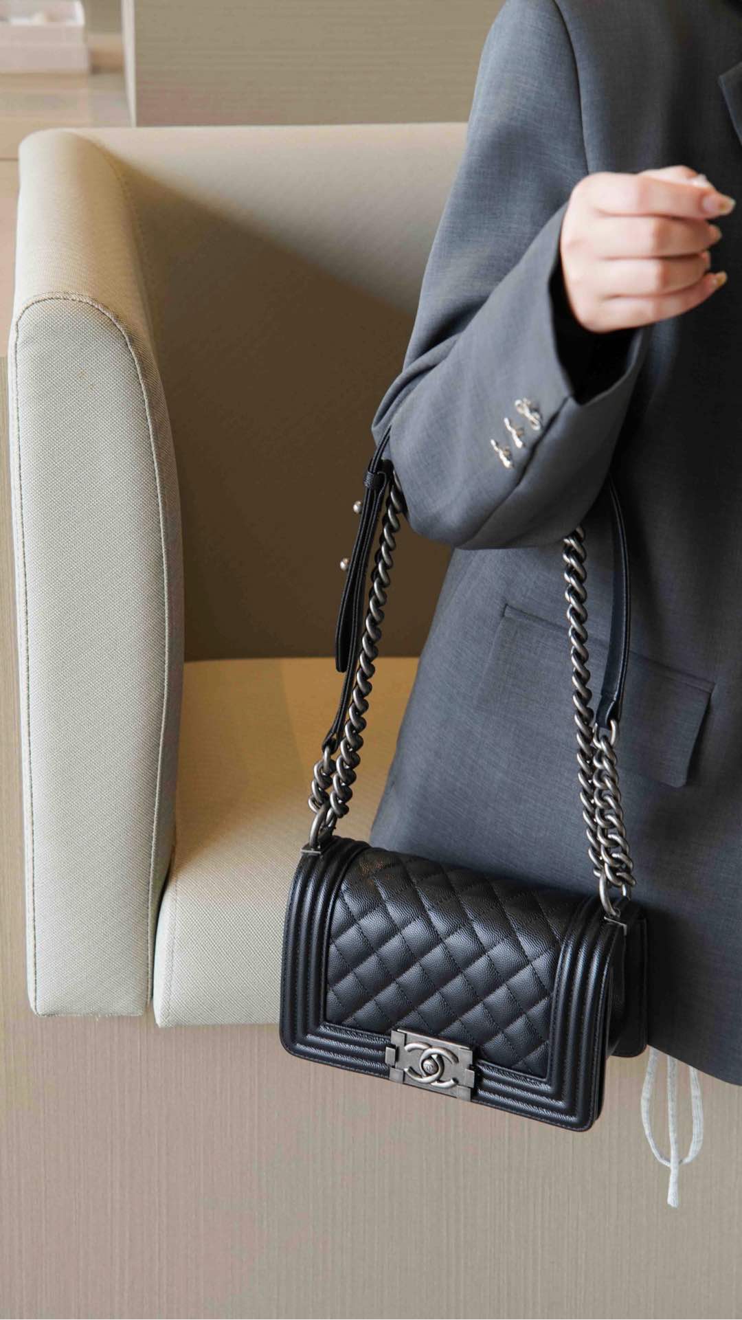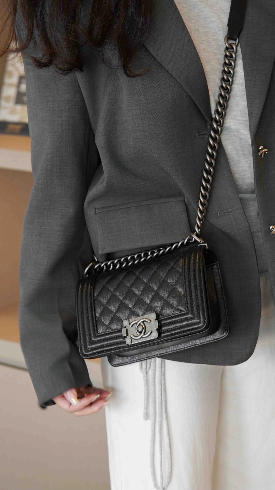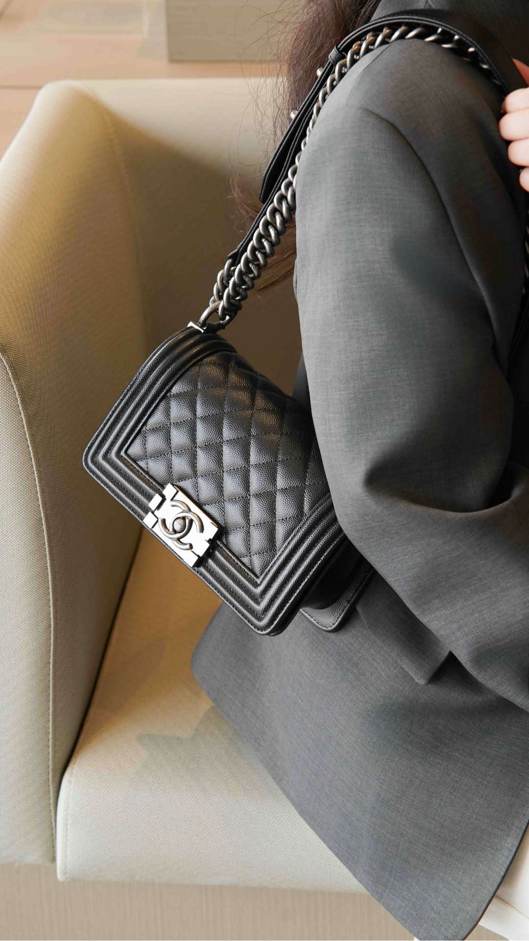 这款包包是AAAAA 1:1 质量 (非常棒). 使用了和原版一模一样的材料. 商标部分也保持了和香奈儿/Chanel一样. 图片拍摄是实物包包拍摄, 您所收到的实物保证和我们图片一模一样.