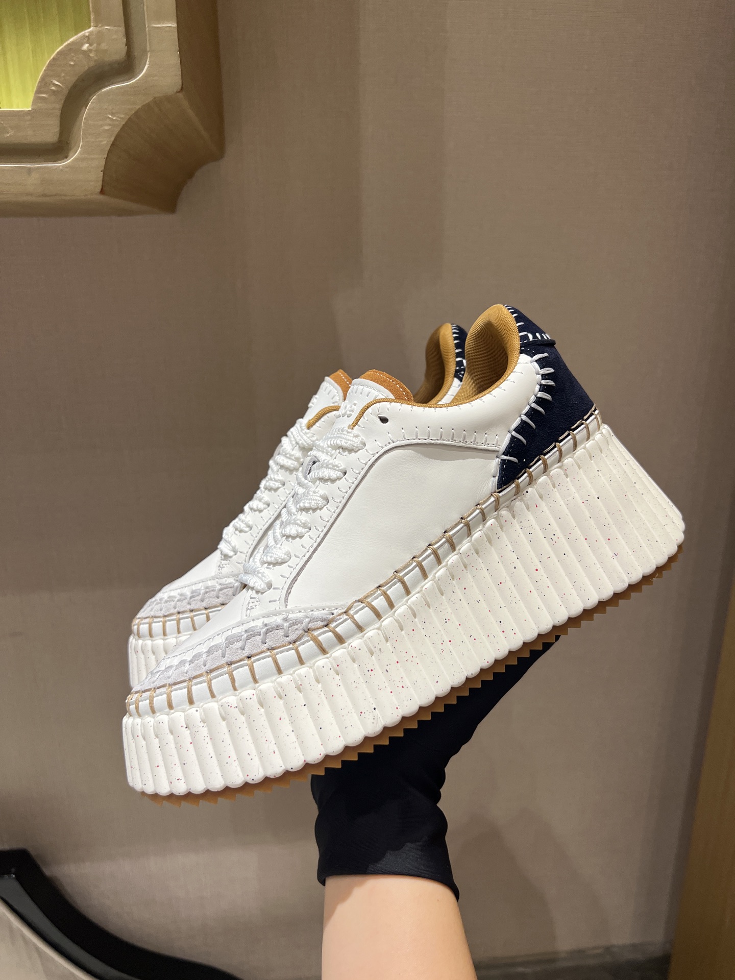 这款鞋子是AAAAA 1:1 质量 (非常棒). 使用了和原版一模一样的材料. 商标部分也保持了和芬迪/Fendi一样. 图片拍摄是实物鞋子拍摄, 您所收到的实物保证和我们图片一模一样.