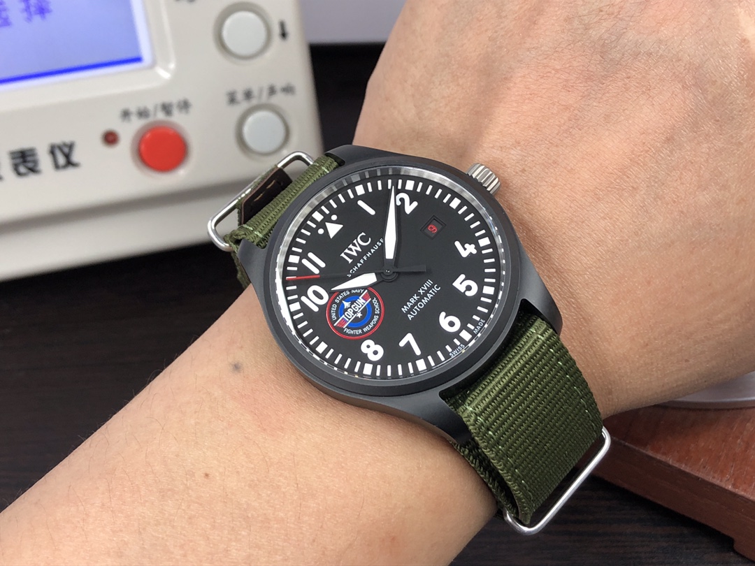 这款手表是AAAAA 1:1 质量 (非常棒). 使用了和原版一模一样的材料. 商标部分也保持了和万国表/IWC Schaffhausen一样. 图片拍摄是实物手表拍摄, 您所收到的实物保证和我们图片一模一样.