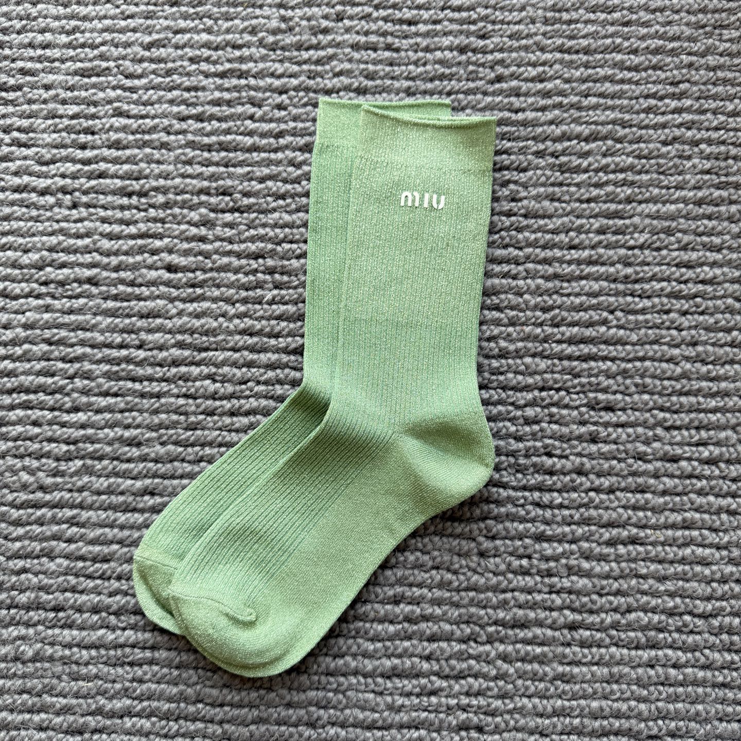 这款sock是AAAAA 1:1 质量 (非常棒). 使用了和原版一模一样的材料. 商标部分也保持了和缪缪/Miu Miu一样. 图片拍摄是实物sock拍摄, 您所收到的实物保证和我们图片一模一样.