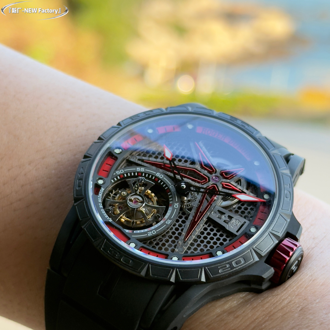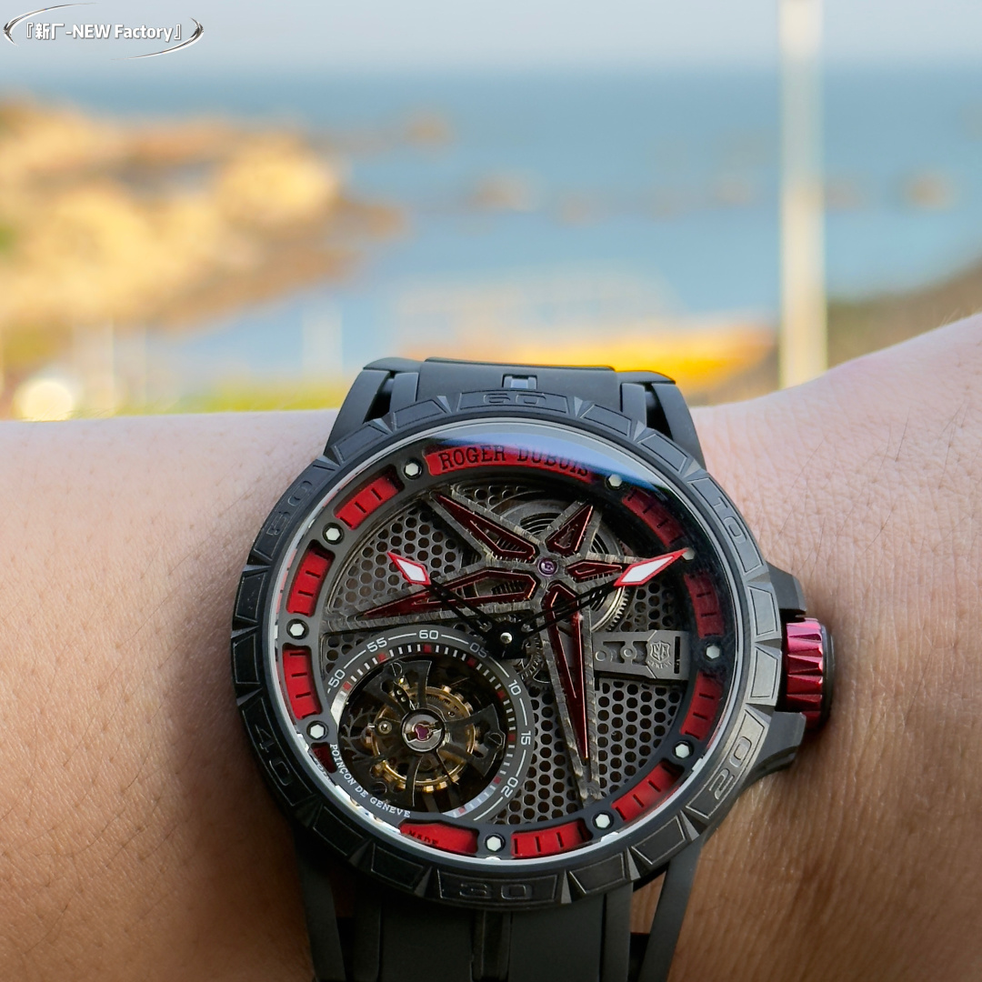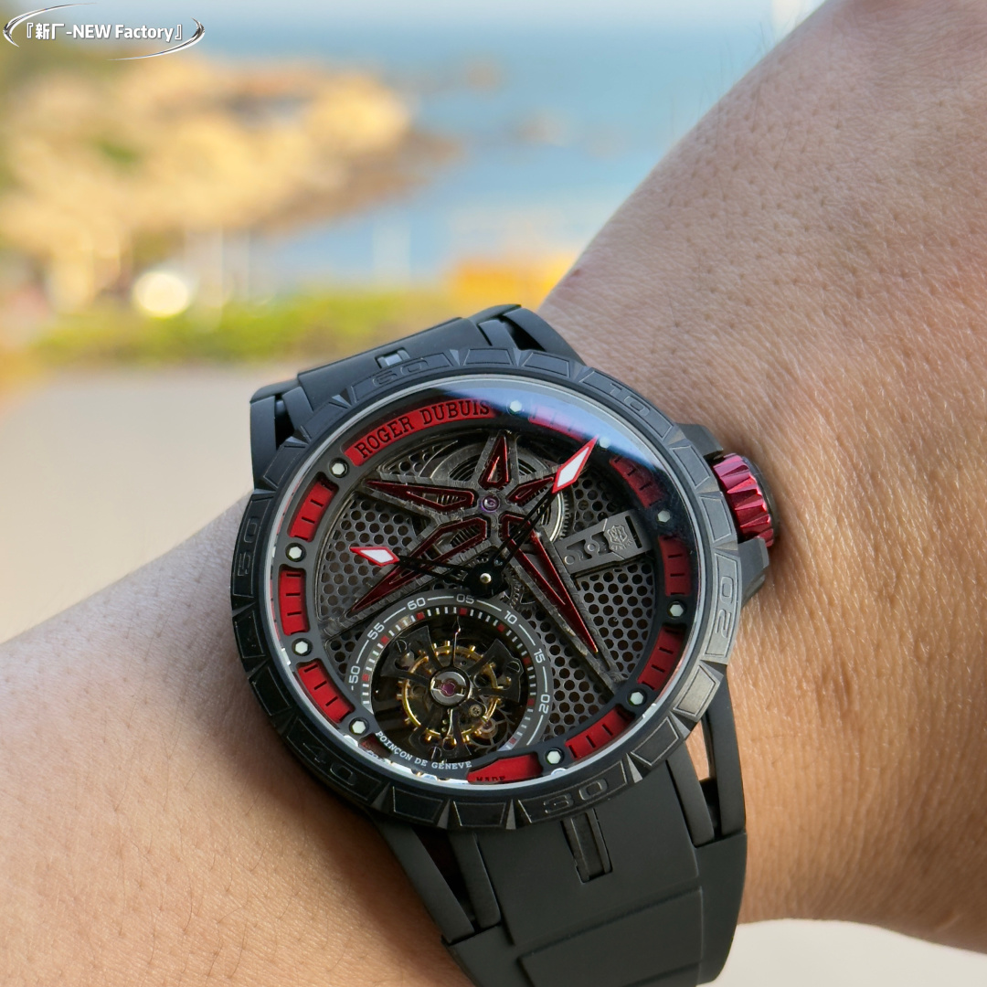 这款手表是AAAAA 1:1 质量 (非常棒). 使用了和原版一模一样的材料. 商标部分也保持了和Roger Dubuis一样. 图片拍摄是实物手表拍摄, 您所收到的实物保证和我们图片一模一样.